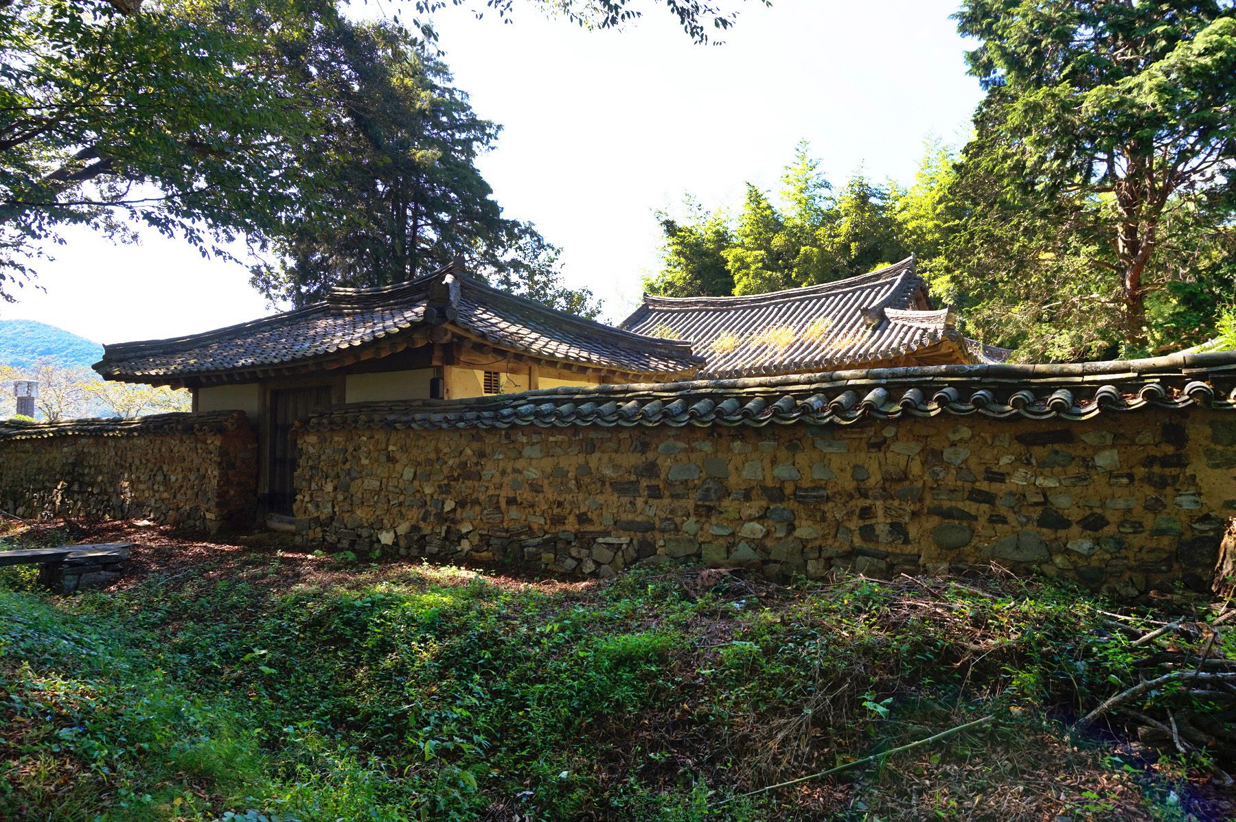 숲 가장자리에 위치해 있는 돌담 안으로 고택을 만날 수 있습니다.