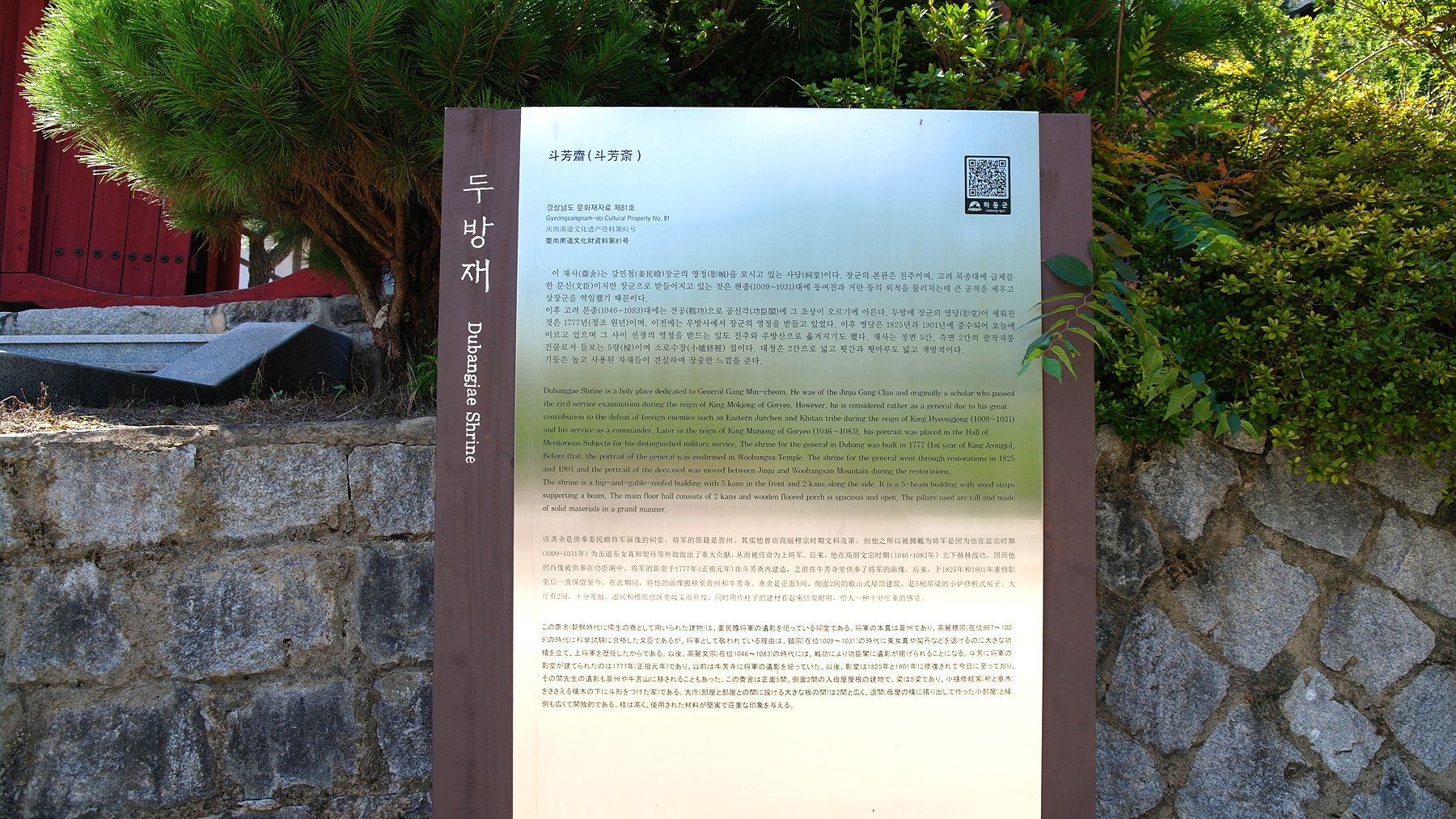 고려 시대 장군 강감찬과 함께 국난을 극복한 용장인 강민첨 장군의 영정을 모신 사당 두방재!