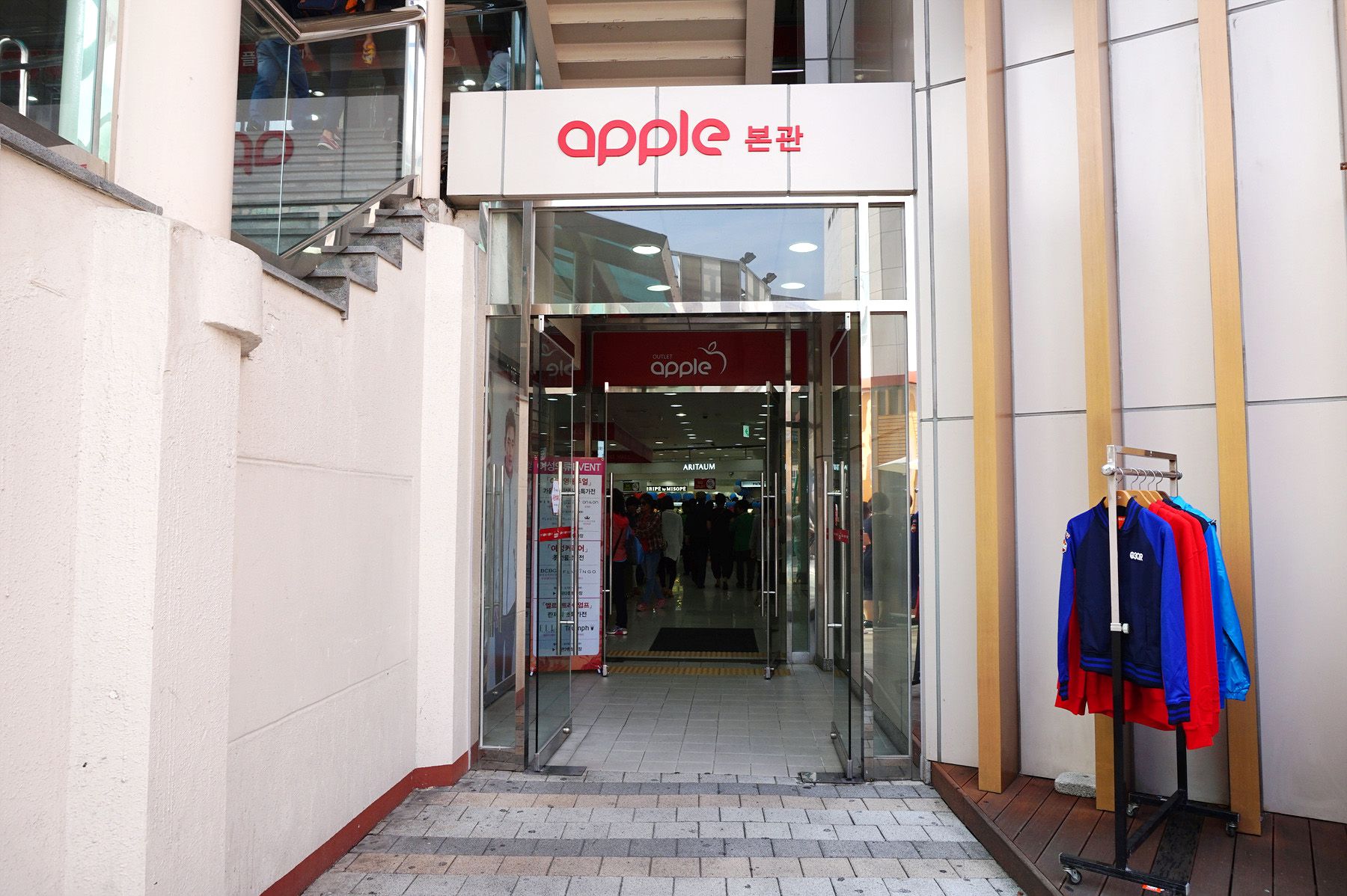 '애플아울렛은'지상4층 지하 1층으로 이루어져있는 본관건물과 별관 2층으로 이루어진 면적에는