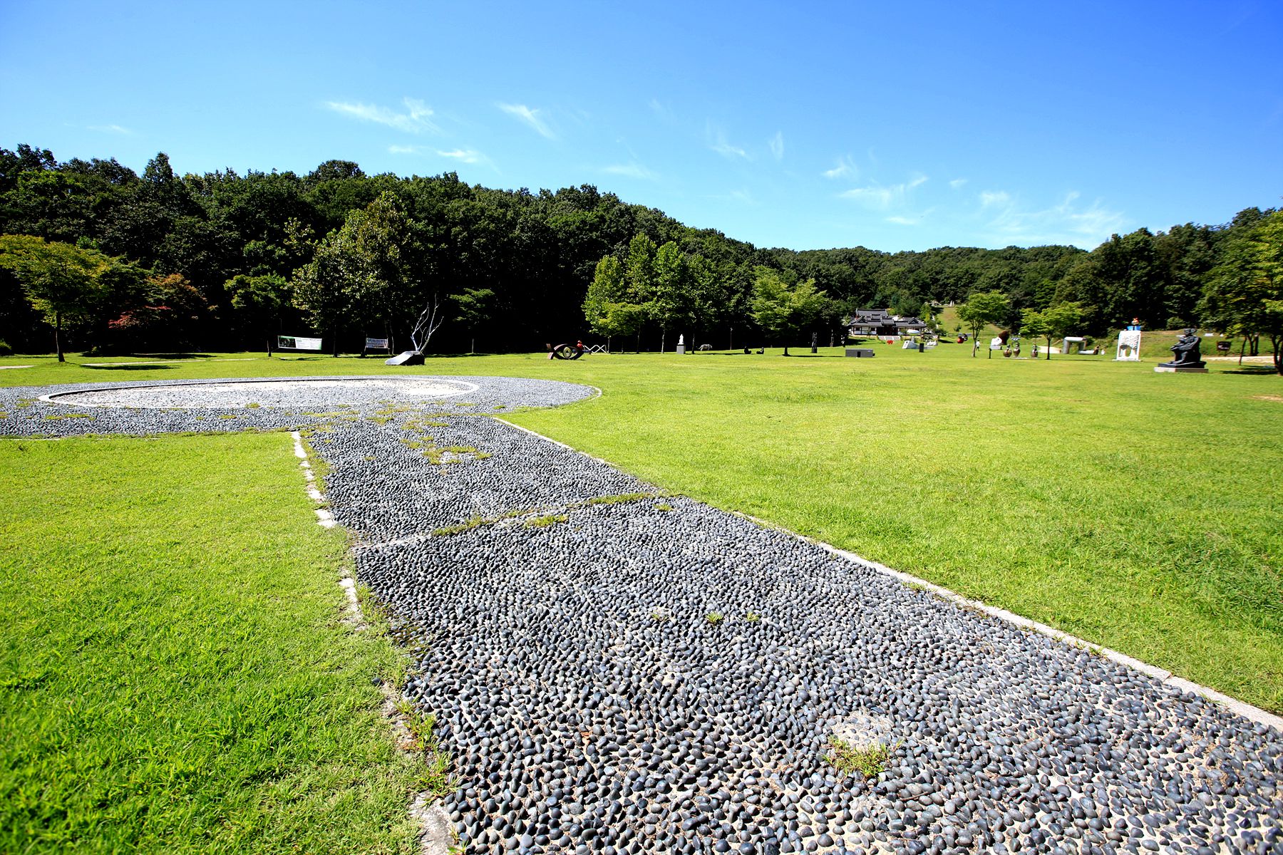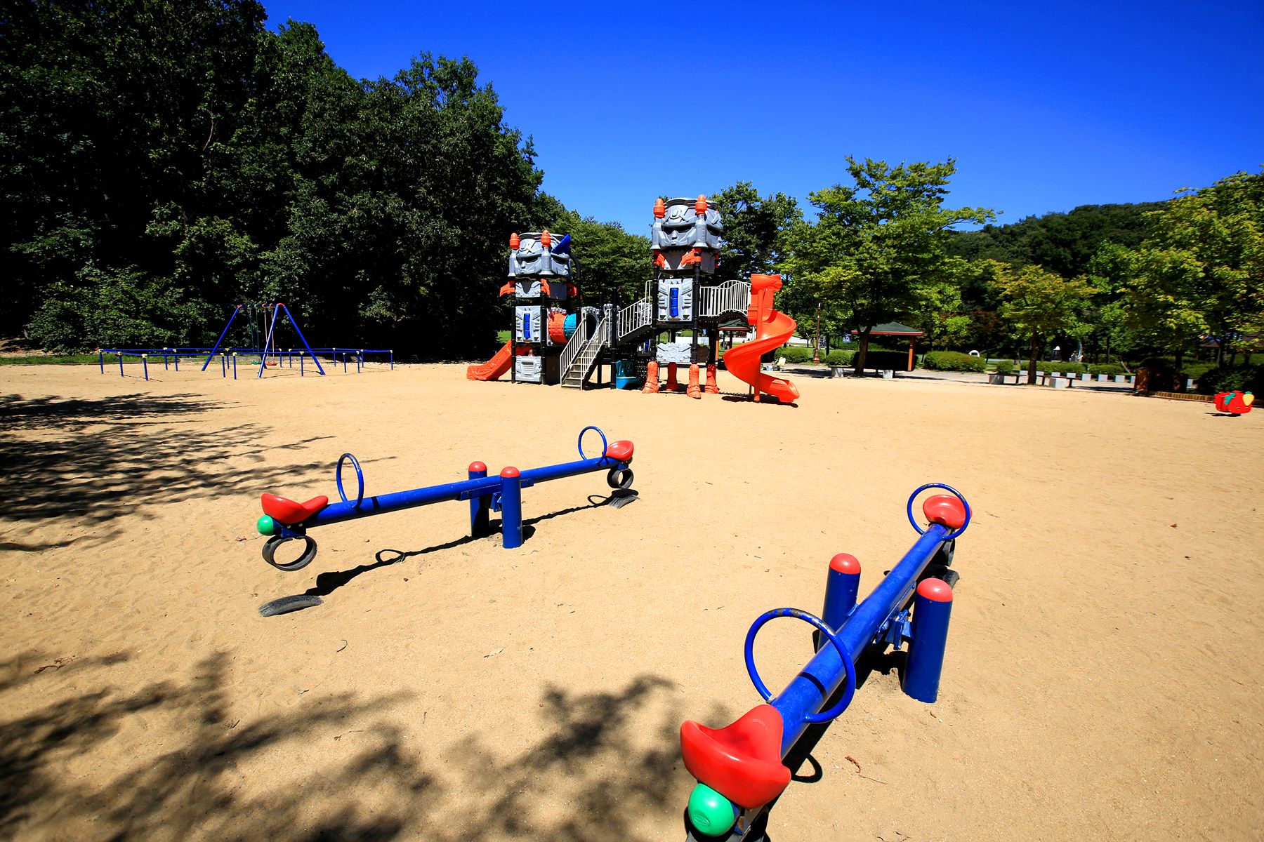 곳곳에 쉴수있는 벤치가 마련되어 있고, 놀이터 배드민턴장, 놀이시설, 편의시설등