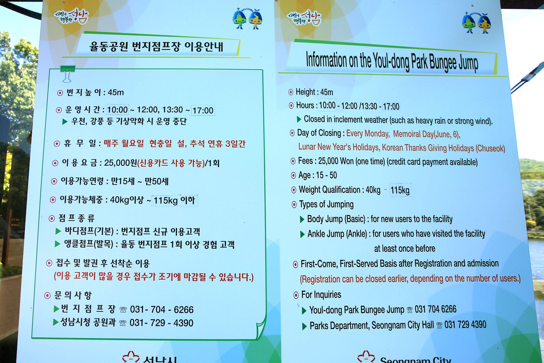 개인 25.000원으로 많은 분들이 스릴 넘치는 번지점프장을 찾는답니다.
