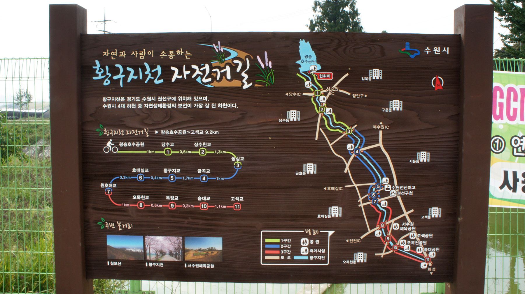 의왕에서 평택 방향으로 흐르는 황구지천을 따라 자전거 길도 잘 조성되어 있습니다.