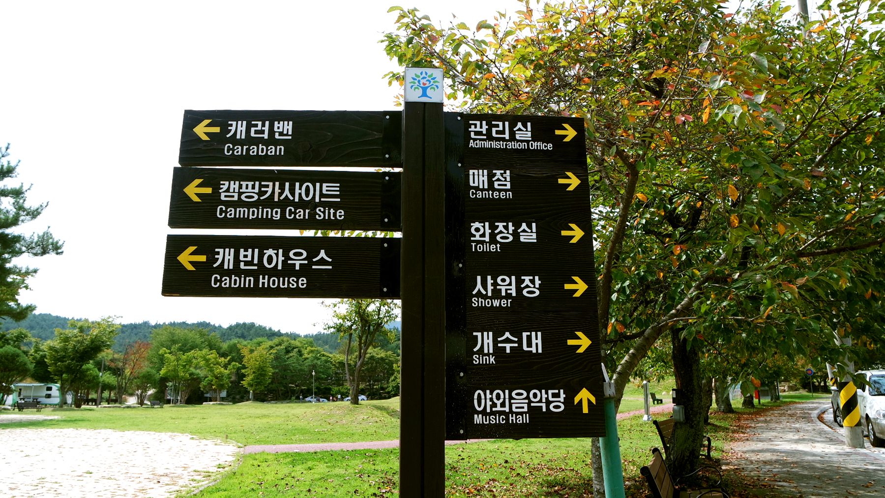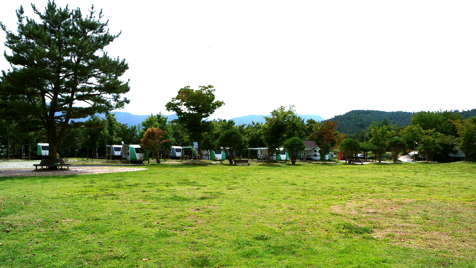 캠핑장 입구에 들어오면 넓은 잔디광장이 보이는데요, 산과 어우러진 잔디밭은 보는 것만으로도 기분이 무척 좋아지는 곳이예요.