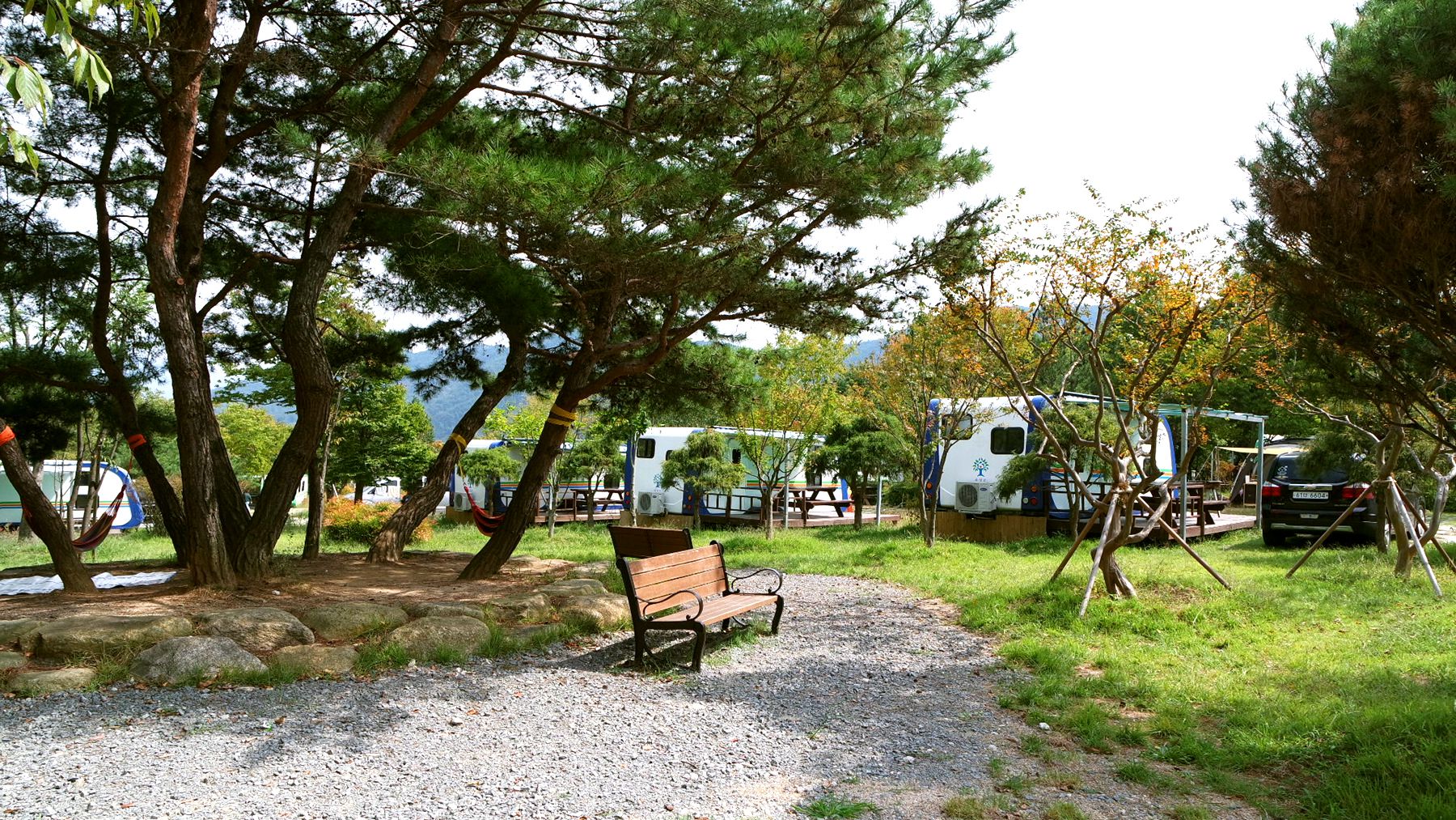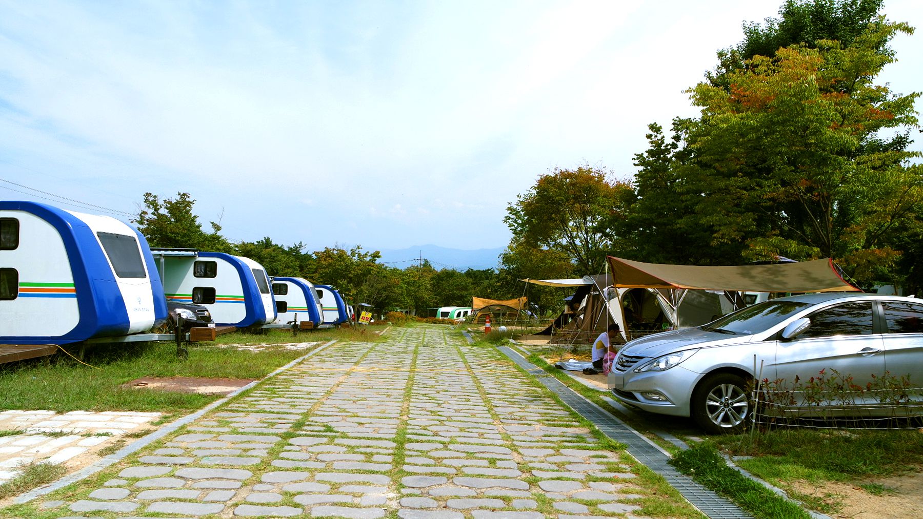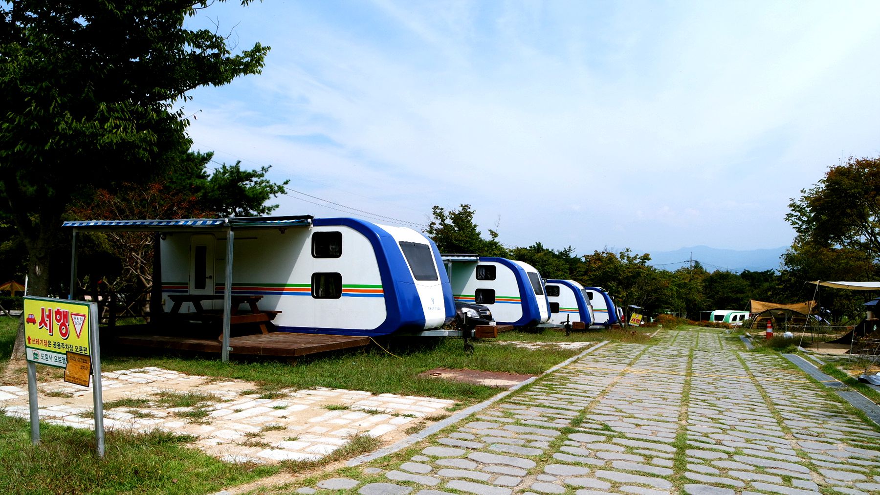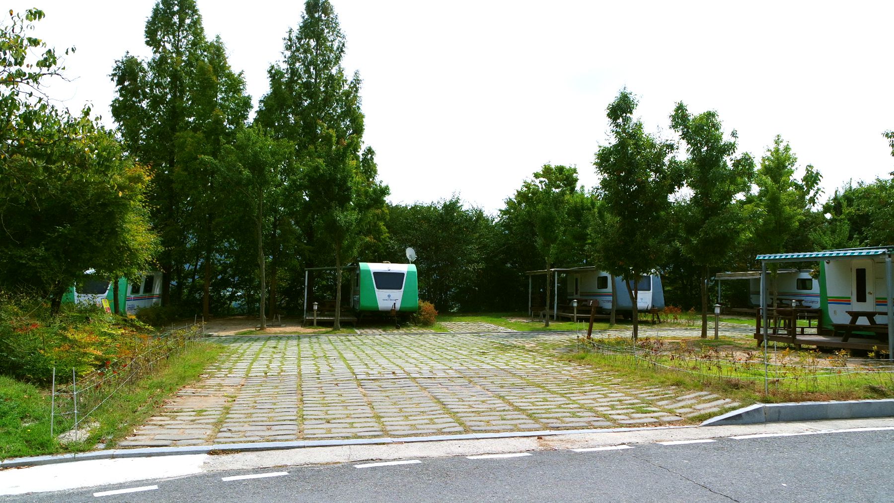 넓은 이동도로를 두고 캐러반과 캠핑장이 마주하고 있습니다.