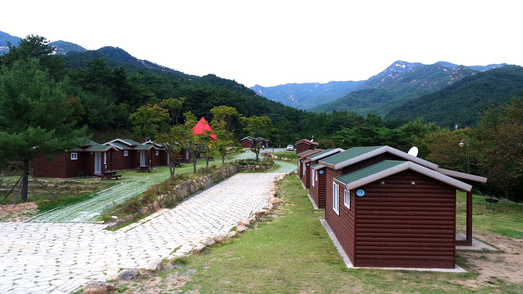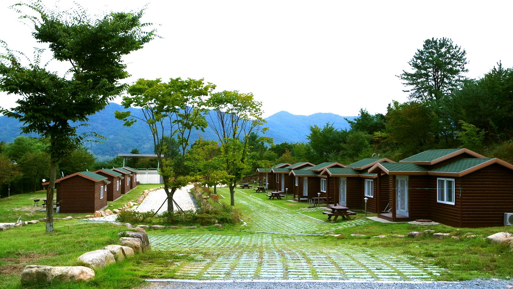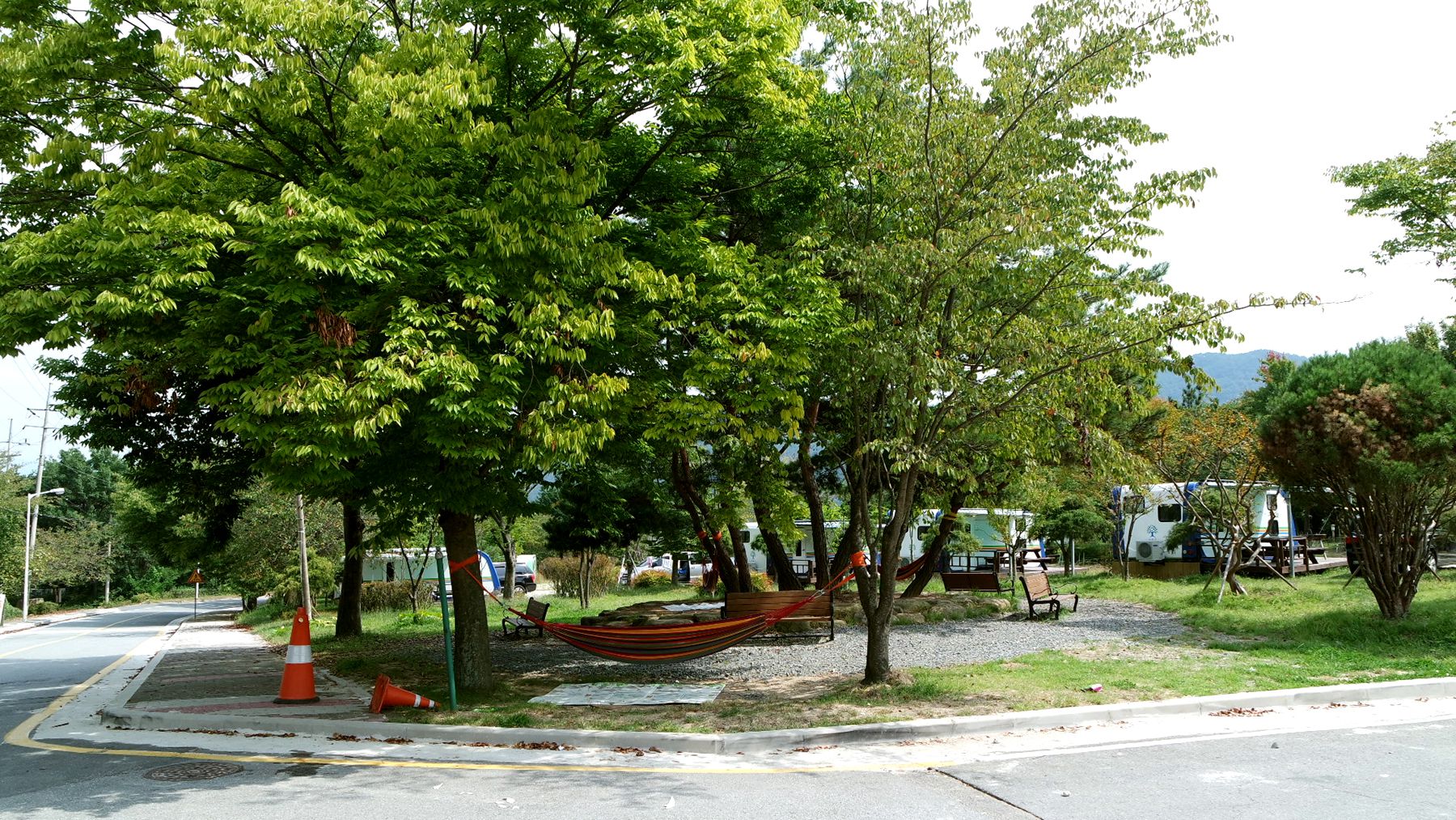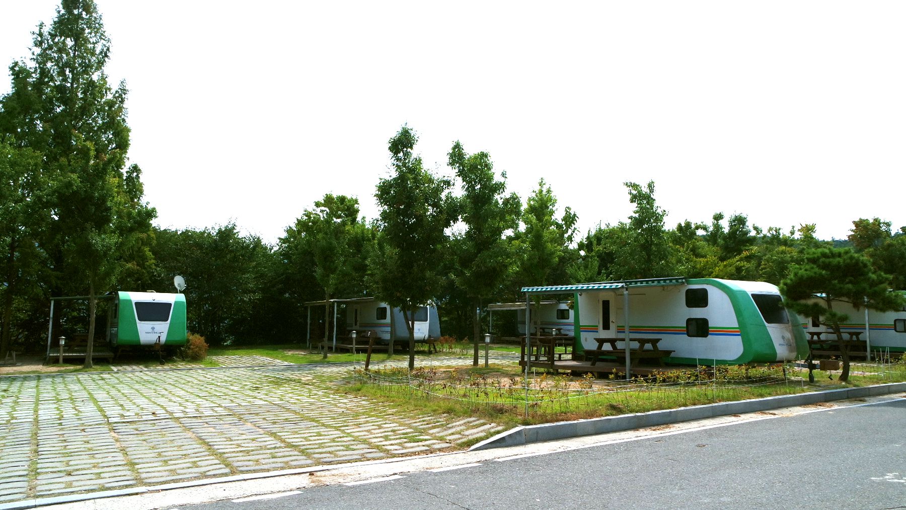 넓은 이동도로를 두고 캐러반과 캠핑장이 마주하고 있습니다.