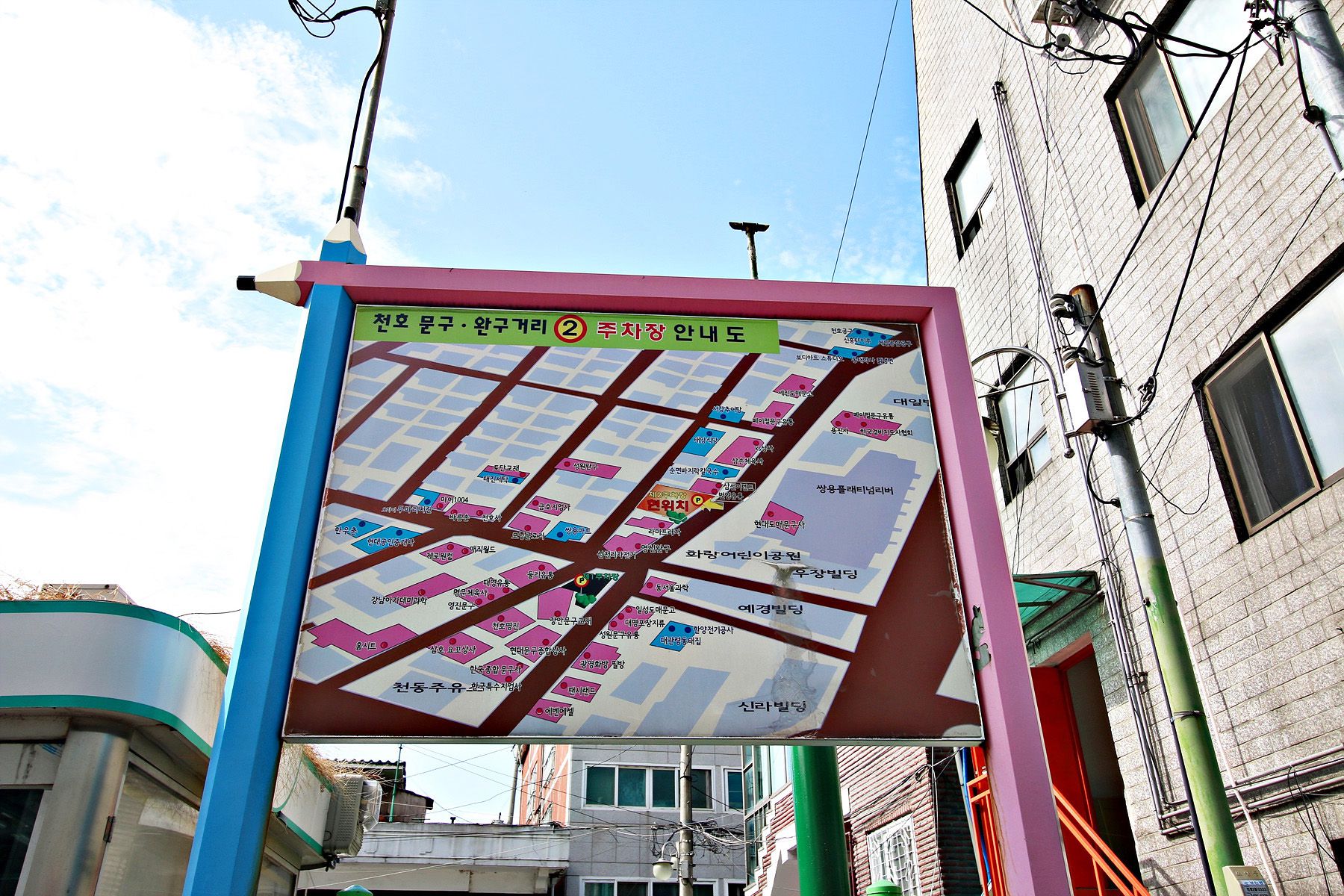 주차공간 부족이라는 시장이 가지고 있는 단점을 극복하는 거리랍니다.