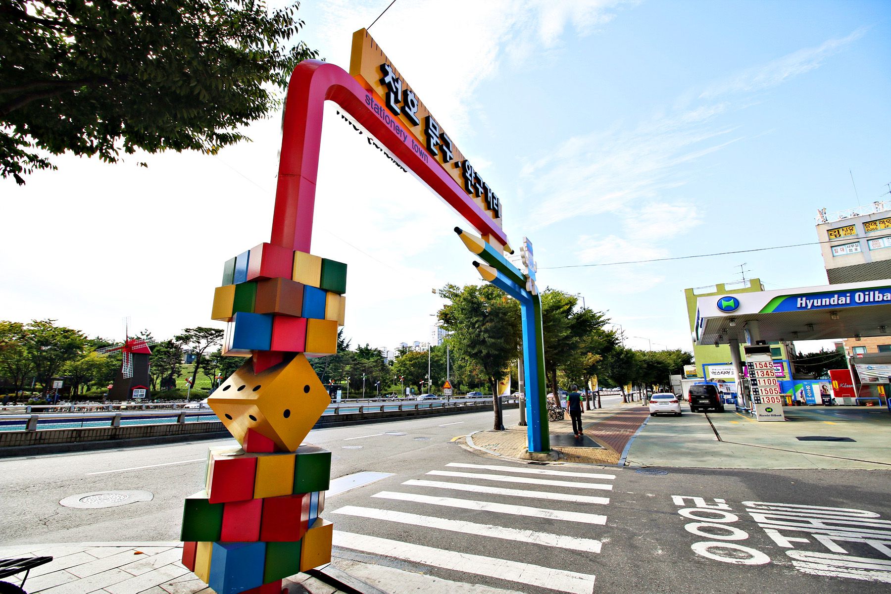 구부러진 연필모양의 알록달록 게이트가 눈에 보입니다.
