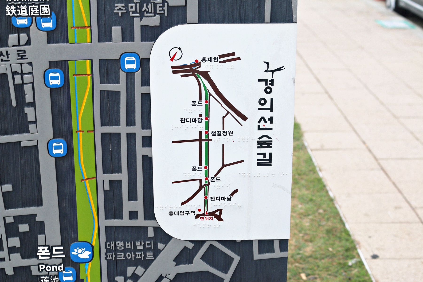 홍제천부터 용산문화체육센터까지 이어지는 공원구간은 4.4km의 길과 경의선 및 공항철도 역사 구간