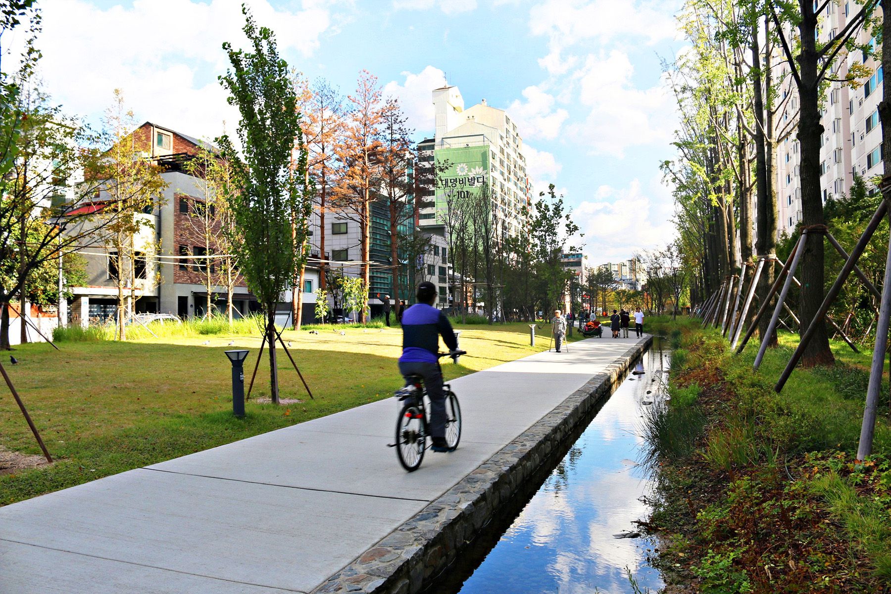 편안하고 쾌적하게 도시를 즐길 수 있고 산책로와 자전거길이 형성되어져 있어 온 가족이 이용하기 좋으며