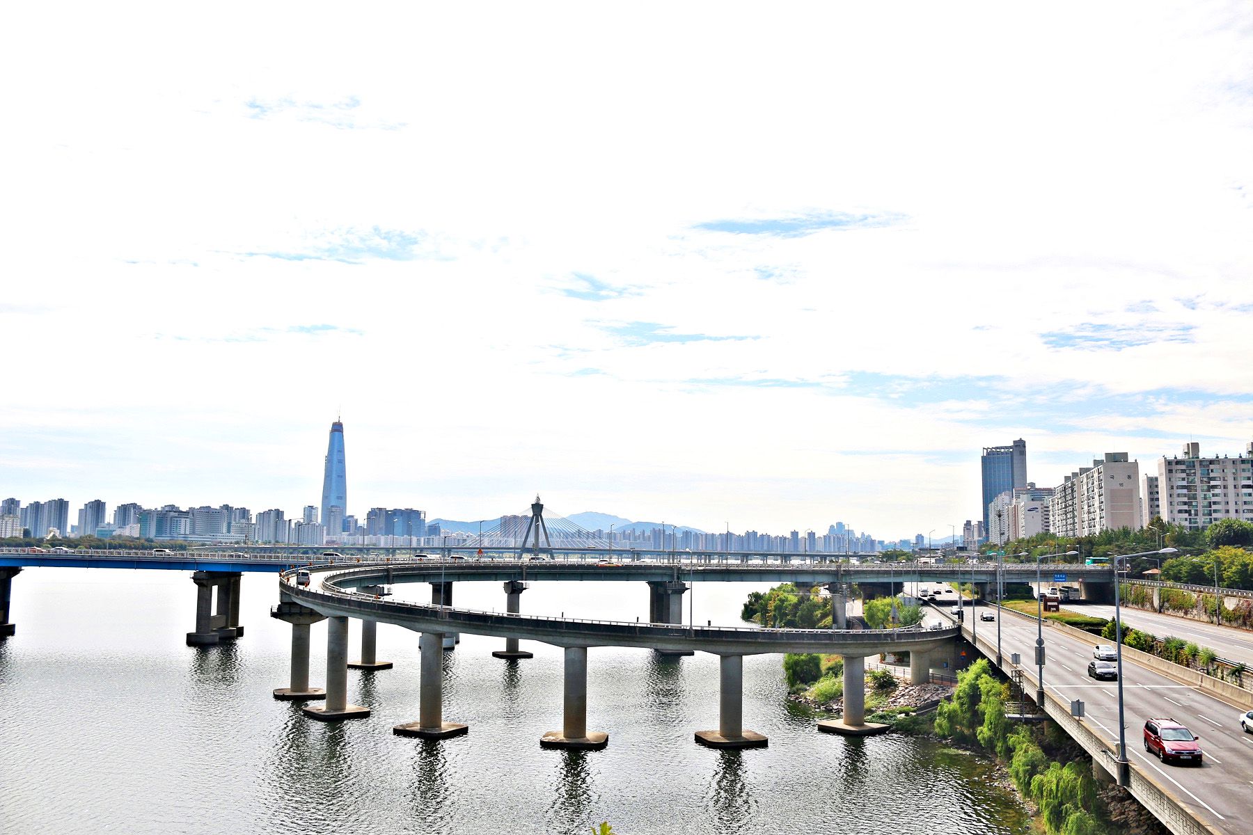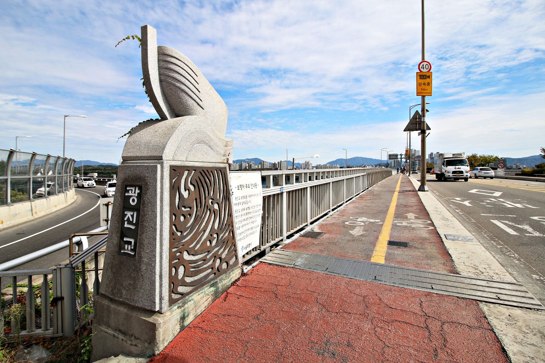 광진교 교각 위를 걷다 보면 천호대교와 송파구의 풍경이 한눈에 들어옵니다.