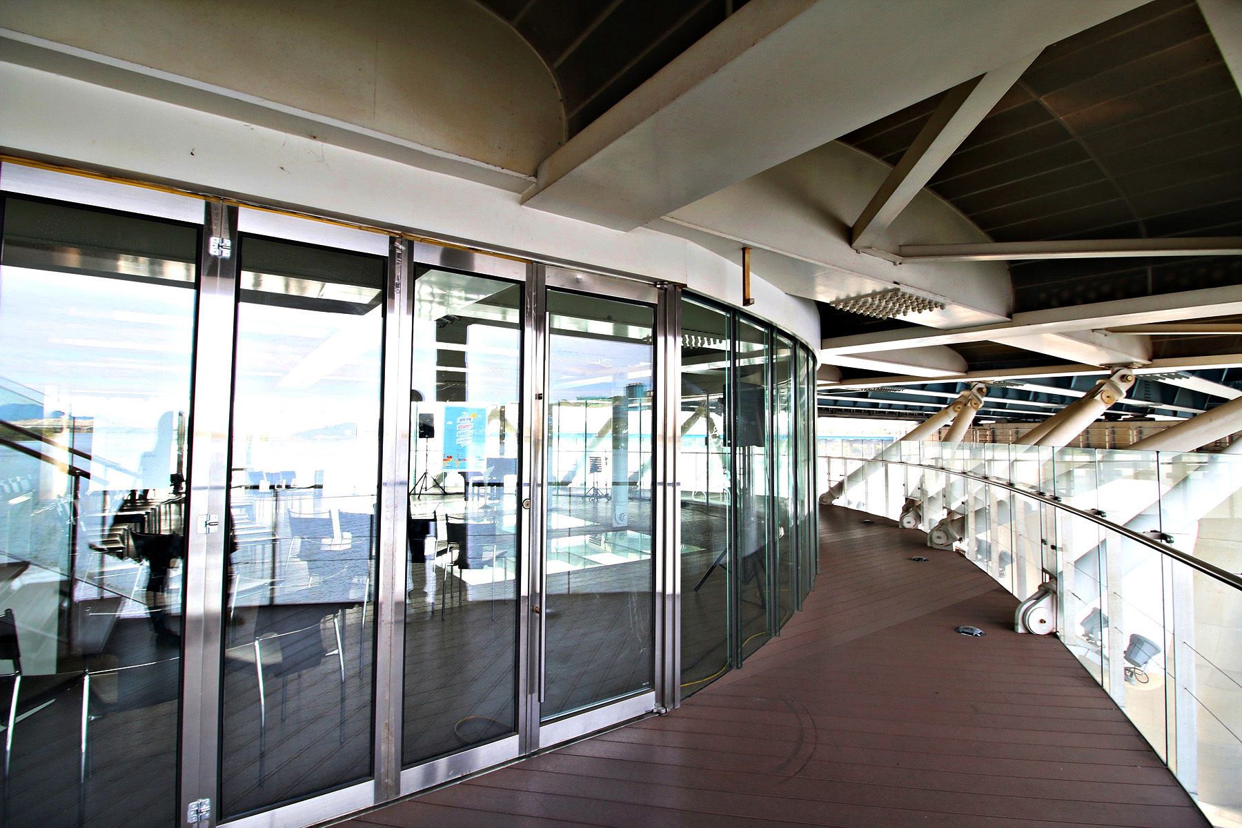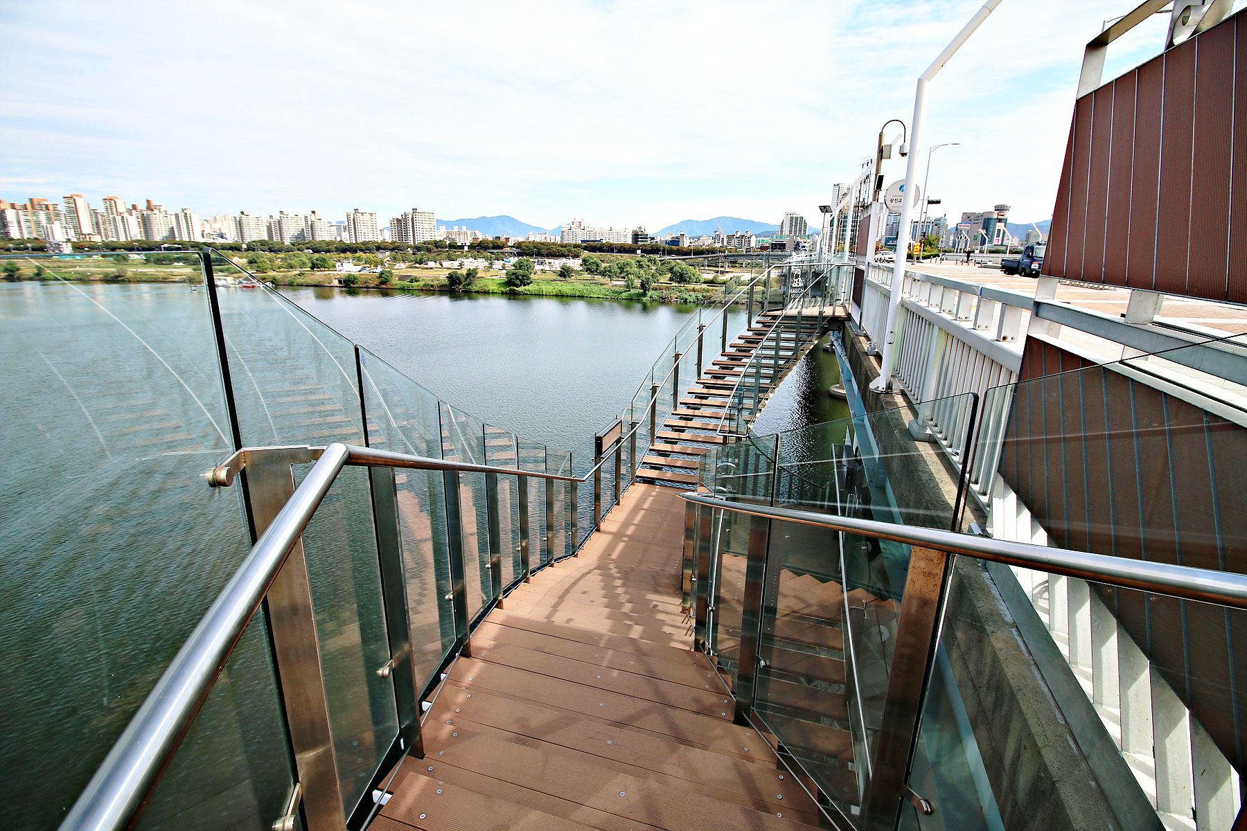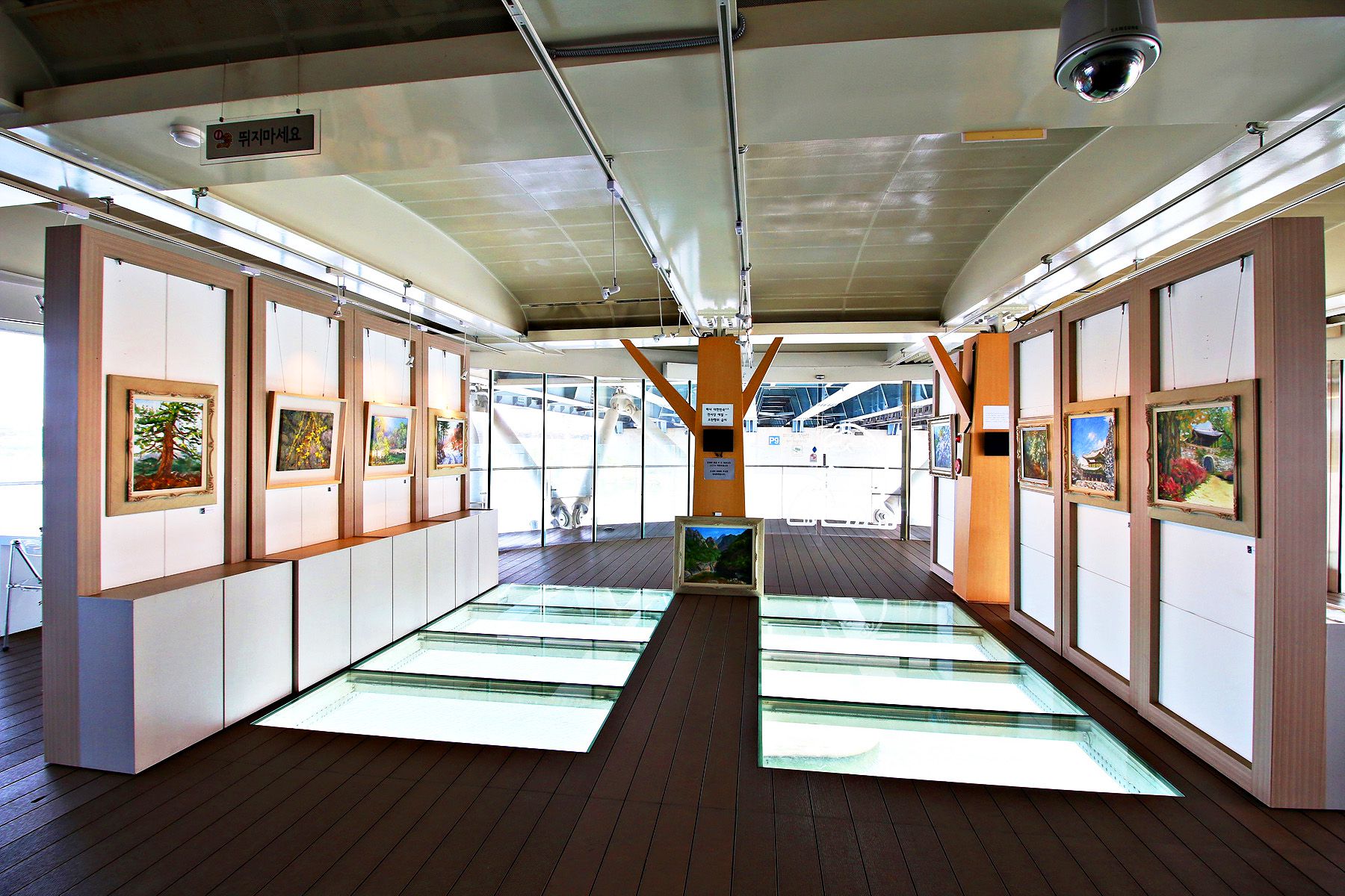 바닥 곳곳이 유리로 되어있어, 유리너머 흘러가는 한강을 볼 수 있습니다.