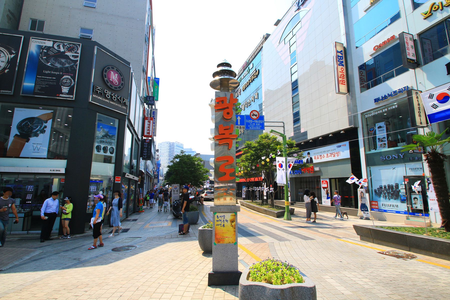 광복로 패션거리는 옛 시청 교차로와 만나는 광복로 입구에서부터 구 미화당 백화점을 지나