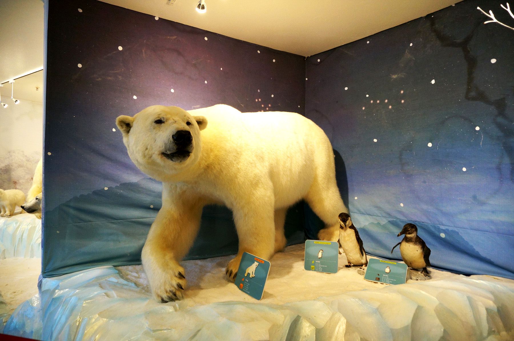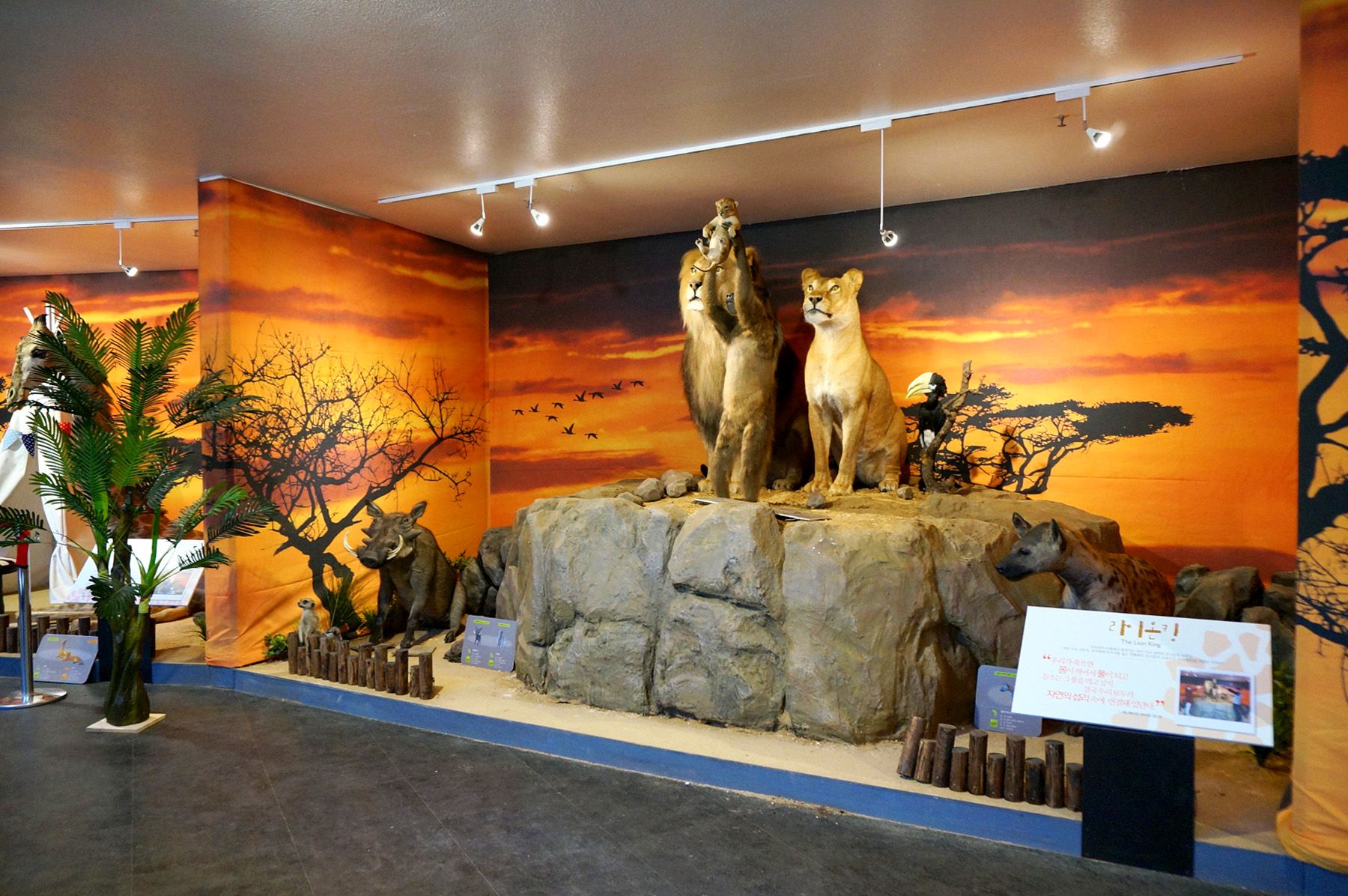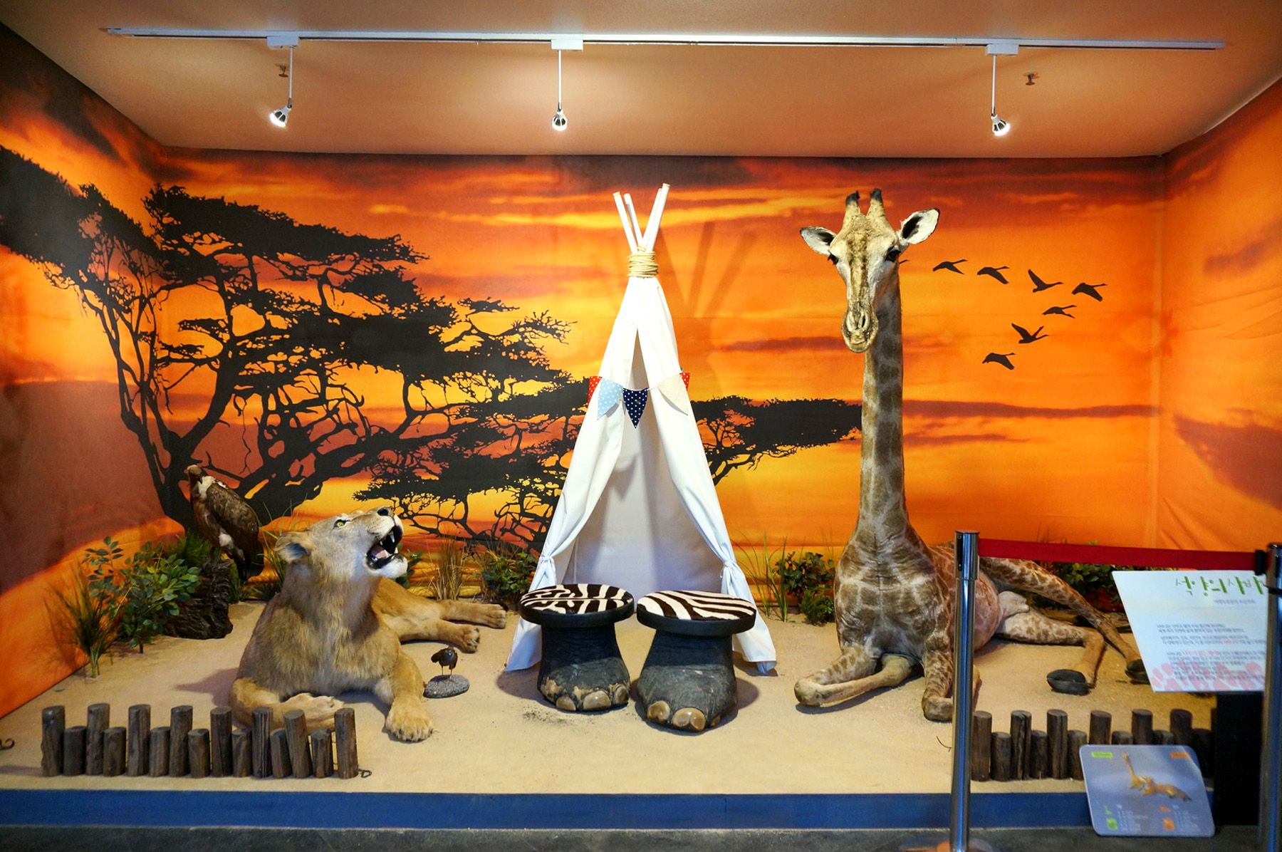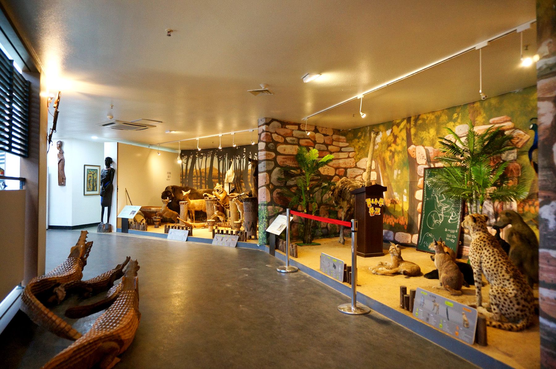 동물 박제 전시실에는 아프리카의 다양한 동물들이 각기 다른 스토리로 전시되어 있습니다.