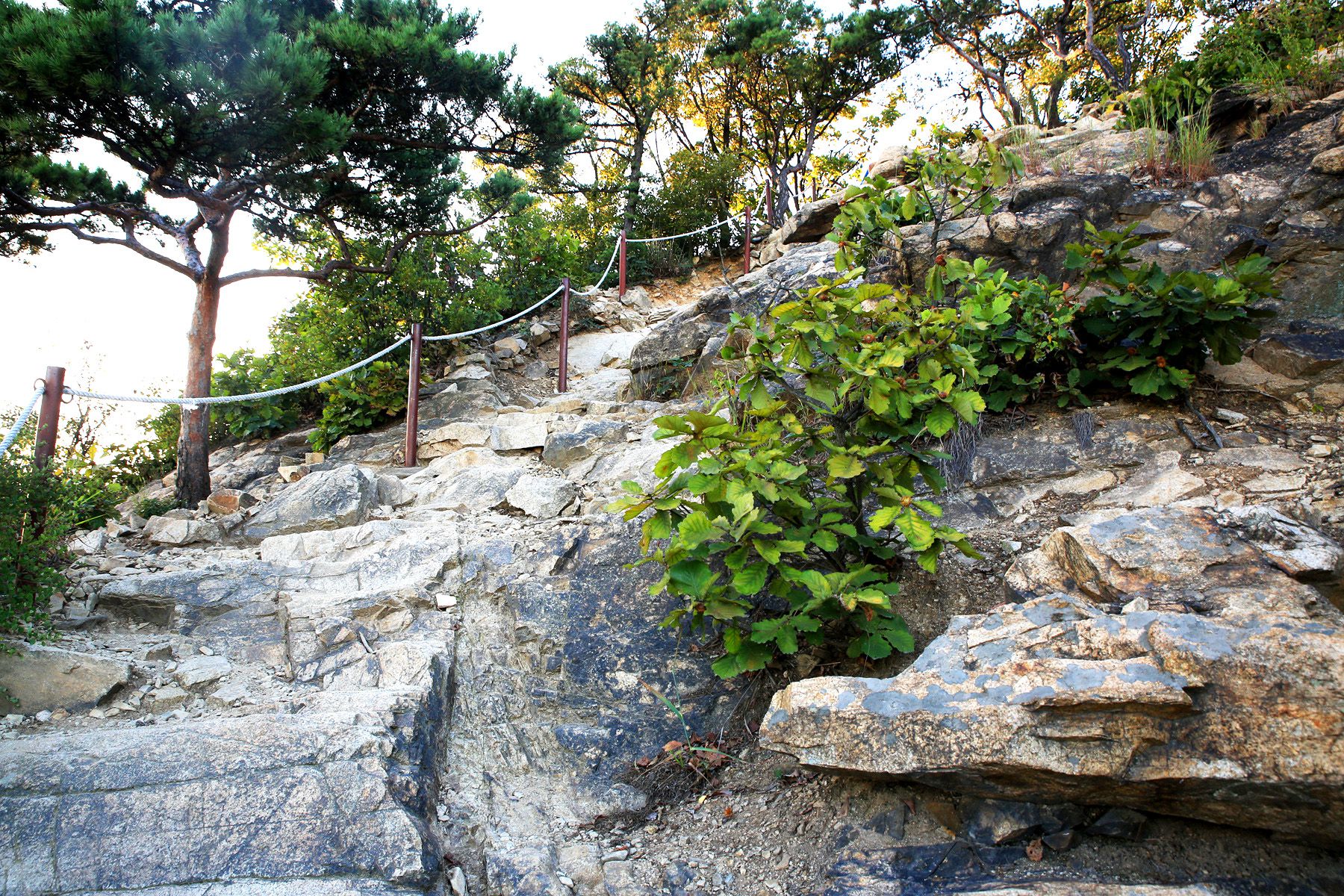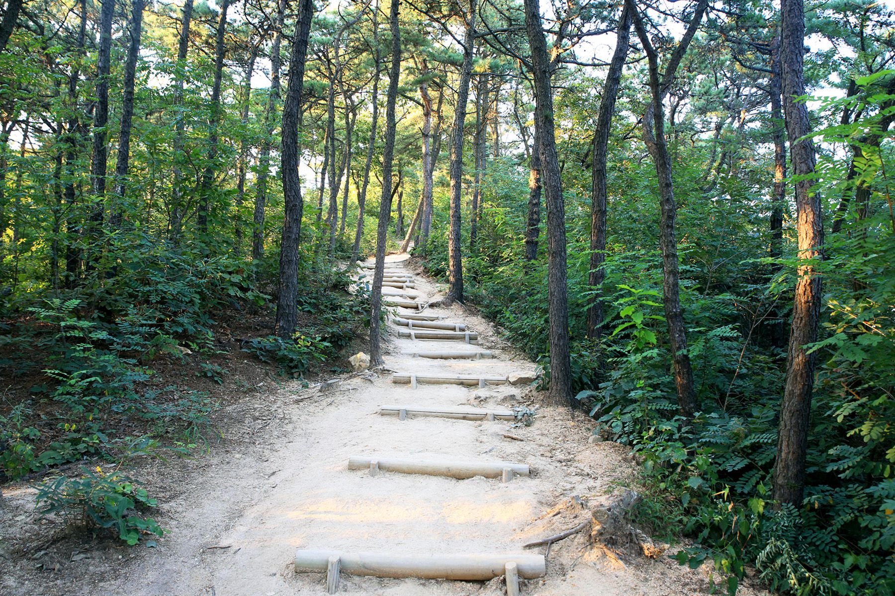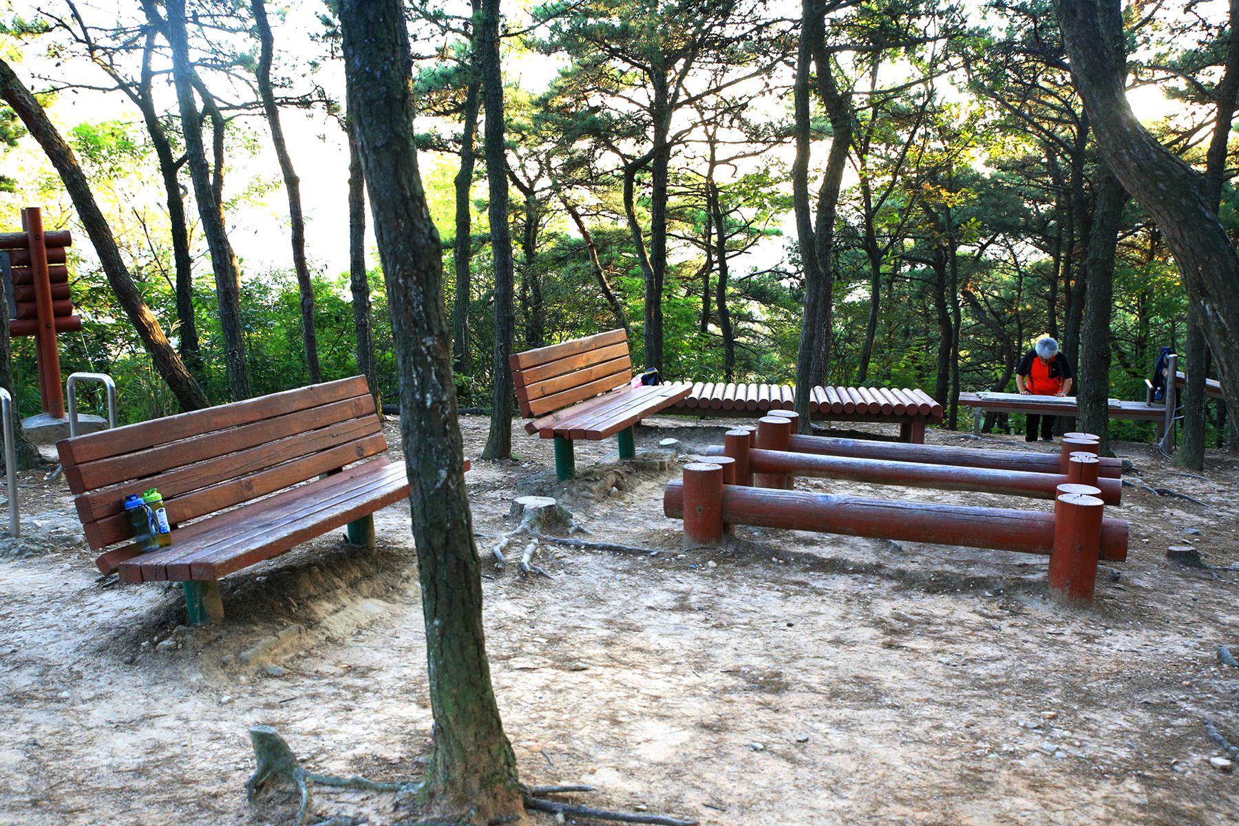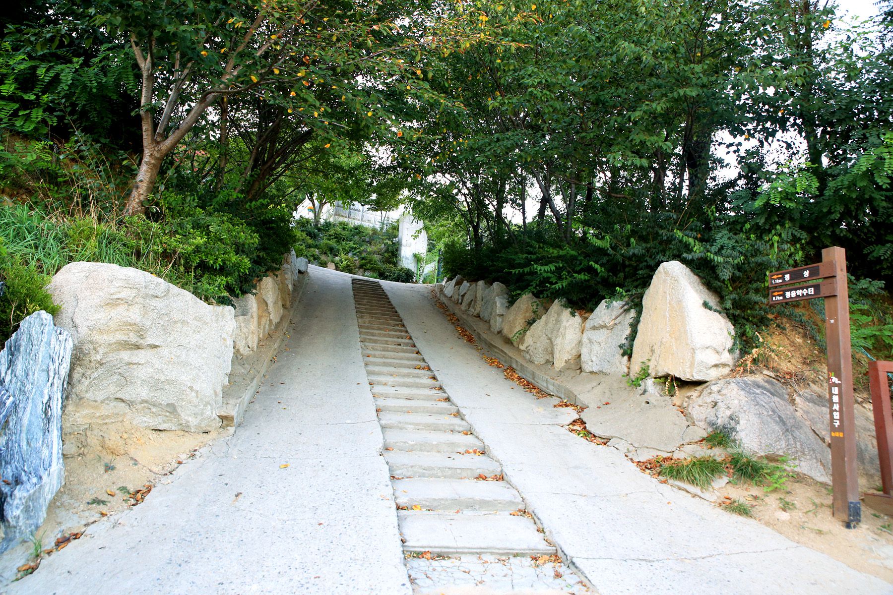 정상까지 향하는 산책로에는 각종 체육시설을 비롯하여 잘 갖추어진 숲도 조성이 되어져 있어
