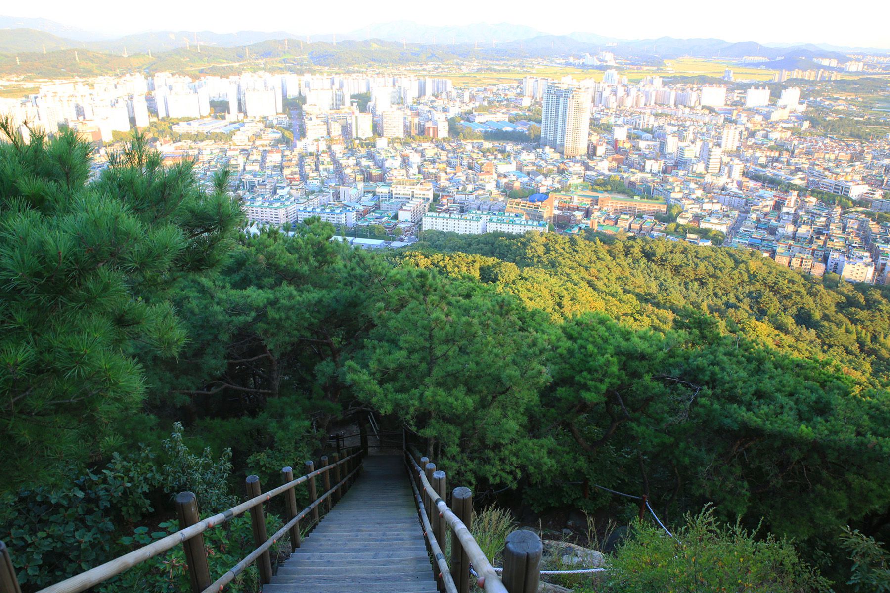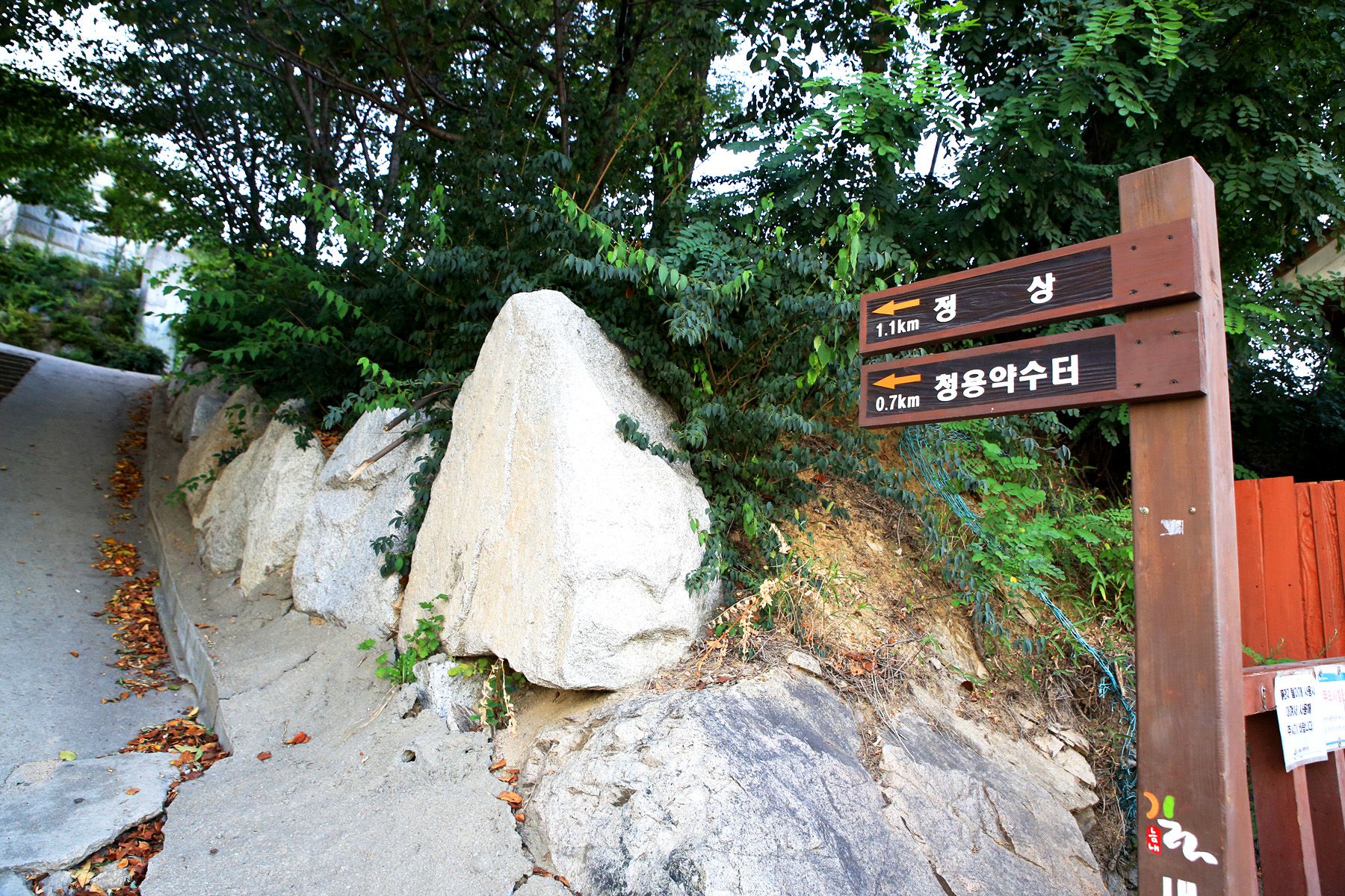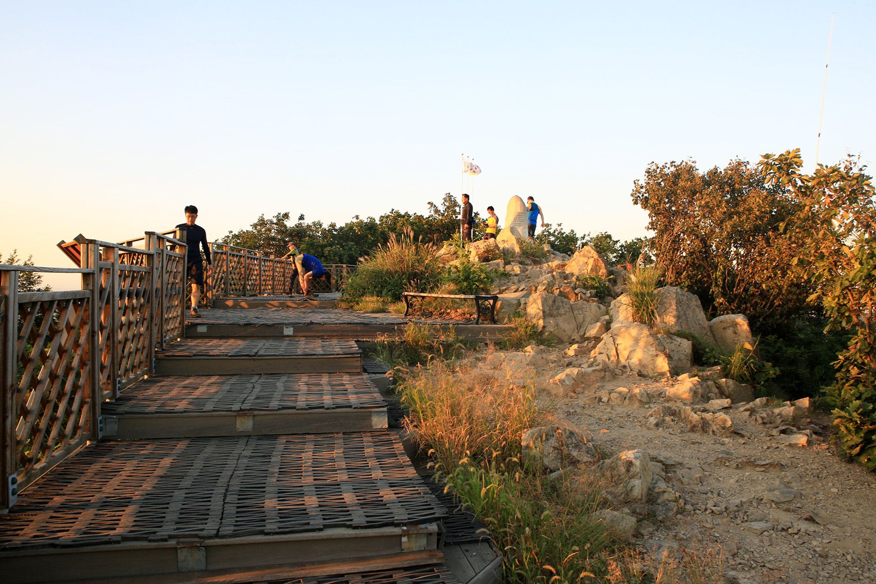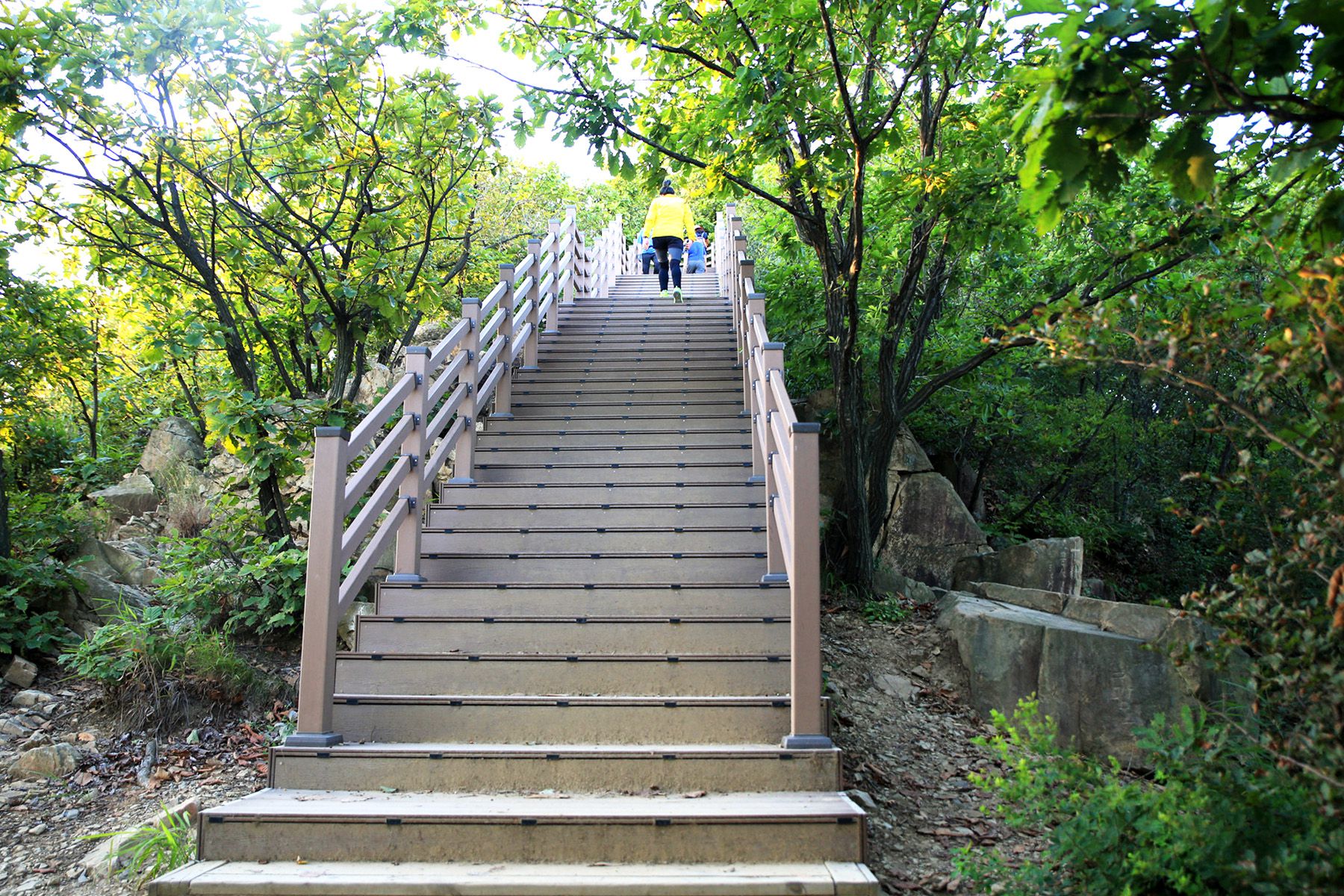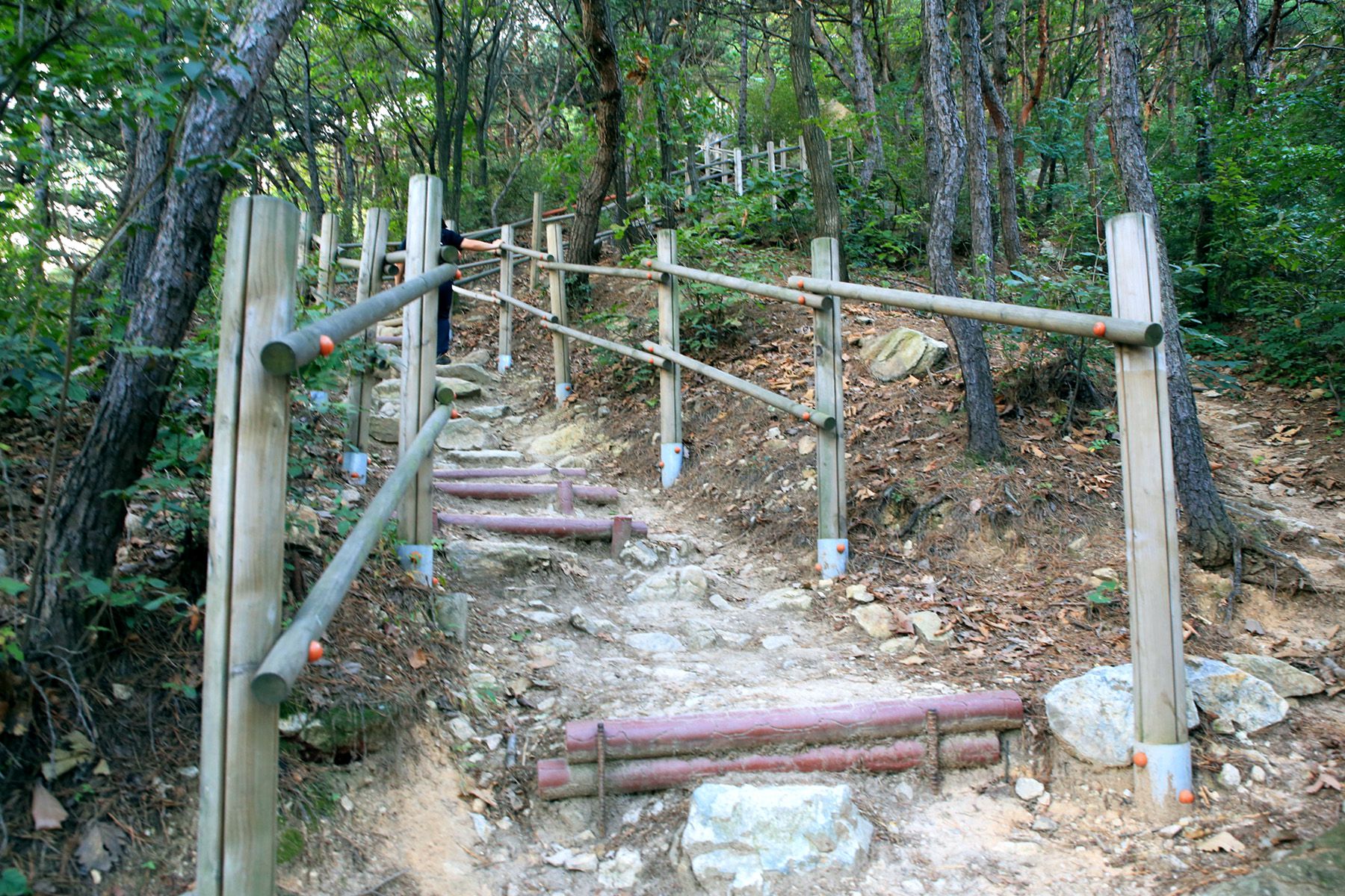 정상까지 향하는 산책로에는 각종 체육시설을 비롯하여 잘 갖추어진 숲도 조성이 되어져 있어