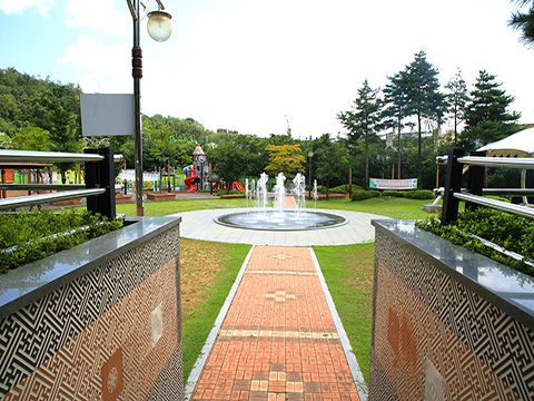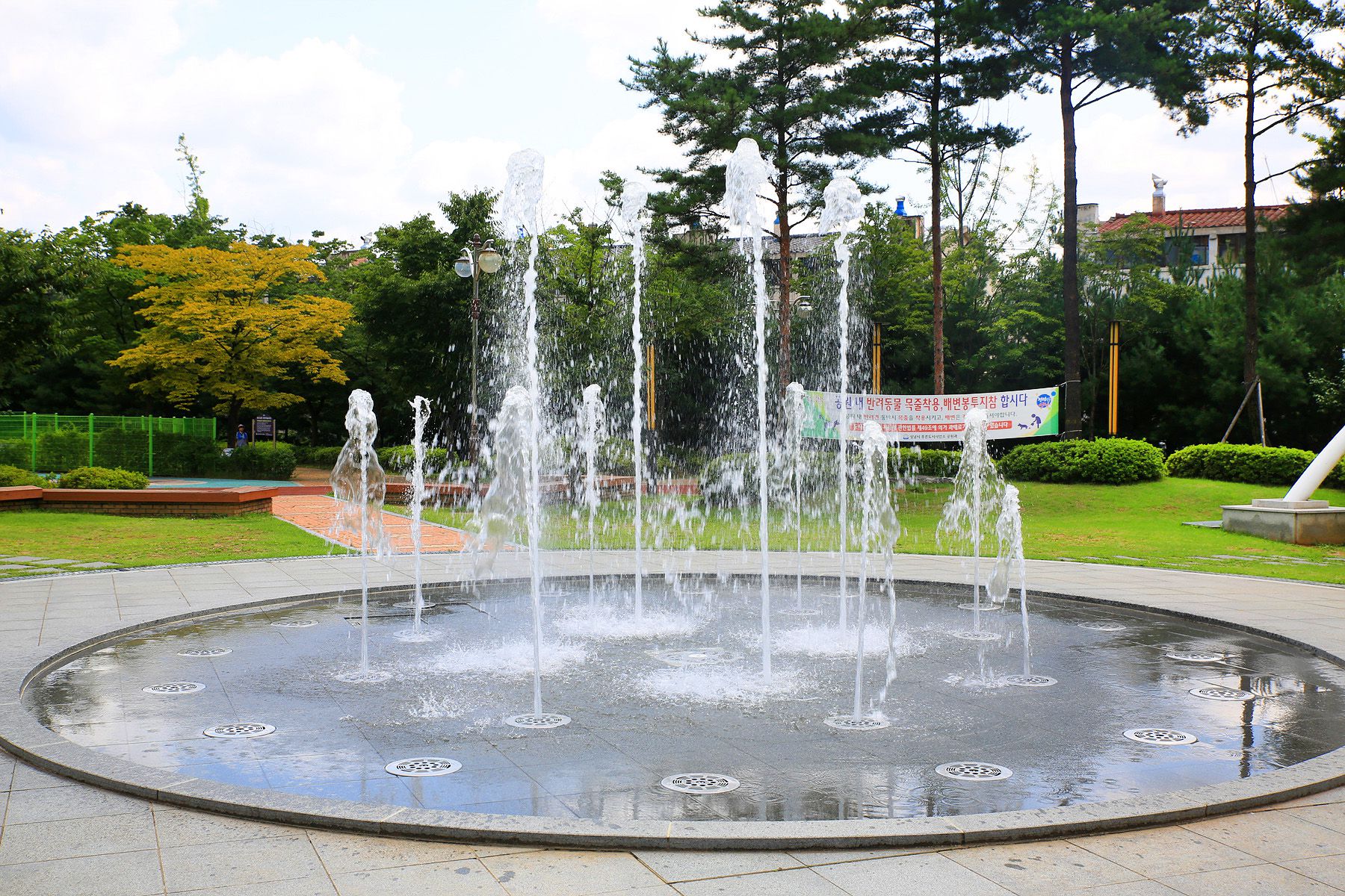 공원의 입구쪽으로 들어서면 시원하게 쏘아올리는 바닥분수를 볼 수 있는데