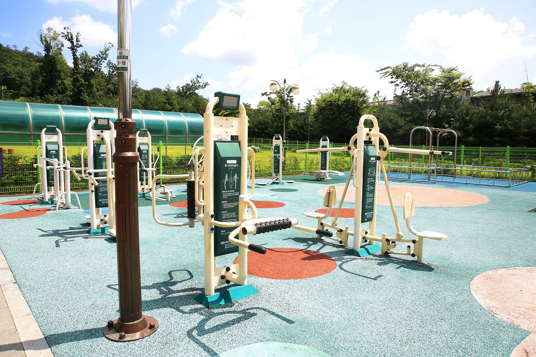 아이들이 즐겨보기 좋은 놀이터 시설과 어른들이 즐겨볼 수 있는 운동기구와 체육장 또한