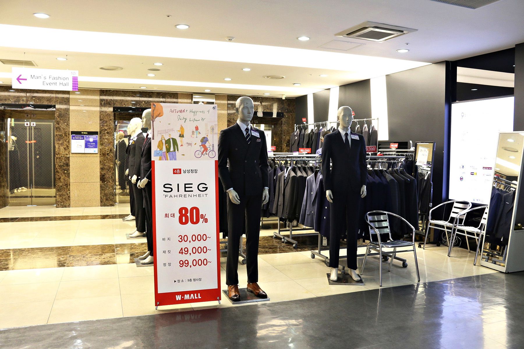 4층엔 남성정장과 캐릭터 캐쥬얼코너가 조성되어 있는데