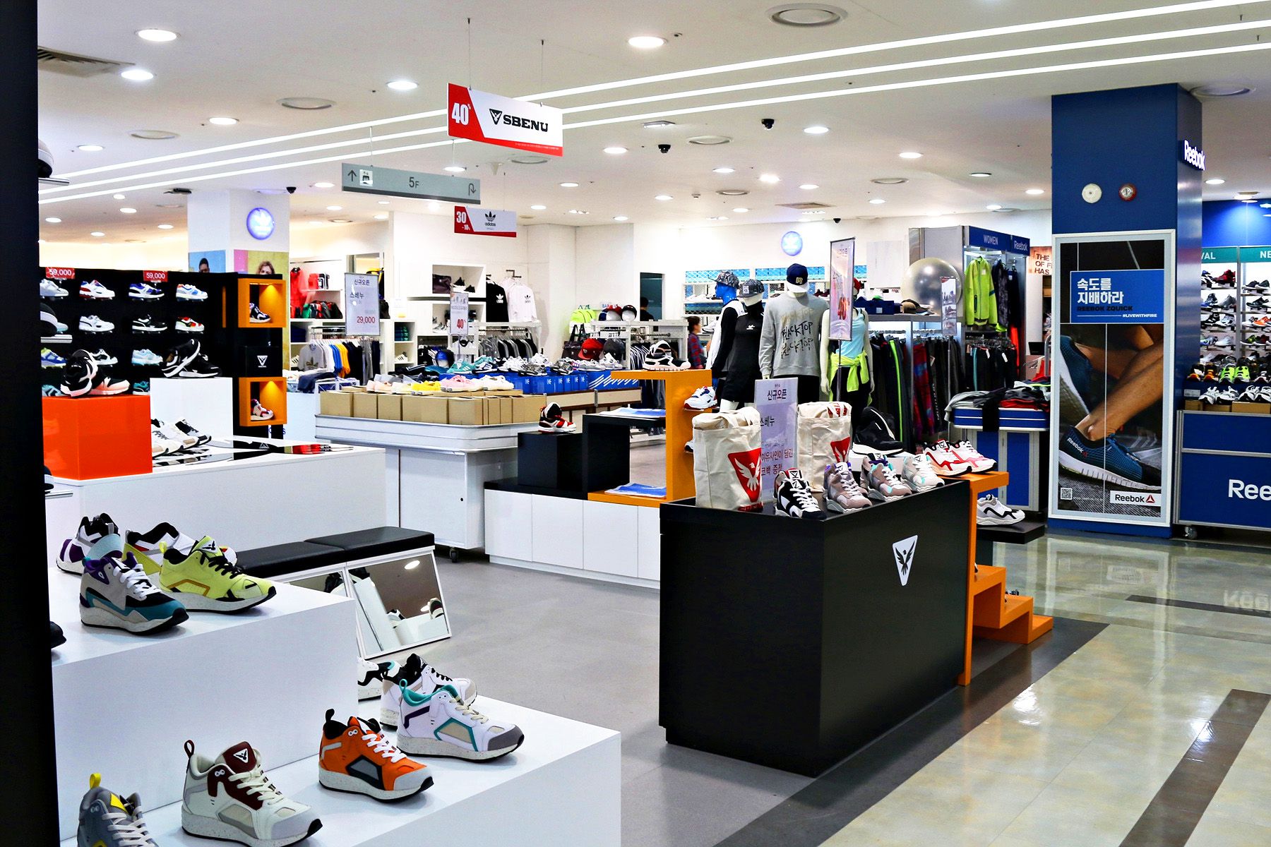5~6층엔 남녀노소 모두가 좋아하는 스포츠코너와 아웃도어코너가 자리하고 있는데
