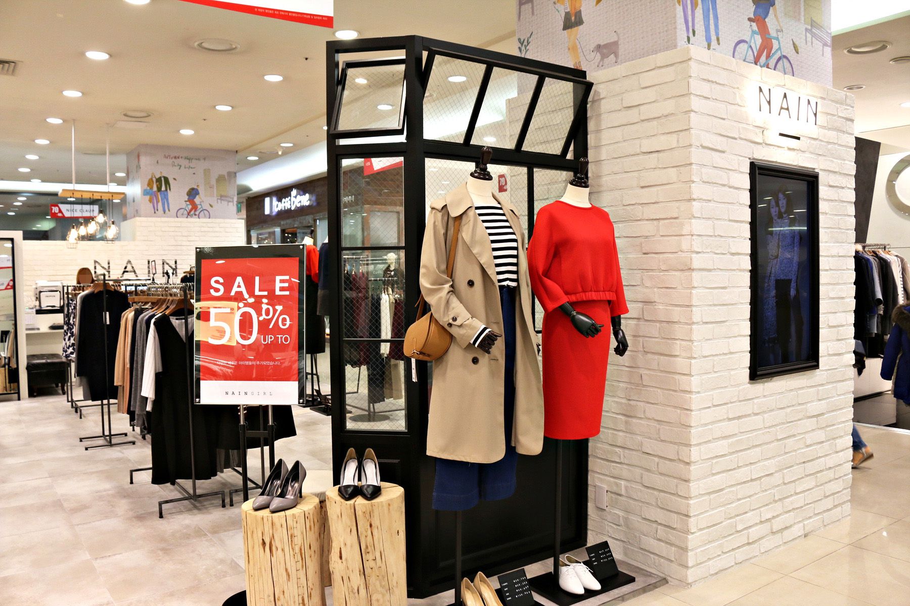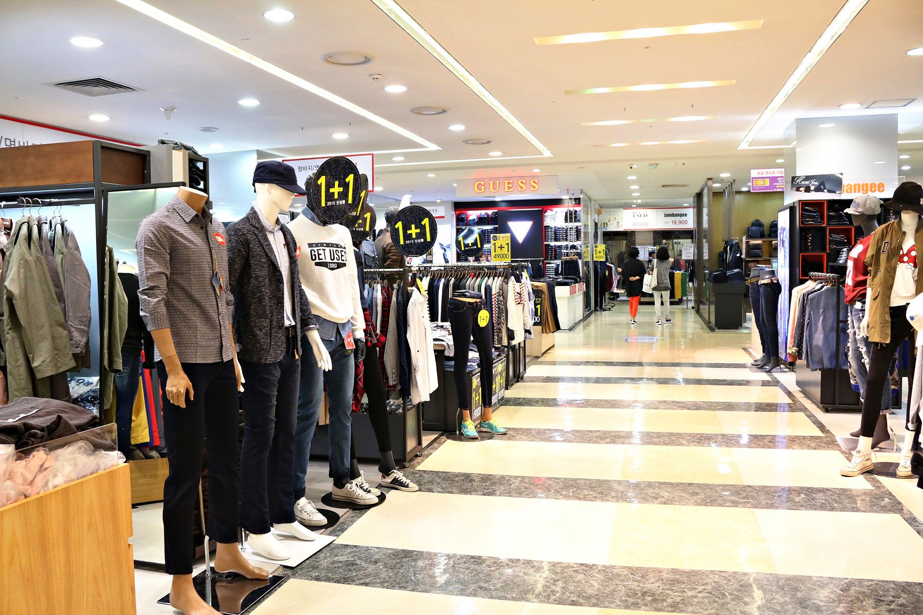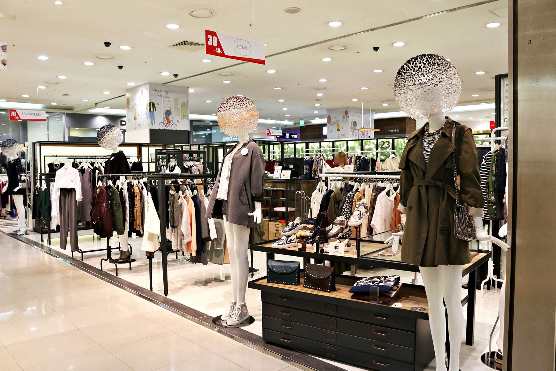 지하1층의 화장품과 잡화 등의 판매점부터 1층에는 영캐쥬얼,