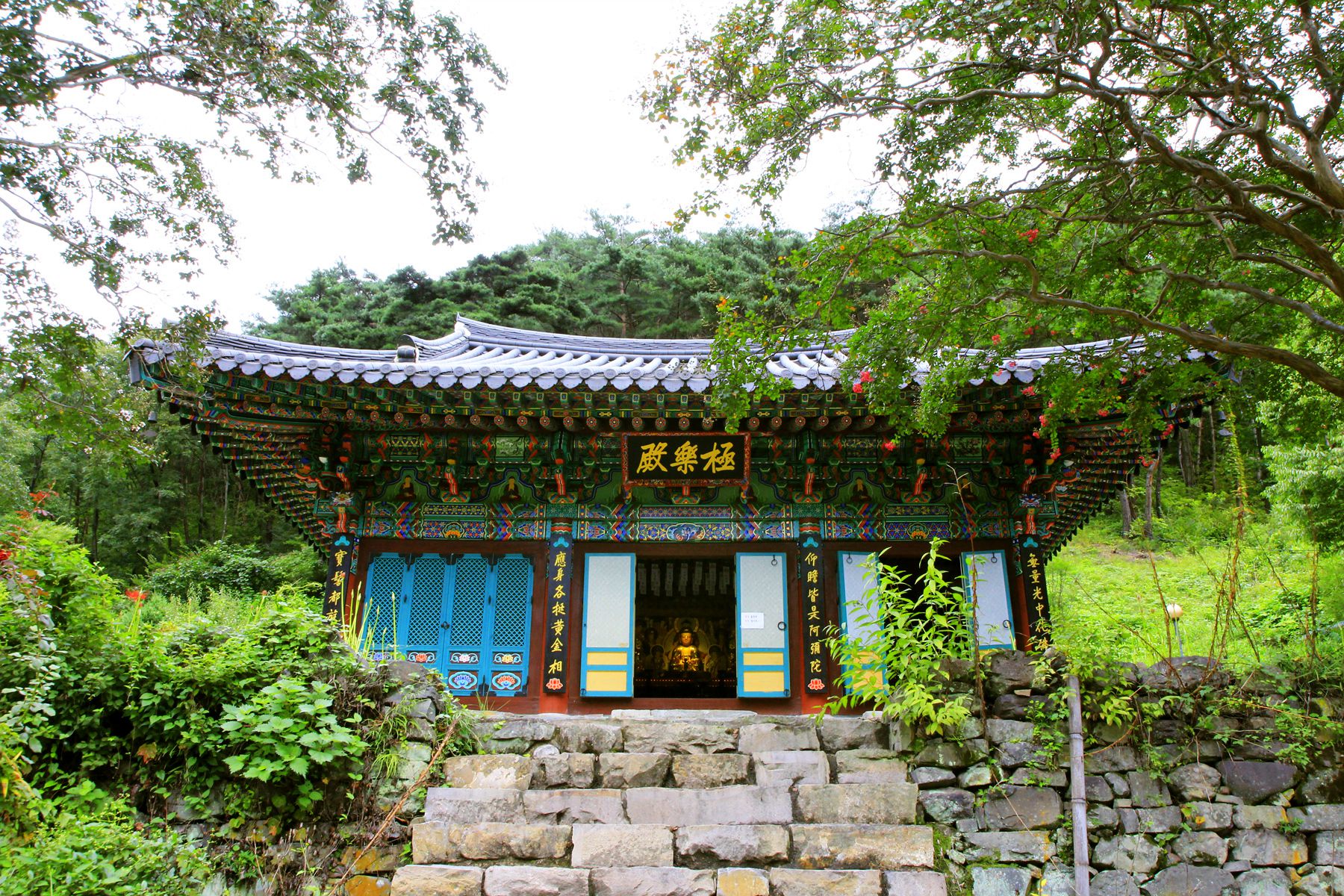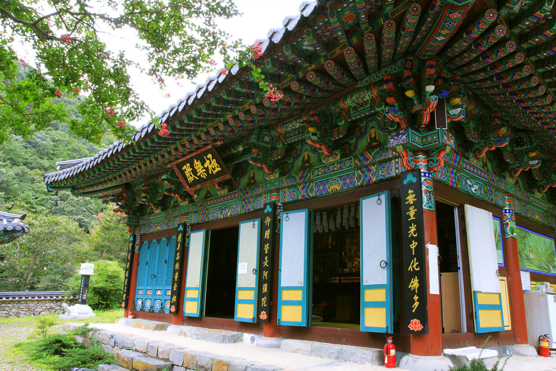 극락전 앞에는 배롱나무 두그루가 자리잡고 있어 배롱나무 꽃이 피어나는 계절이면 더욱 멋스러운 풍경을 연출합니다.