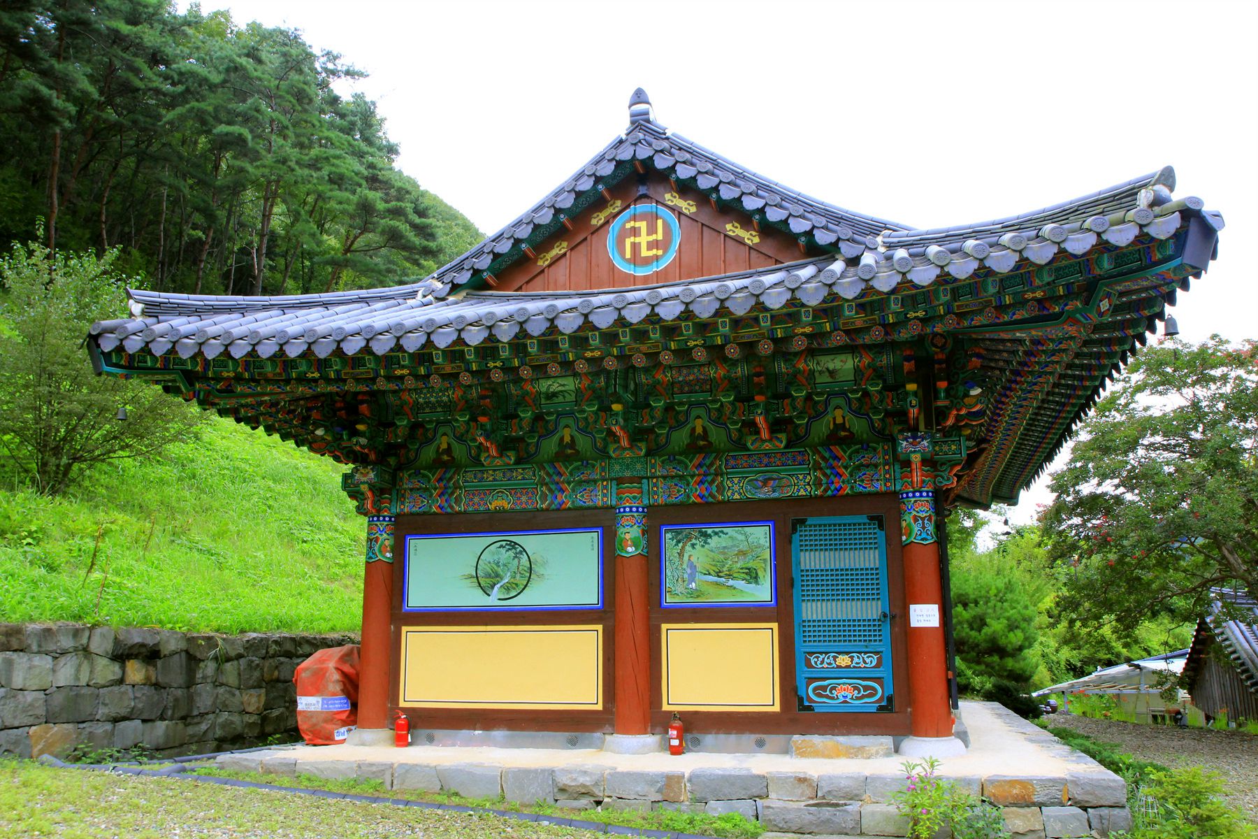 유학사의 극락전은 정면 3칸과 측면 2칸의 팔작지붕 형태로 단청이 화려하고 아름답습니다.