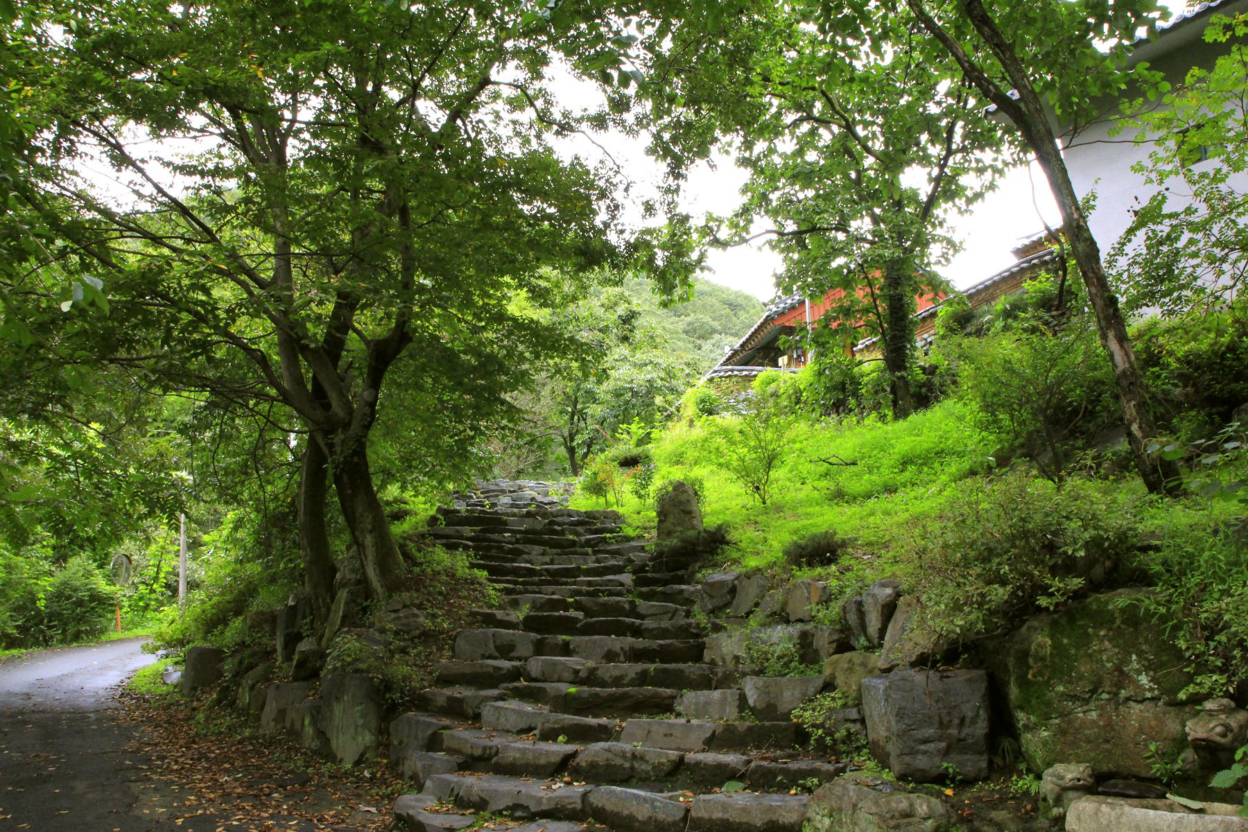 돌계단 따라 오르며 자연의 상쾌한 에너지를 느껴보세요.
