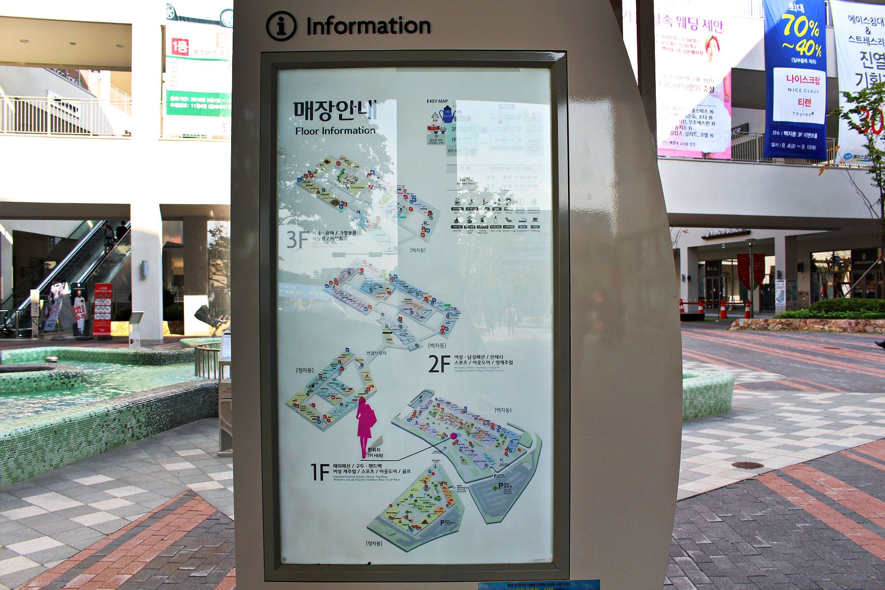 구성되어져 있으며 백자동의 경우 1층에 해외패션 구두,핸드백 2층에 여성,남성패션 란제리