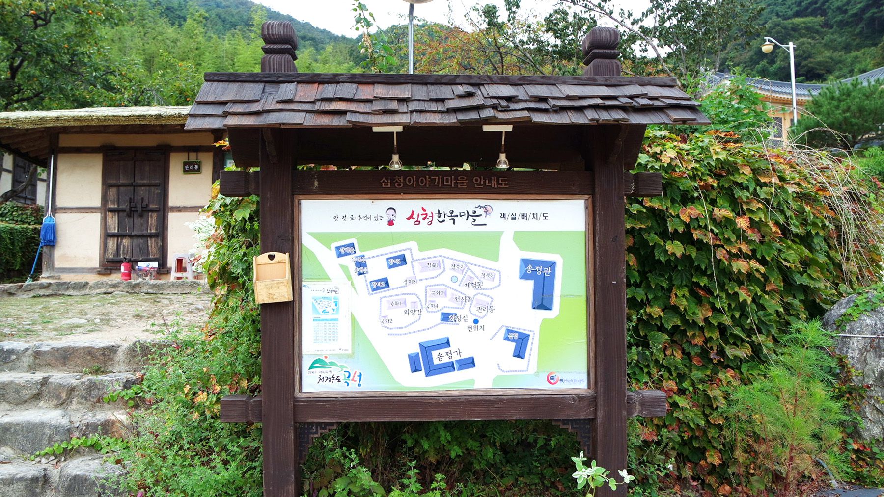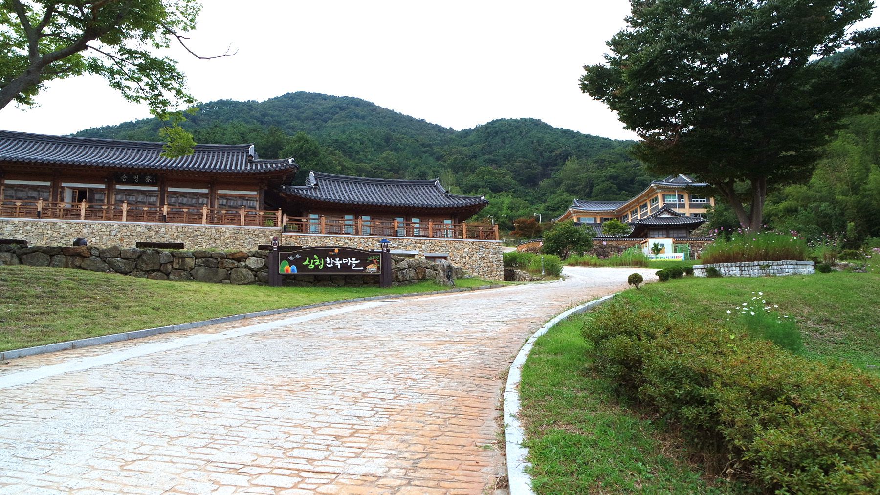심청한옥마을은 산 중턱에 위치하고 있으며, 빼어난 자연경관을 감상할 수 있습니다.