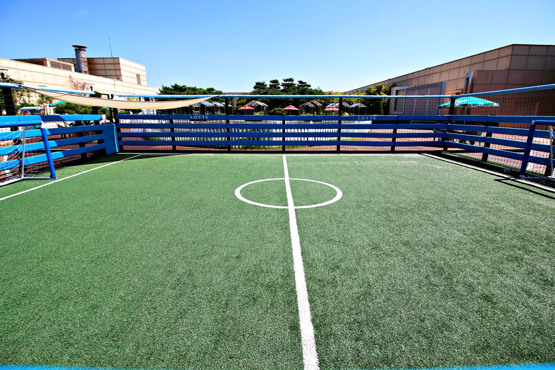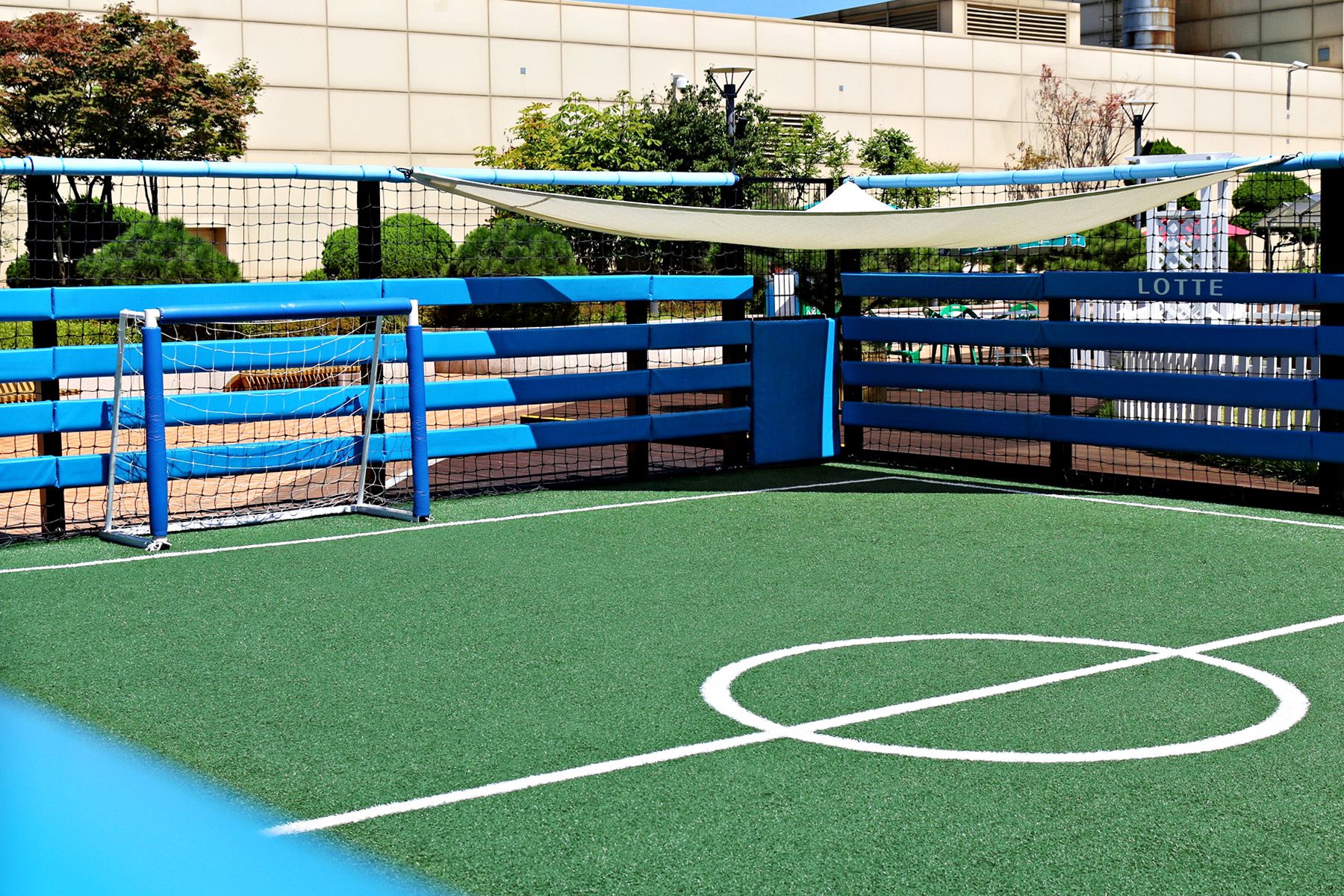 옥상공원의 한켠에는 아이들이 축구를 즐길 수 있는 작은 어린이 축구장도 마련되어 있는데