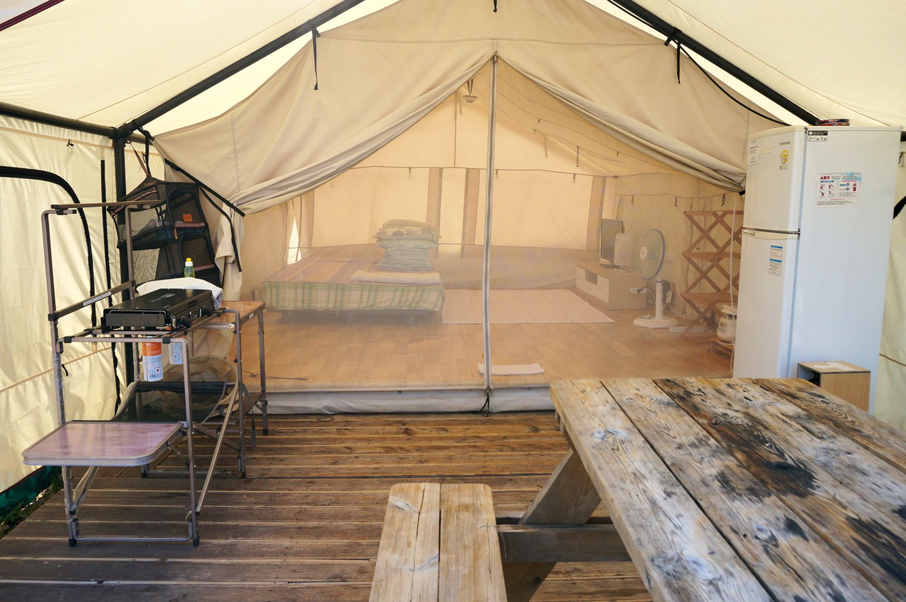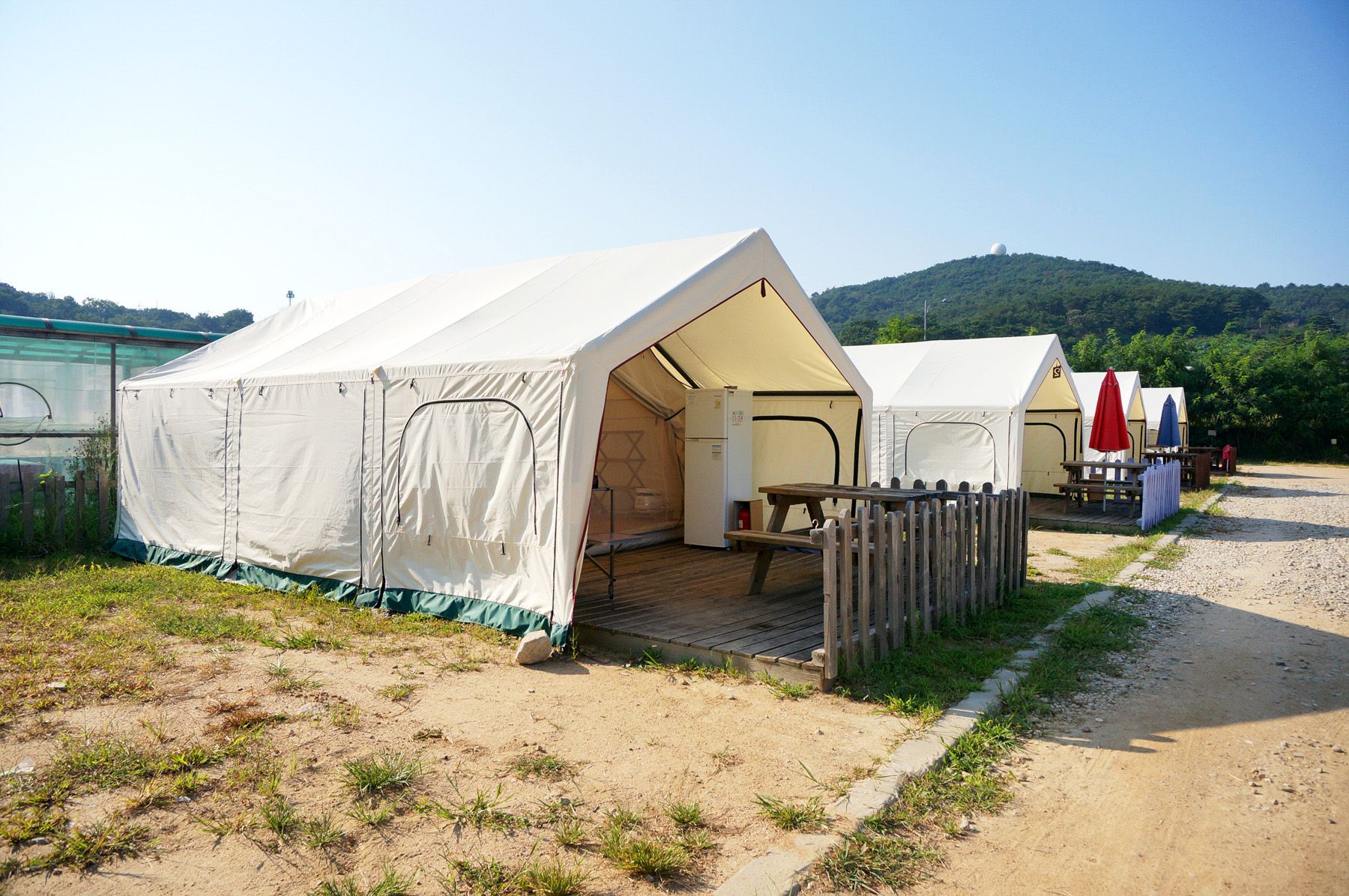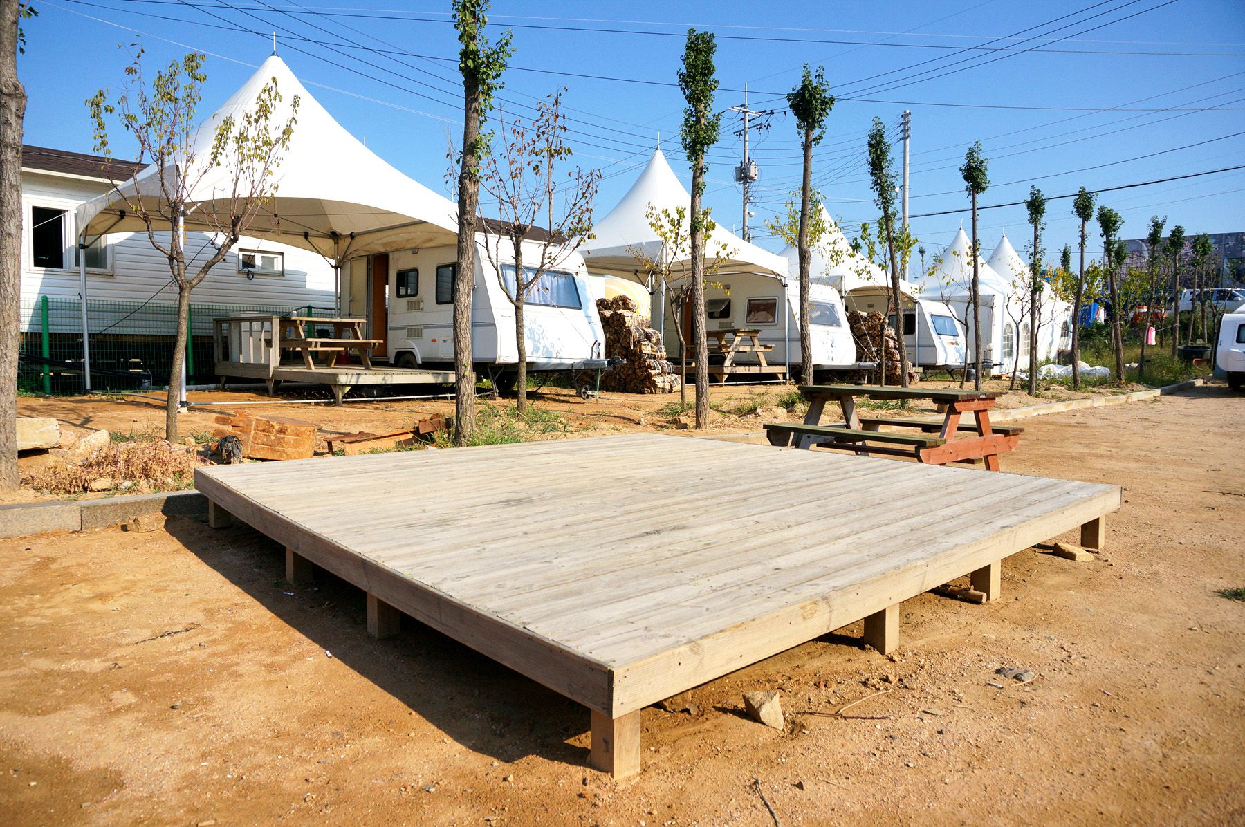 직접 텐트를 들고 가시면 설치가 편하도록 텐트 설치용 평상도 준비가 되어 있습니다.