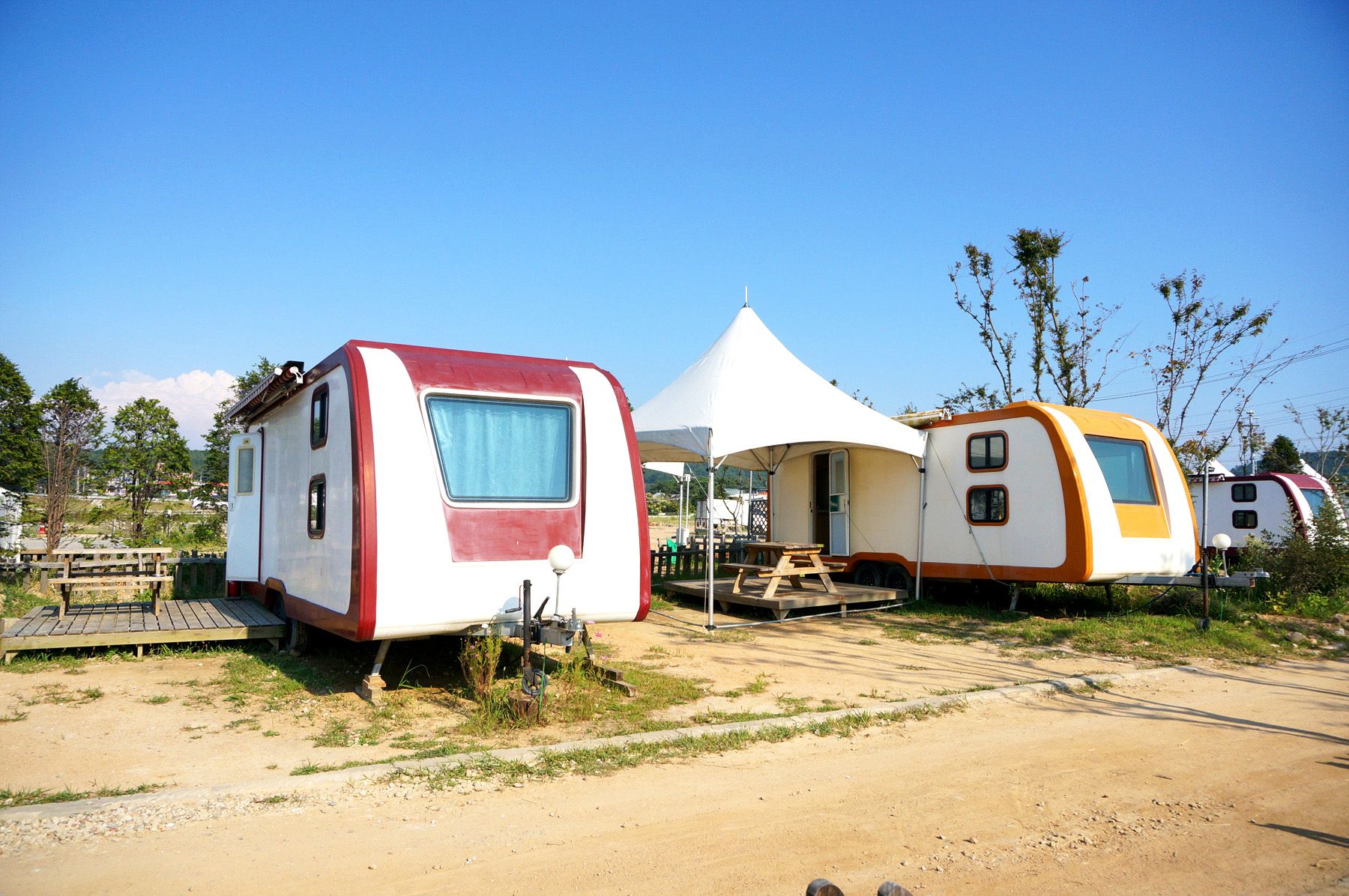 캠핑카에서 캠핑을 즐길 수 있는 카라반도 만날수가 있습니다.