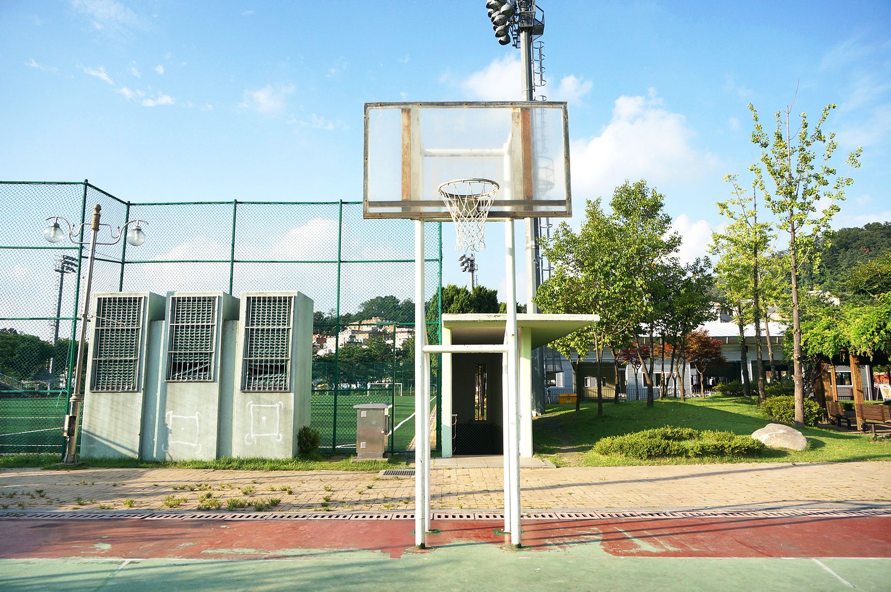 축구장은 90m* 50m 1면이며 인조 잔디구장이고, 농구장의 경우 우레탄 코트 1면으로