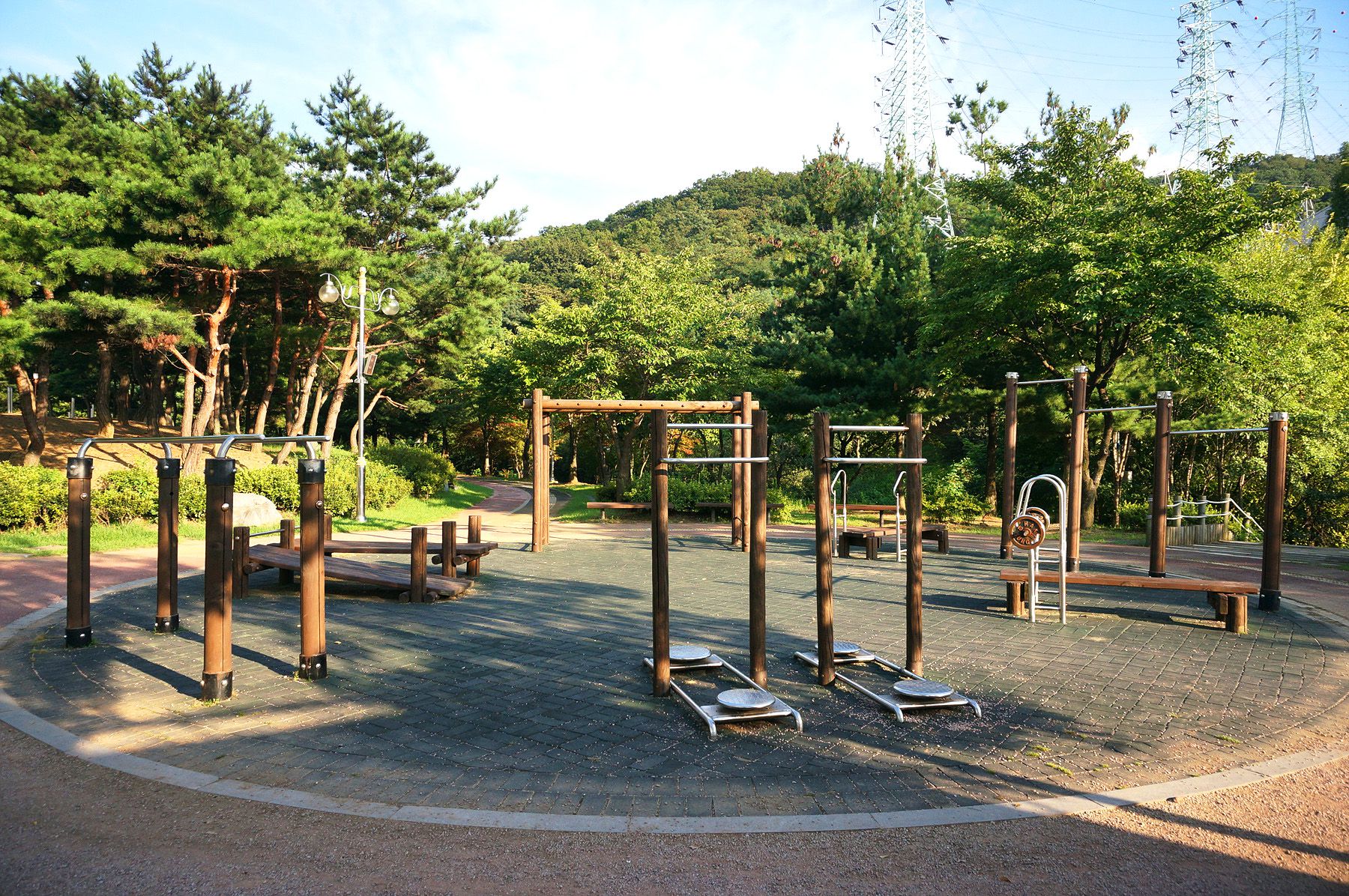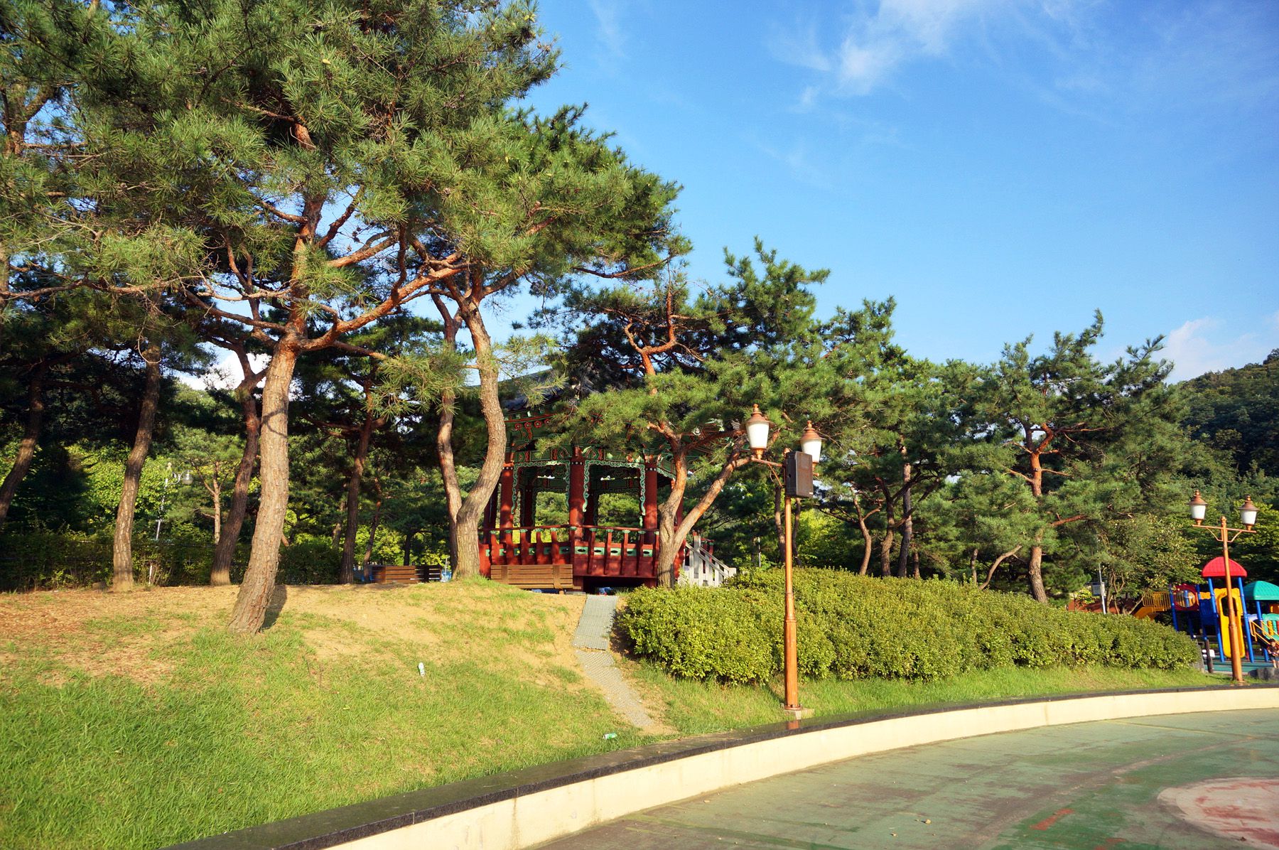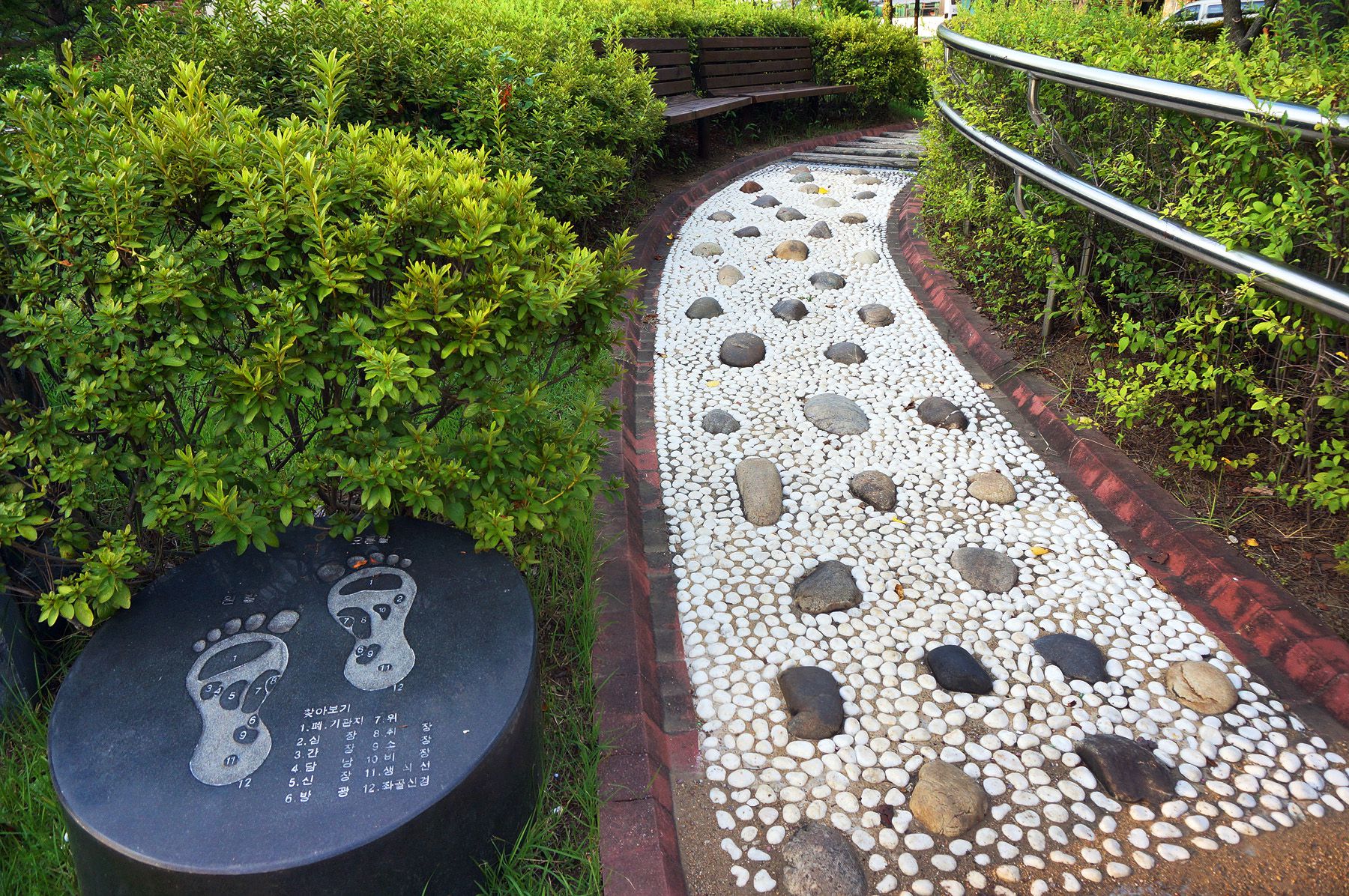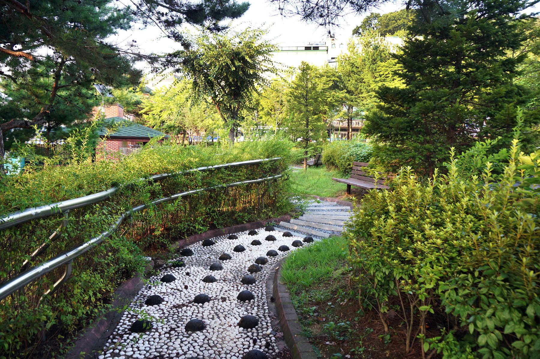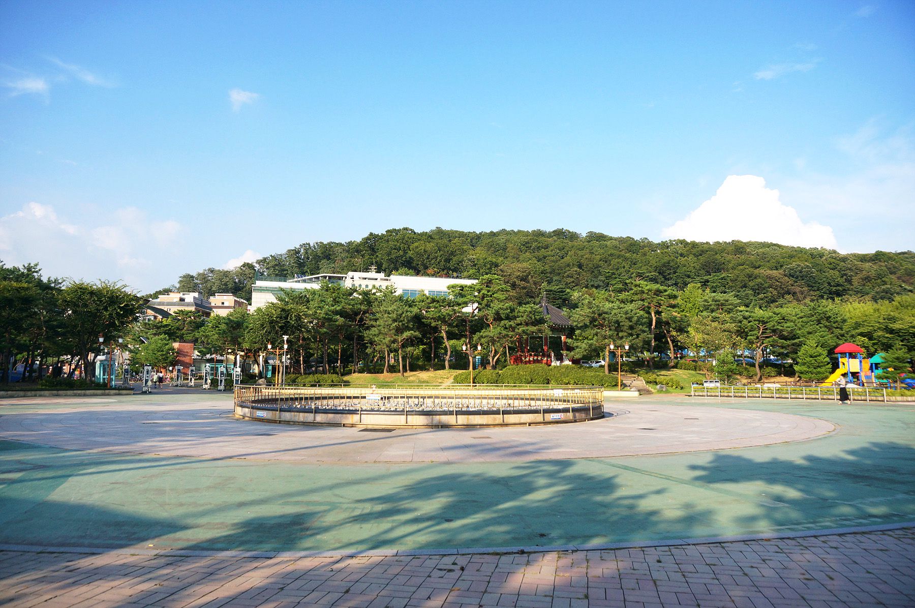 광장 분수, 전통정자, 발 지압장, 야외무대, 어린이 놀이터, 음수대, 정자, 자연학습장,