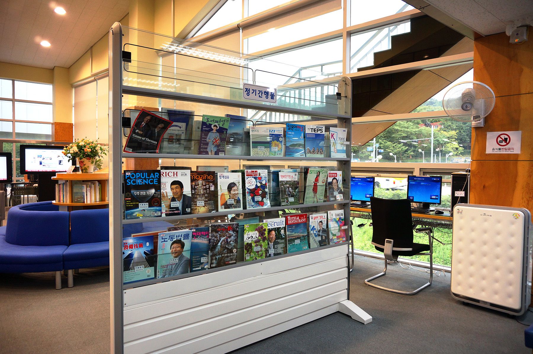 지하 1층에는 주차장, 문서고, 기계실, 전기실이 1층에는 안내데스크, 어린이자료실, 이야기꽃방,