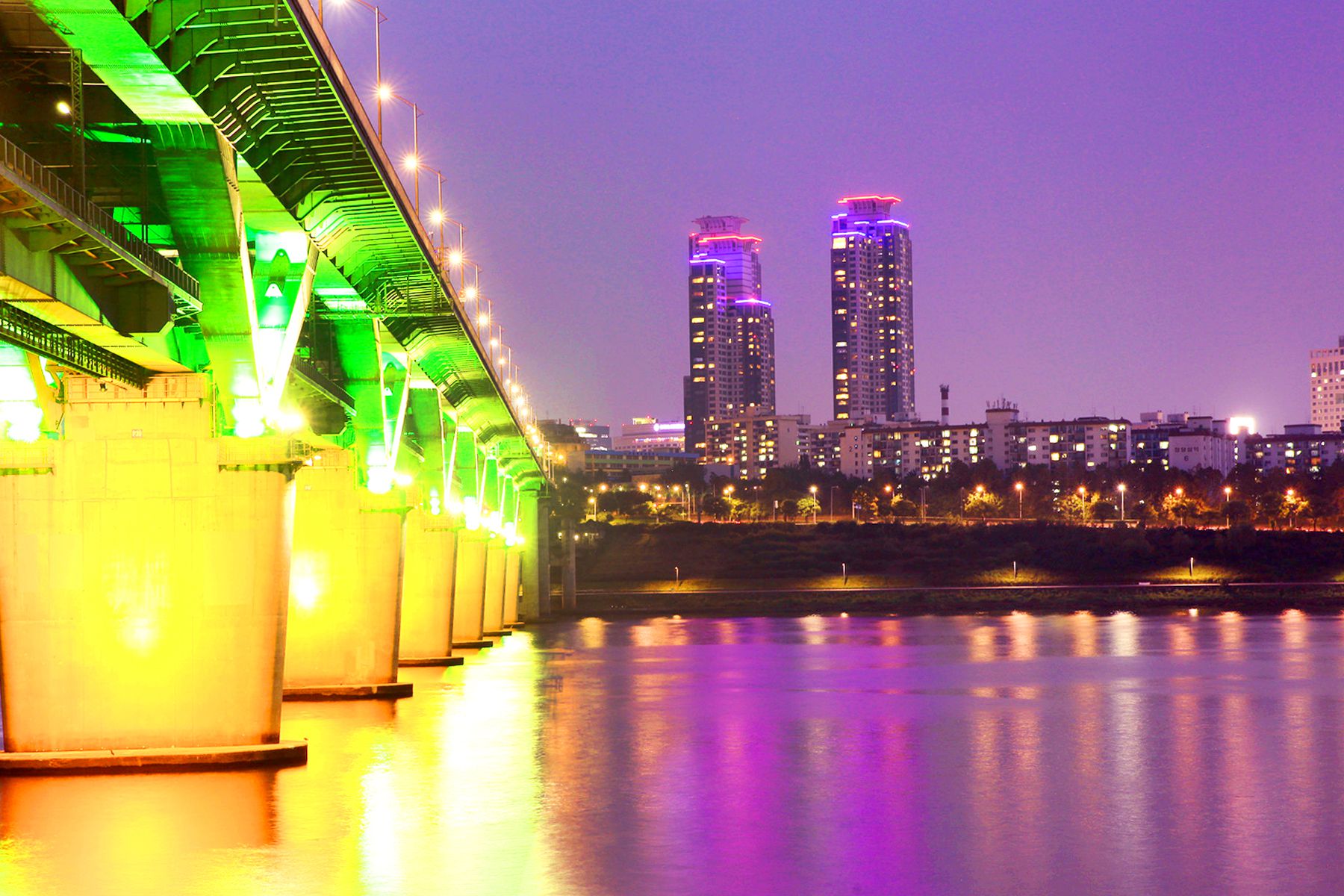 서울특별시 광진구 자양동과 강남구 청담동 사이를 연결하는 청담대교 야경은