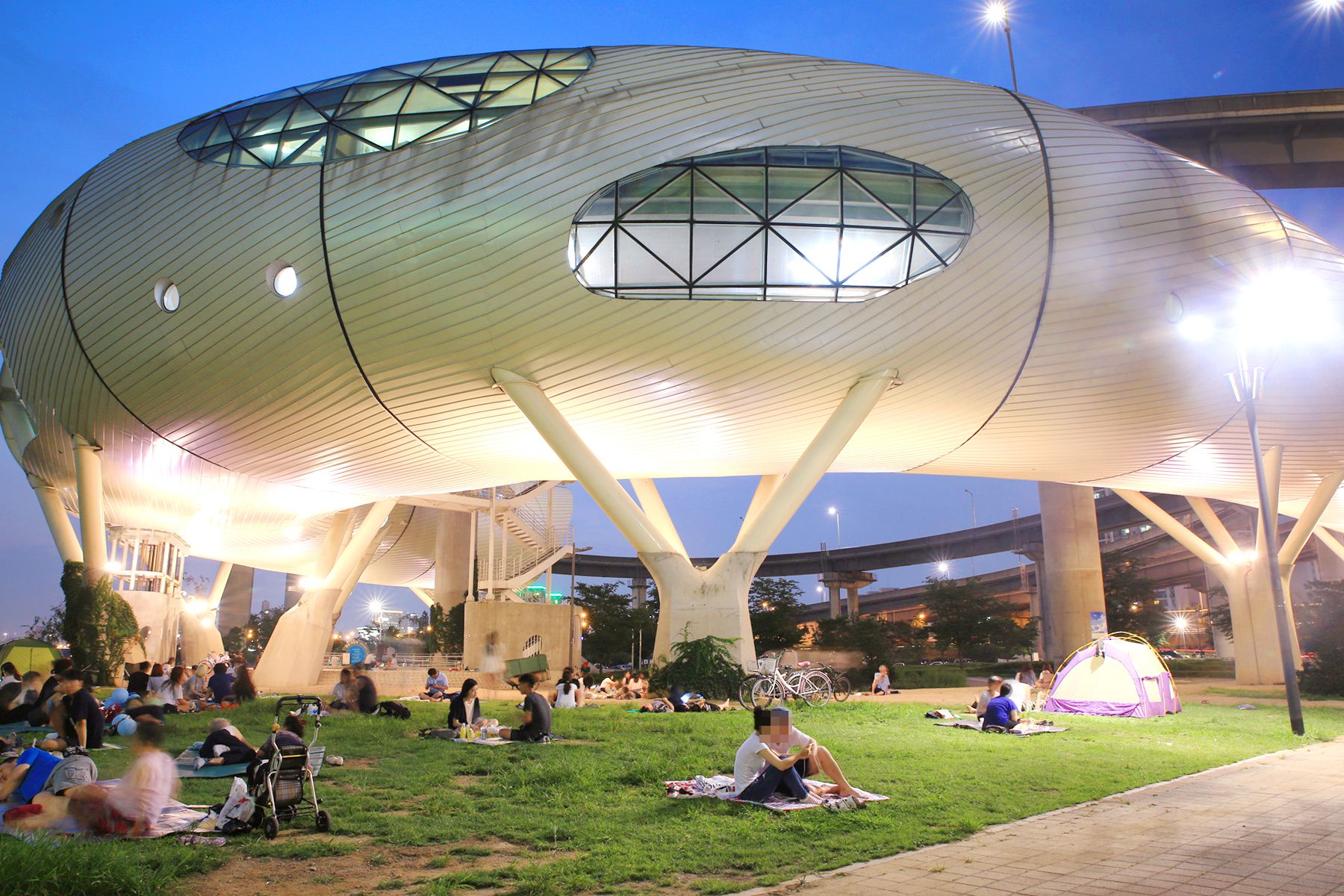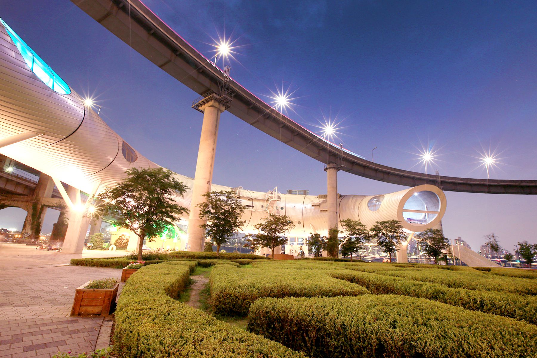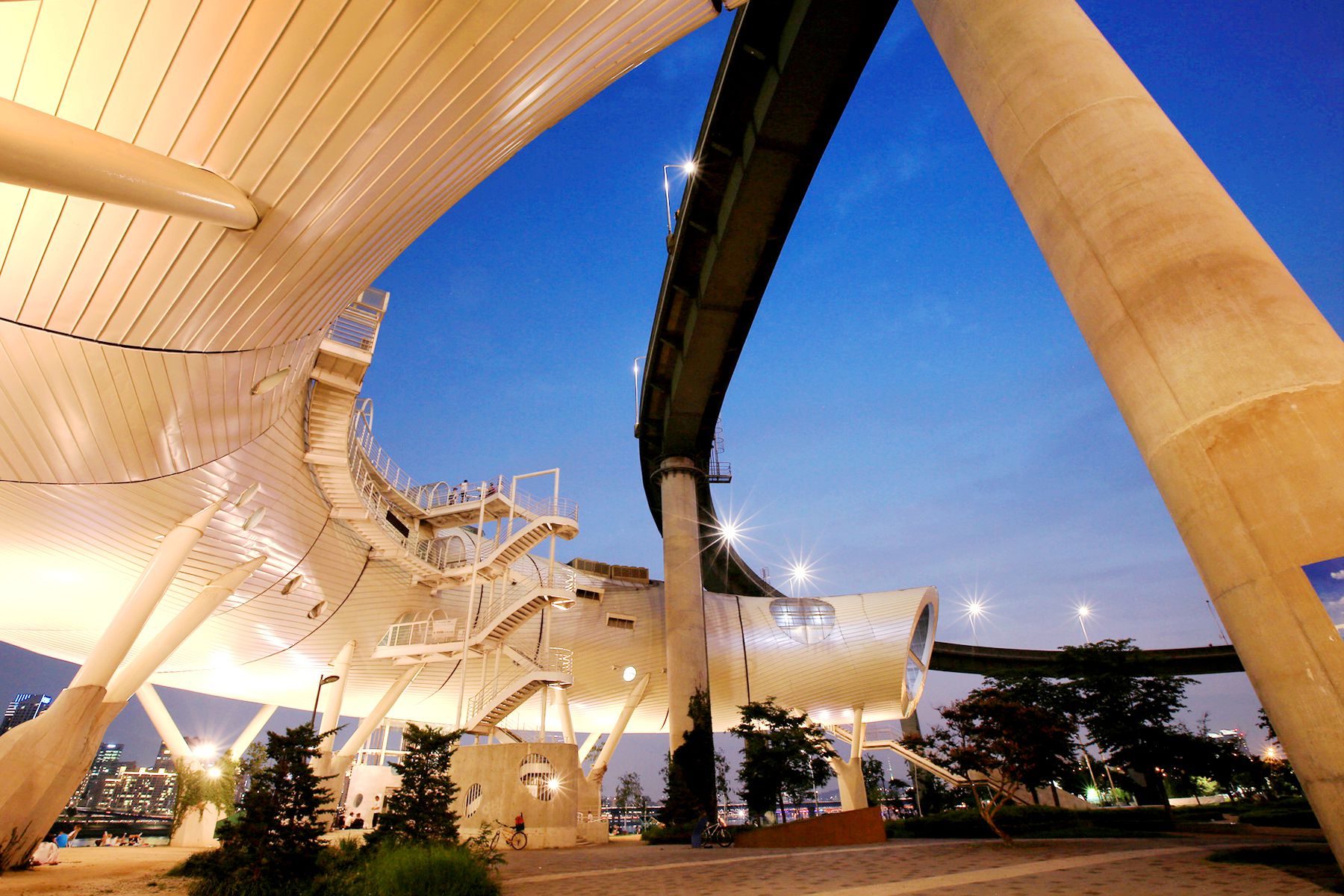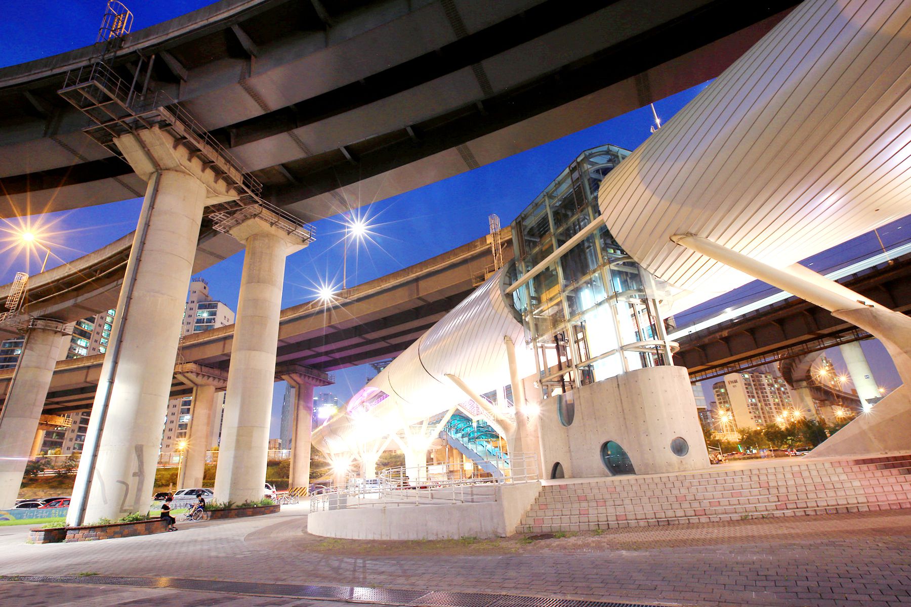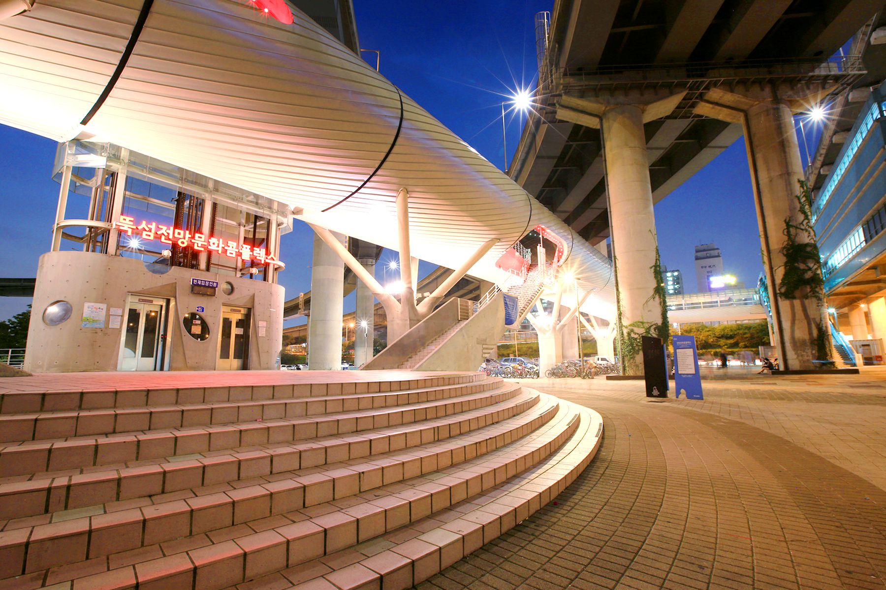 청담대교 옆에는 해저터널을 연상시키는 뚝섬 전망문화콤플렉스라는 문화 복합 시설이 조성되어 있는데요,
