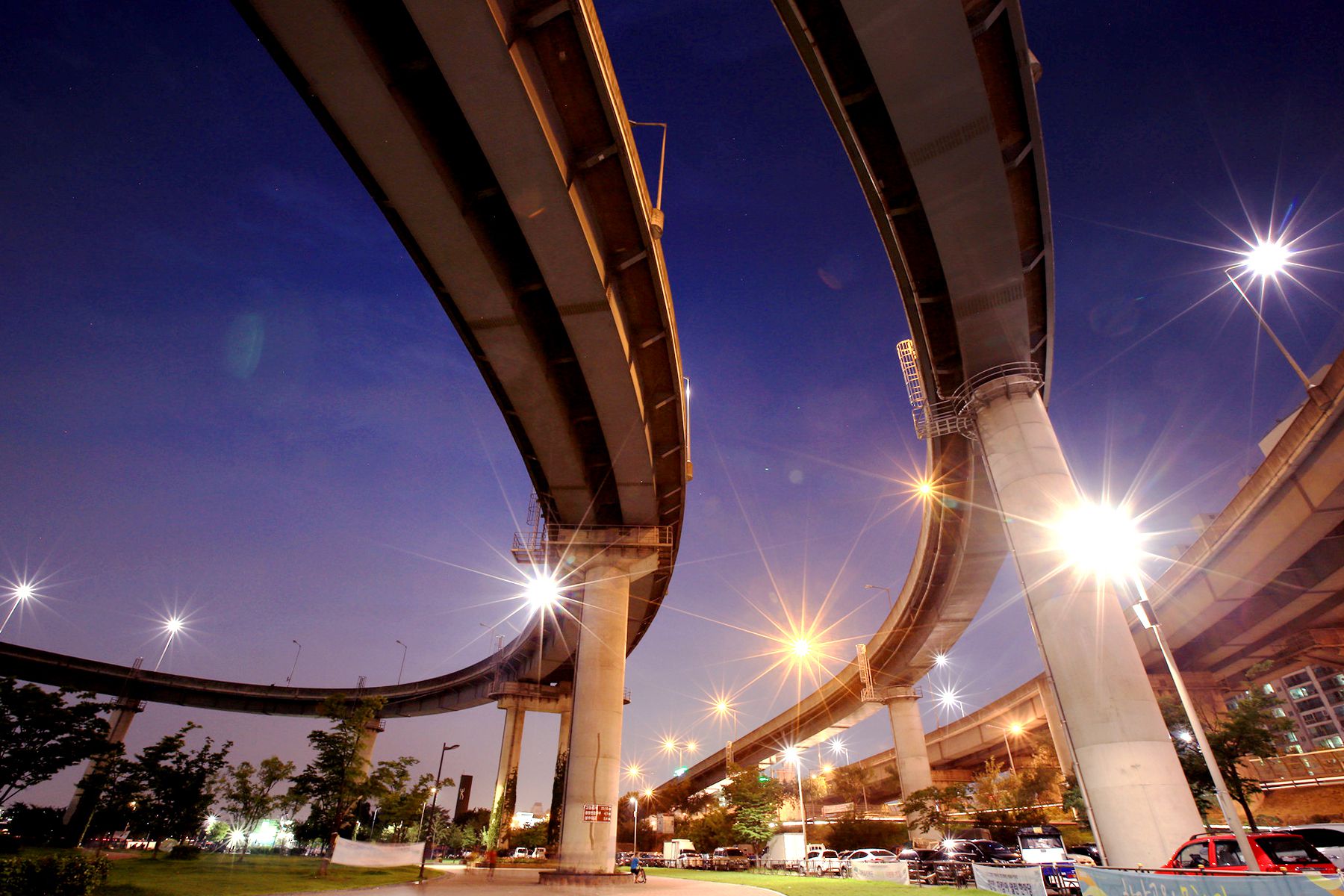 아름답고 화려한 조명과 가로등이 황홀한 밤의 경치를 자아내는 청담대교 야경!