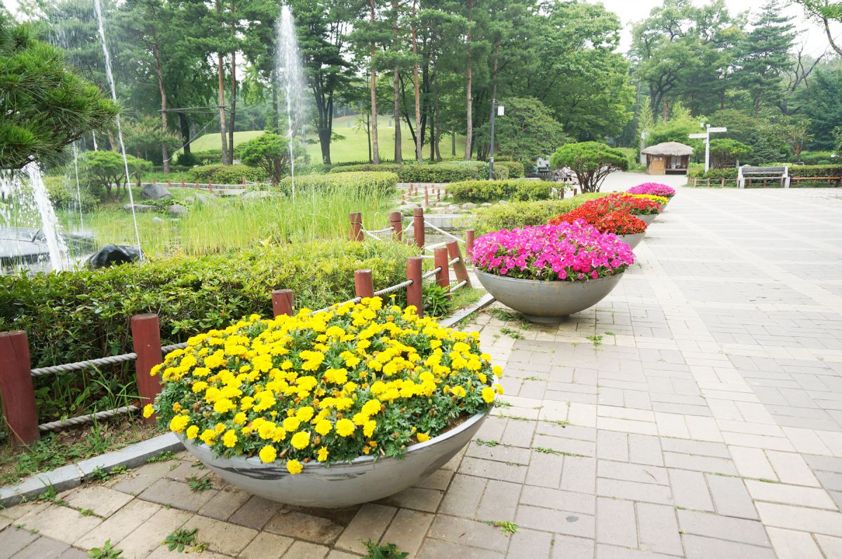 분수와 예쁘게 핀 꽃들이 조화를 이뤄 멋진 조경을 자랑하는 장소입니다.