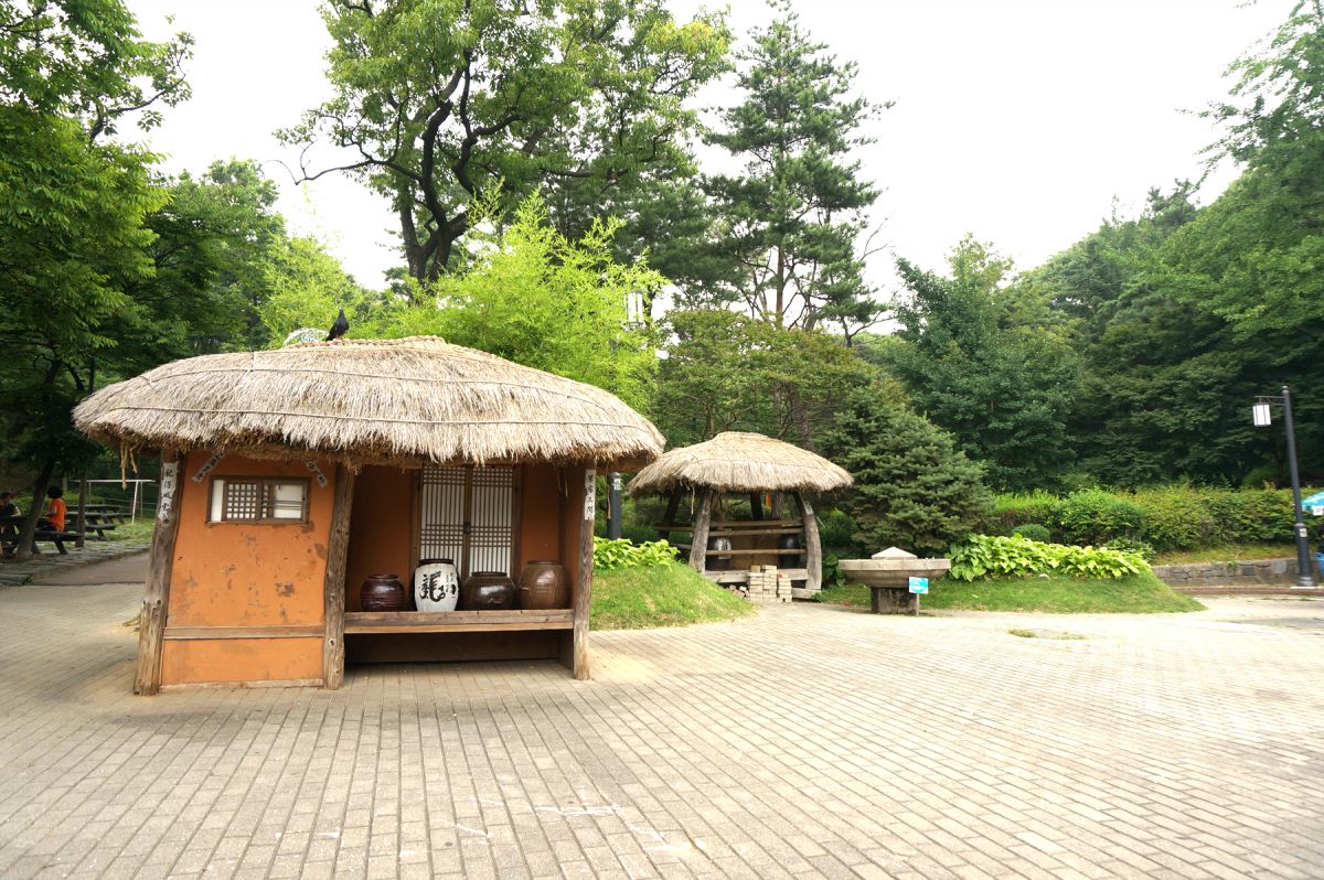 효창공원 내 매점과 그 옆에 자리한 초가의 모습이 정감 어립니다.