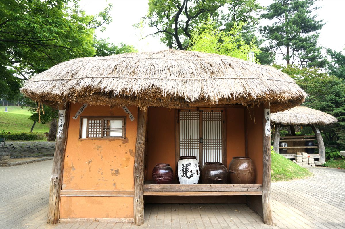 초가삼간, 입춘대길 등의 한자와 장독대가 시골의 정취를 자아내고 있습니다. ^^
