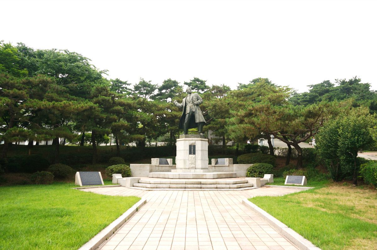 이 동상은 이봉창 의사 동상인데 수류탄을 던지는 모습을 하고 있습니다.