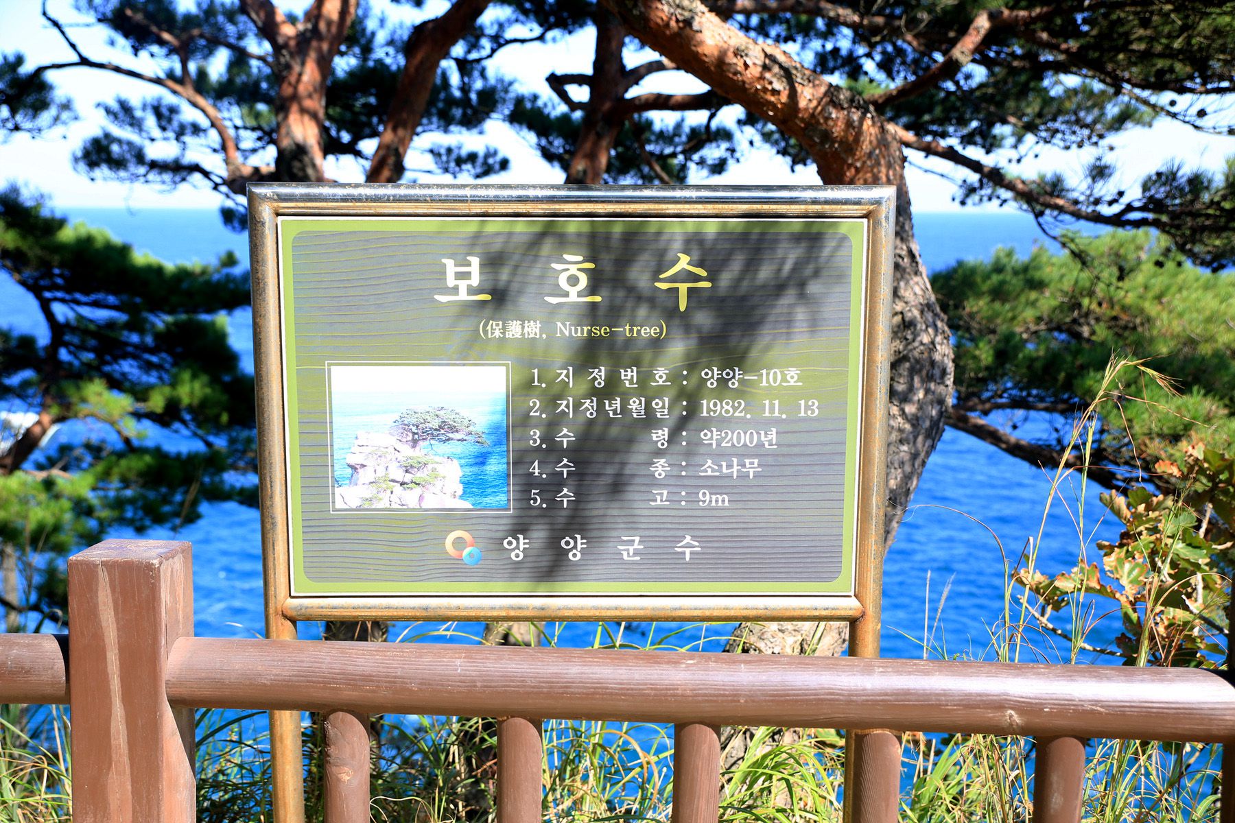 하조대에서 바로 보이는 절벽바위에 400여년 된 소나무가 보호수로 지정되어 관리되고 있습니다.