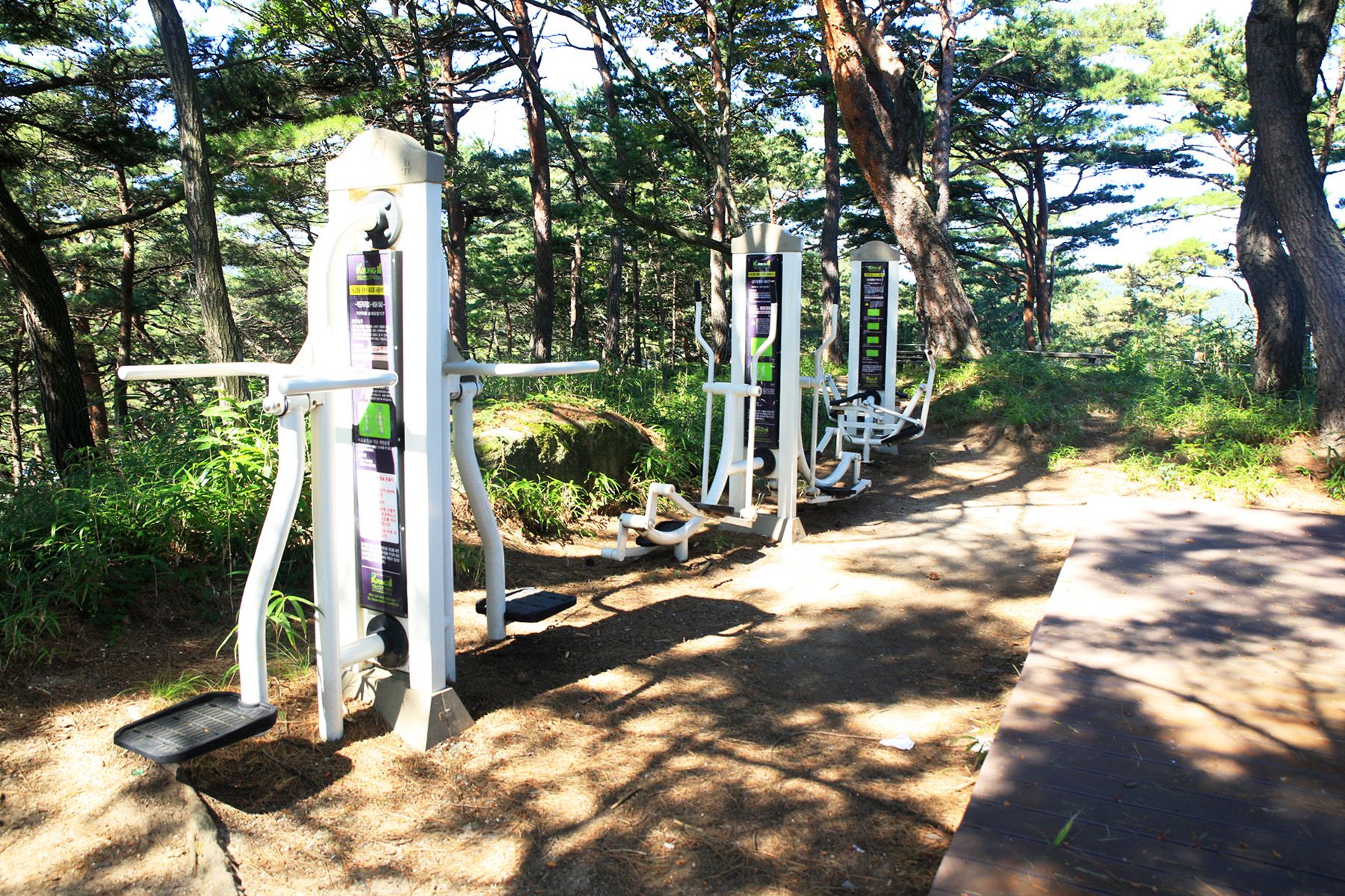 정상 인근에 운동기구를 설치하여 관광객들 뿐 아니라