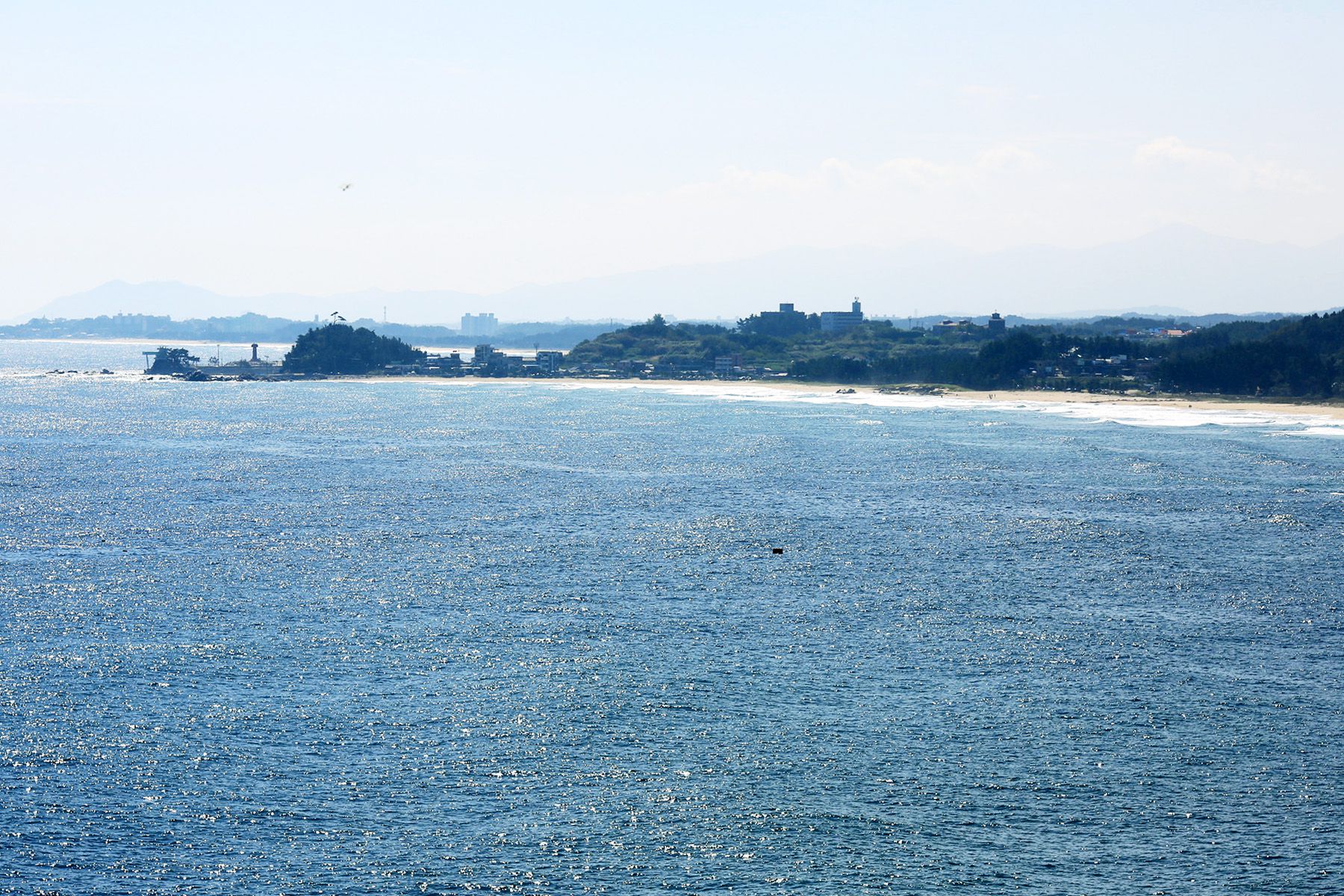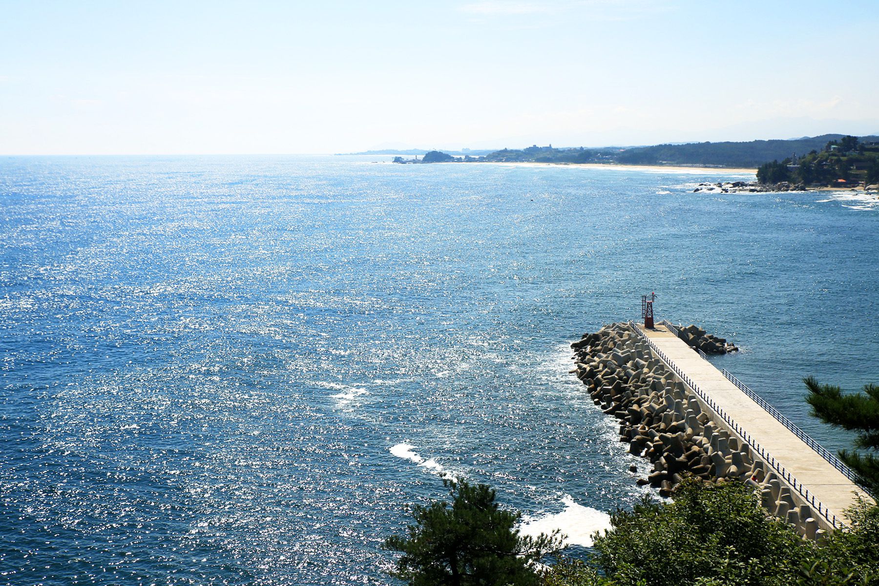 탁트인 동해바다 옆으로 2km 달하는 죽도 해변이 한 눈에 들어옵니다.