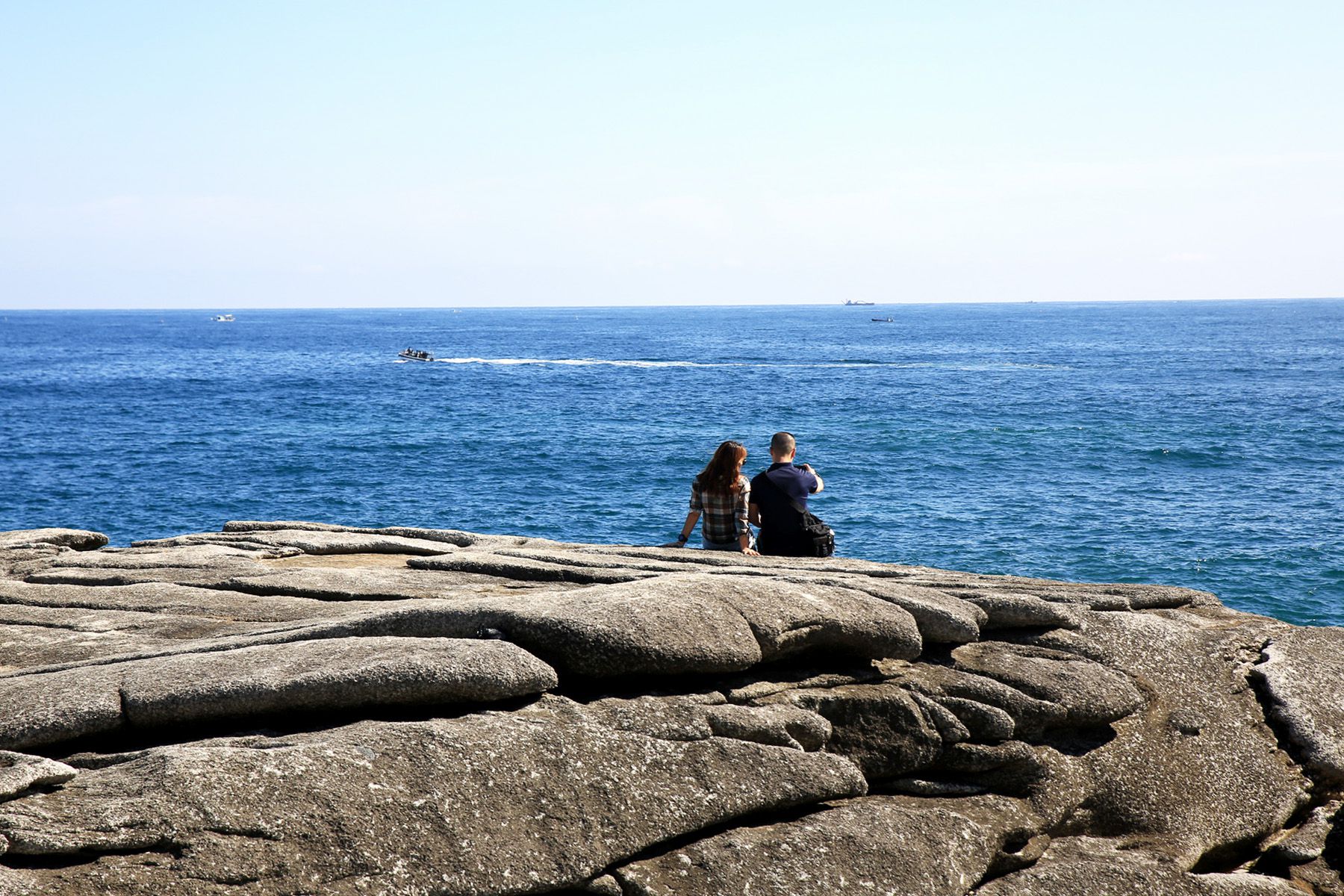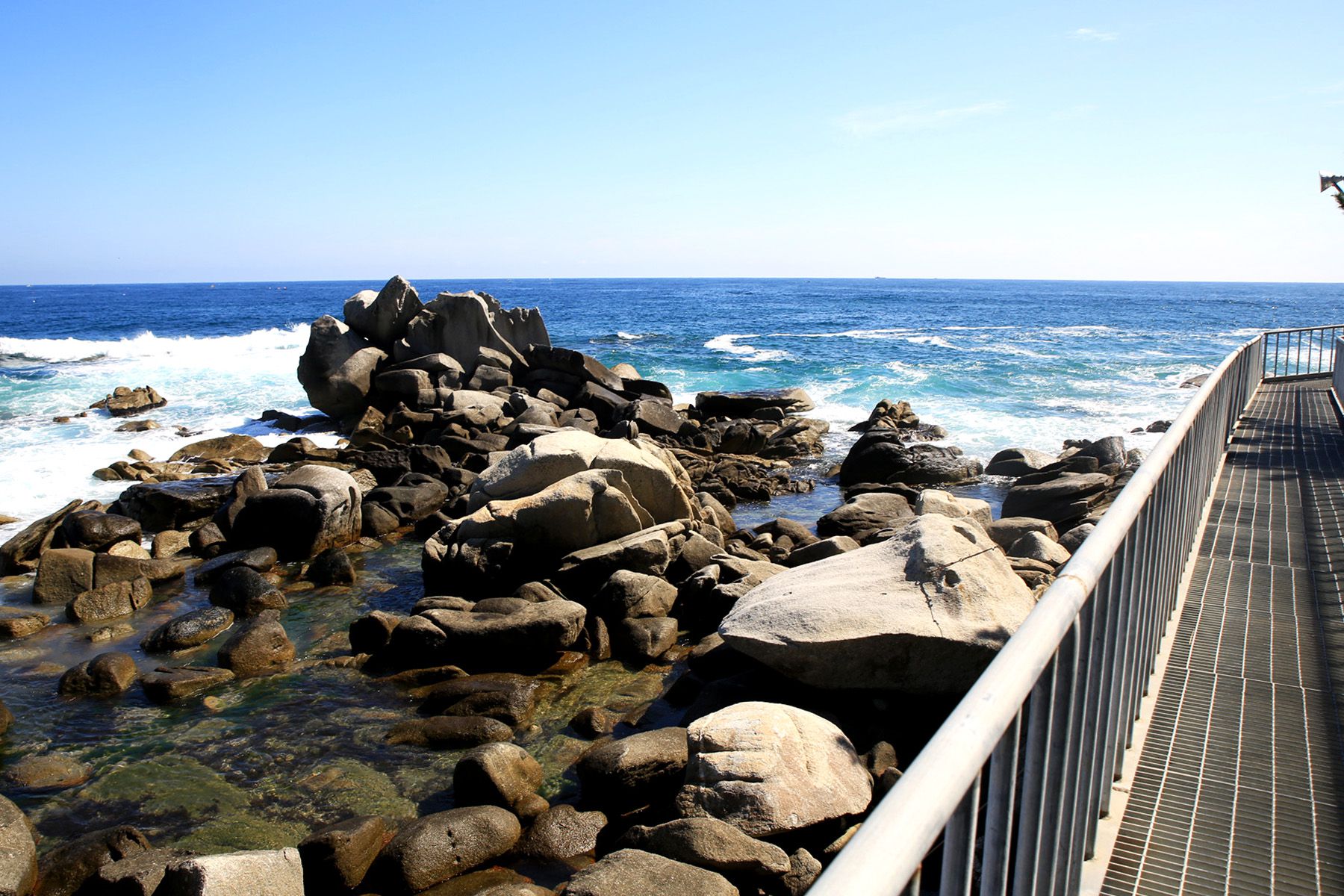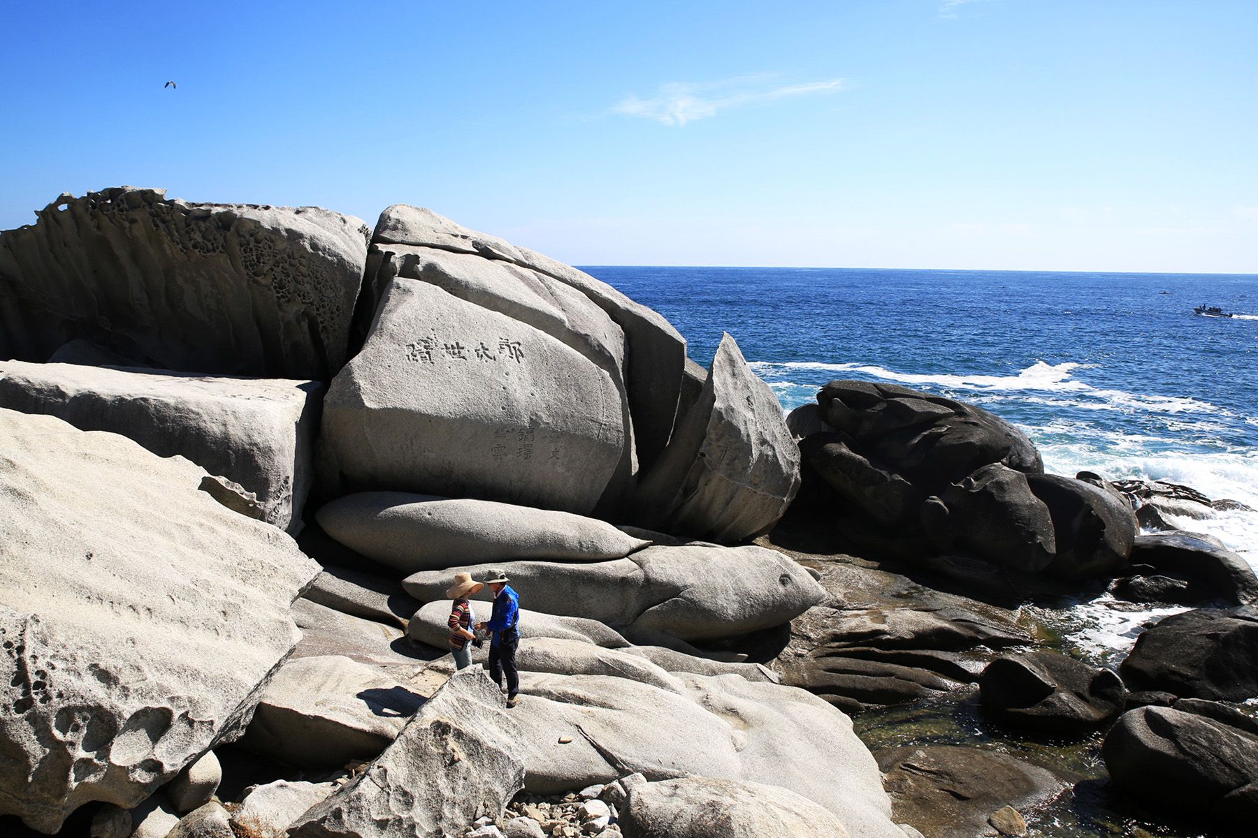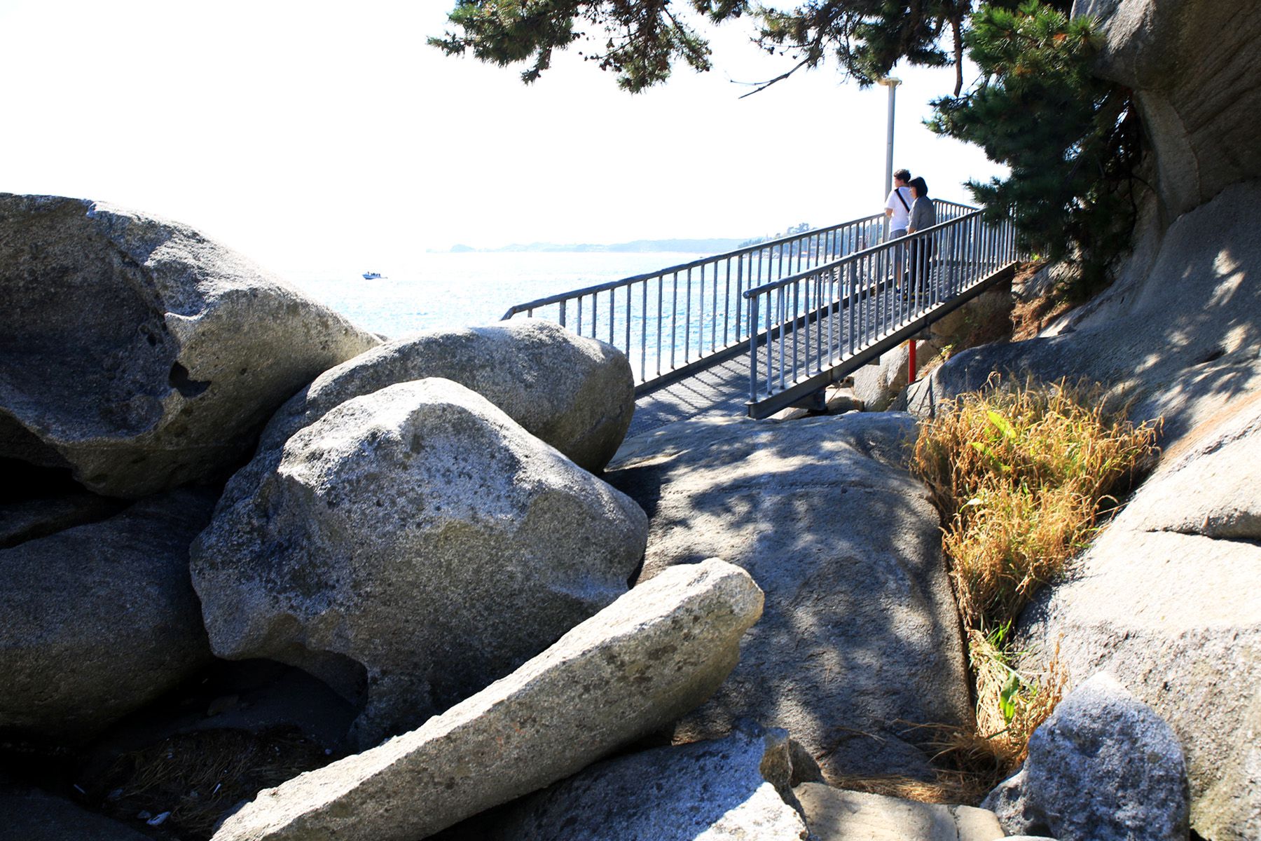 파도의 풍화과정을 거친 둥글둥글 표면의 거대한 바위는 자연이 만들어준