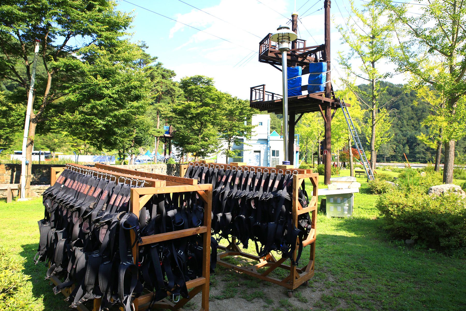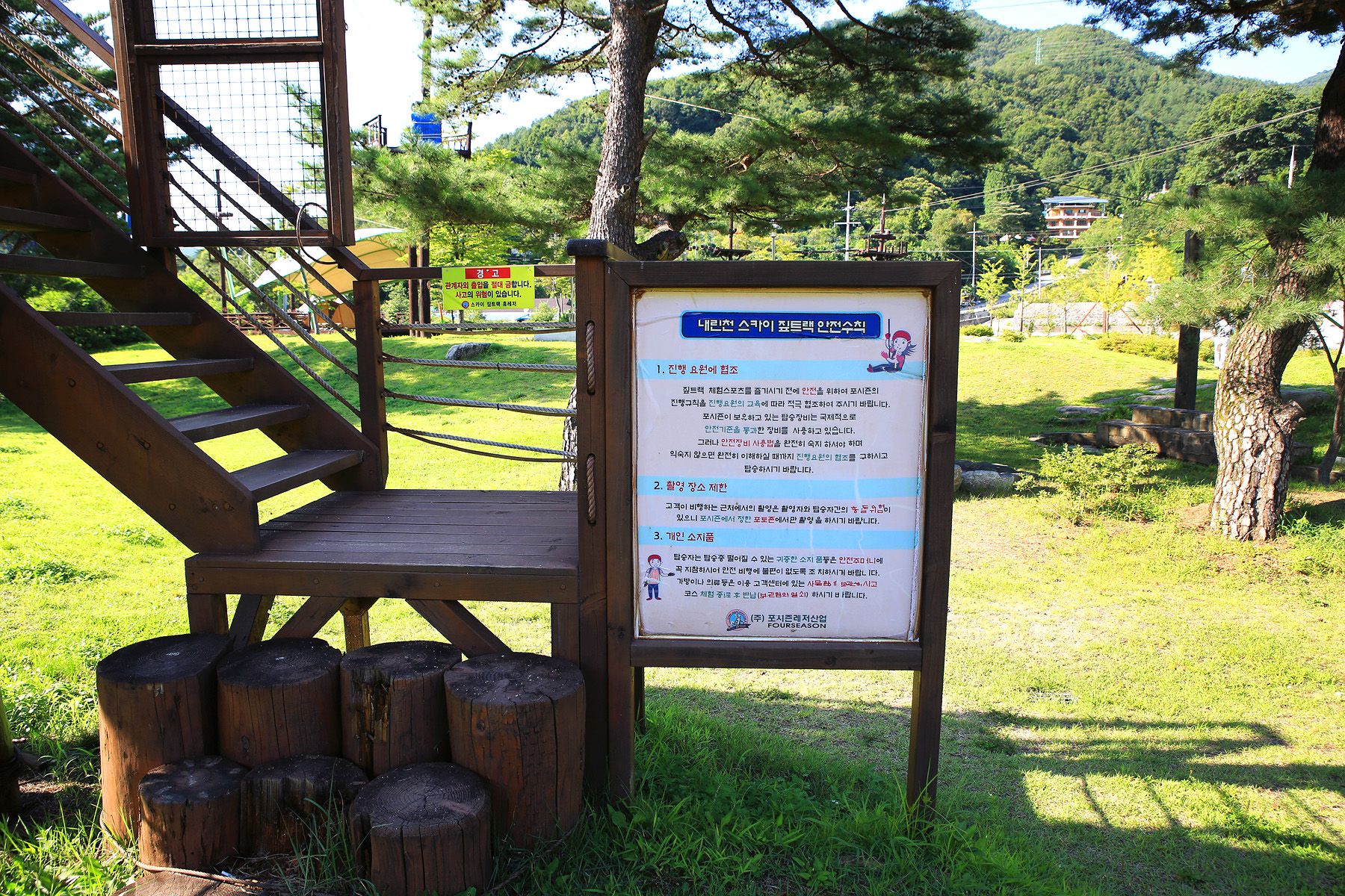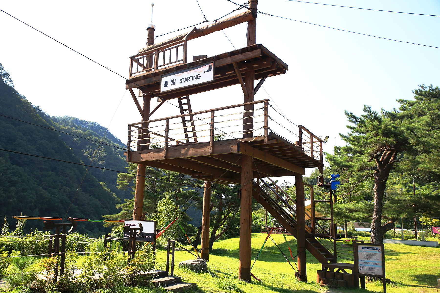 허공을 가르는 짜릿함을 만끽할 수 잇는 스카이 짚트랙을 만날 수 있는 인제의 수변공원은