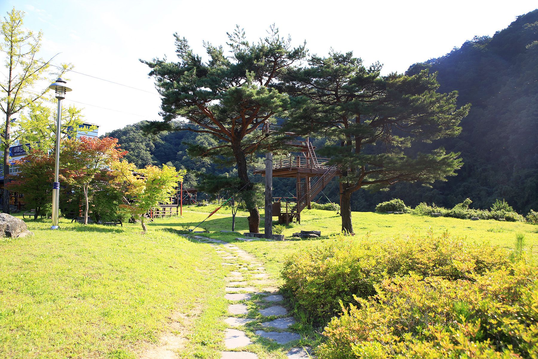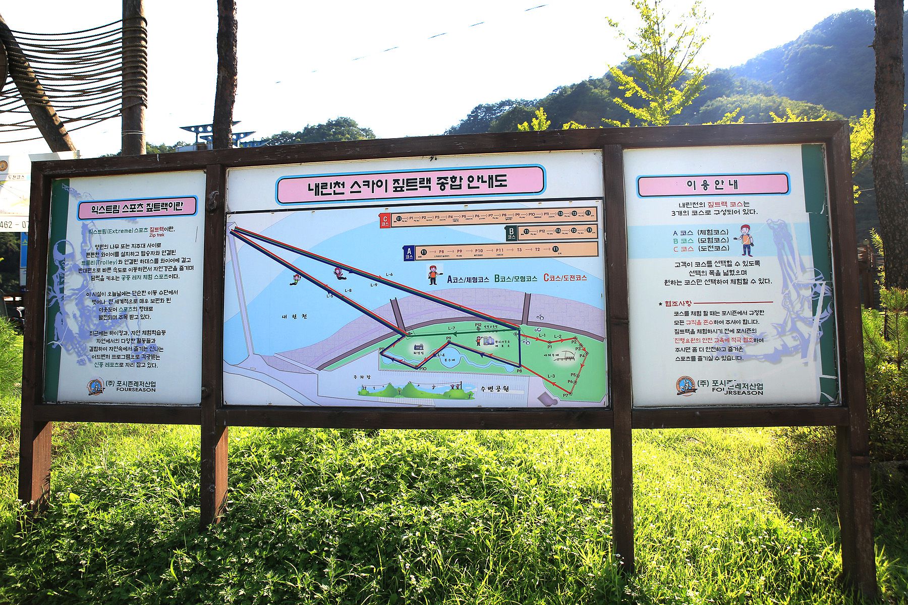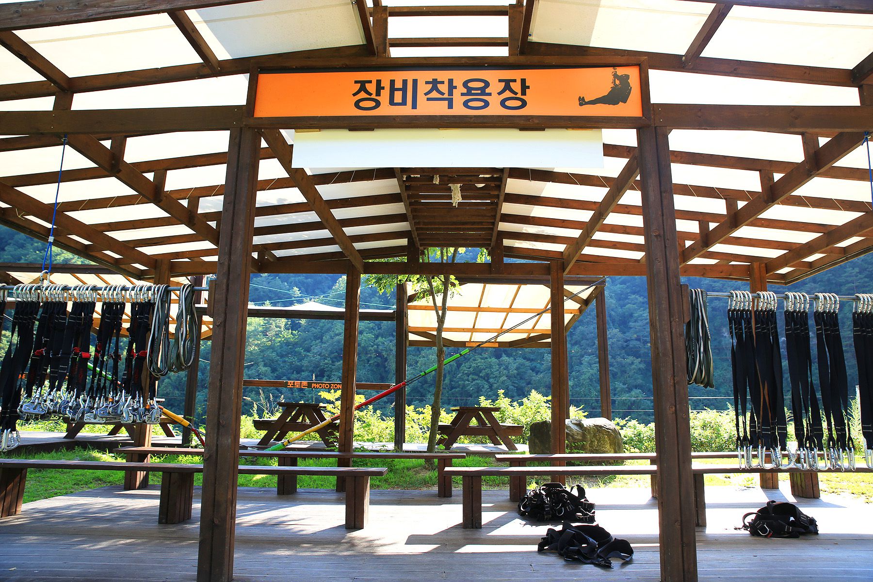 허공을 가르는 짜릿함을 만끽할 수 잇는 스카이 짚트랙을 만날 수 있는 인제의 수변공원은