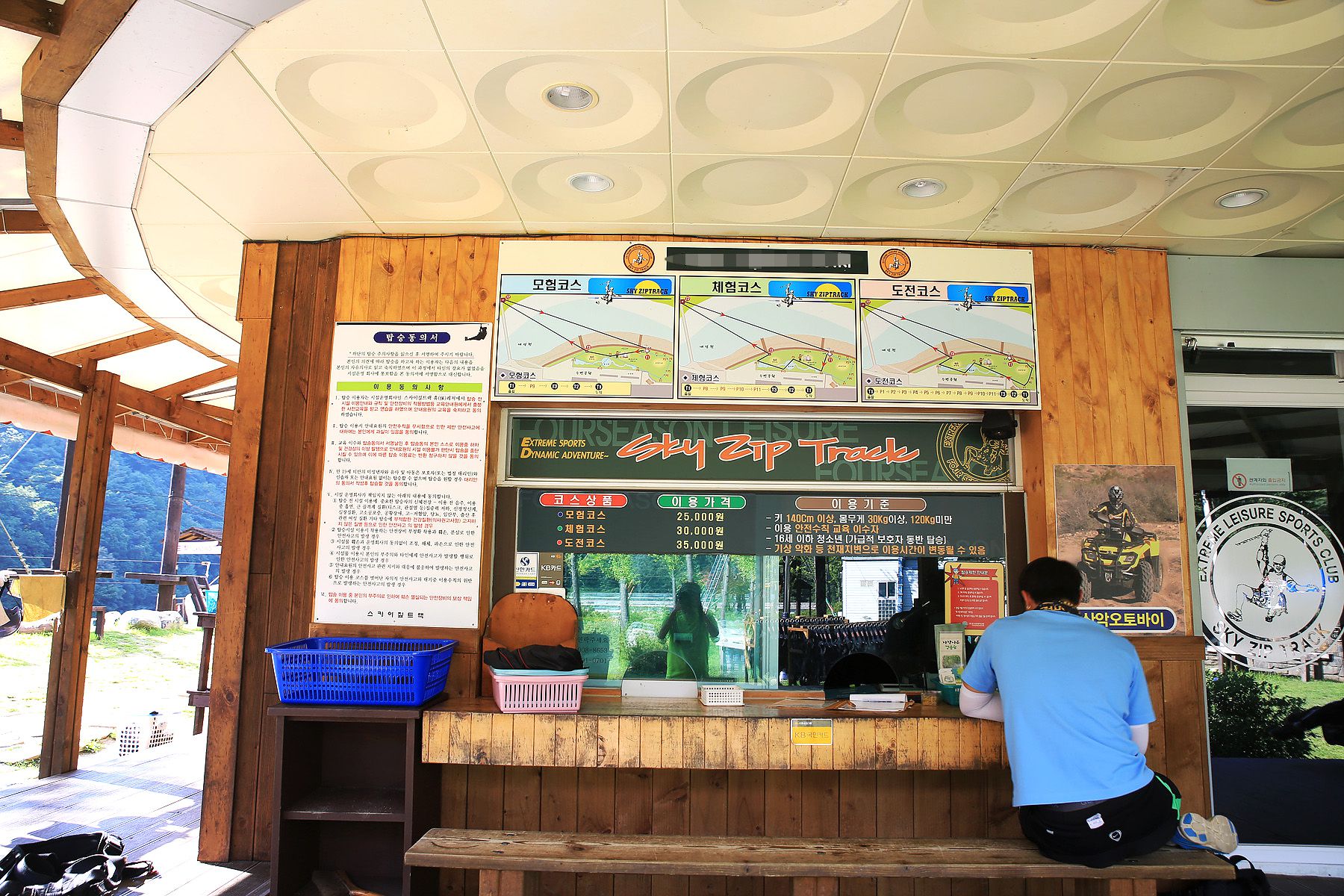 모험 코스, 체험코스, 도전 코스별로 위치가 달라지는 스카이 짚드랙의 이용을 위해서는