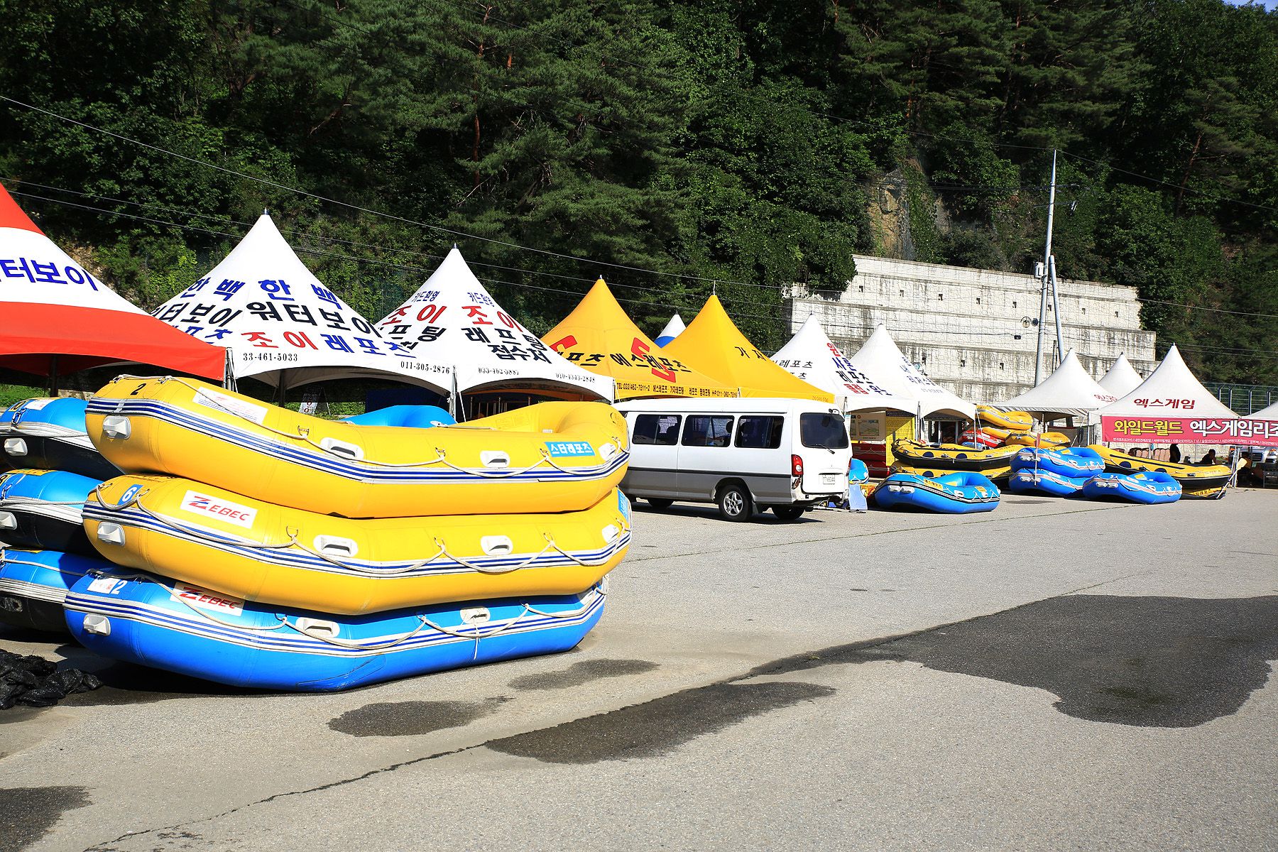 내린천의 특성상 여러 래프팅 업체들이 마중 나와 있습니다.